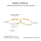 Celebrate your romantic journey with a luminous emblem of eternity - this stunning Moissanite Bridal Ring Set. Crafted to ensure every moment is memorable, this 2 Piece Ring Set harmoniously combines timeless sophistication with meticulous artistry. The highlight of the set is a Solitaire Engagement Ring, featuring a mesmerizing 8 MM round cut moissanite in a peg head setting, allowing the gem to elegantly rise from the finger and capture light from every perspective. Perfectly paired with the engagement ring is a Half Eternity Wedding Band, embellished with glistening round moissanite stones that enhance the brilliance of the central gem while contributing their own gentle shimmer. Together, the rings form a cohesive Solitaire Wedding Ring Set that is equally breathtaking when worn together or separately. Meticulously crafted, this Moissanite Engagement and Wedding Ring Set unites resilience, beauty, and eco-friendly elegance. Presented in an opulent signature jewelry box, it is ready to be gifted, cherished, and admired.