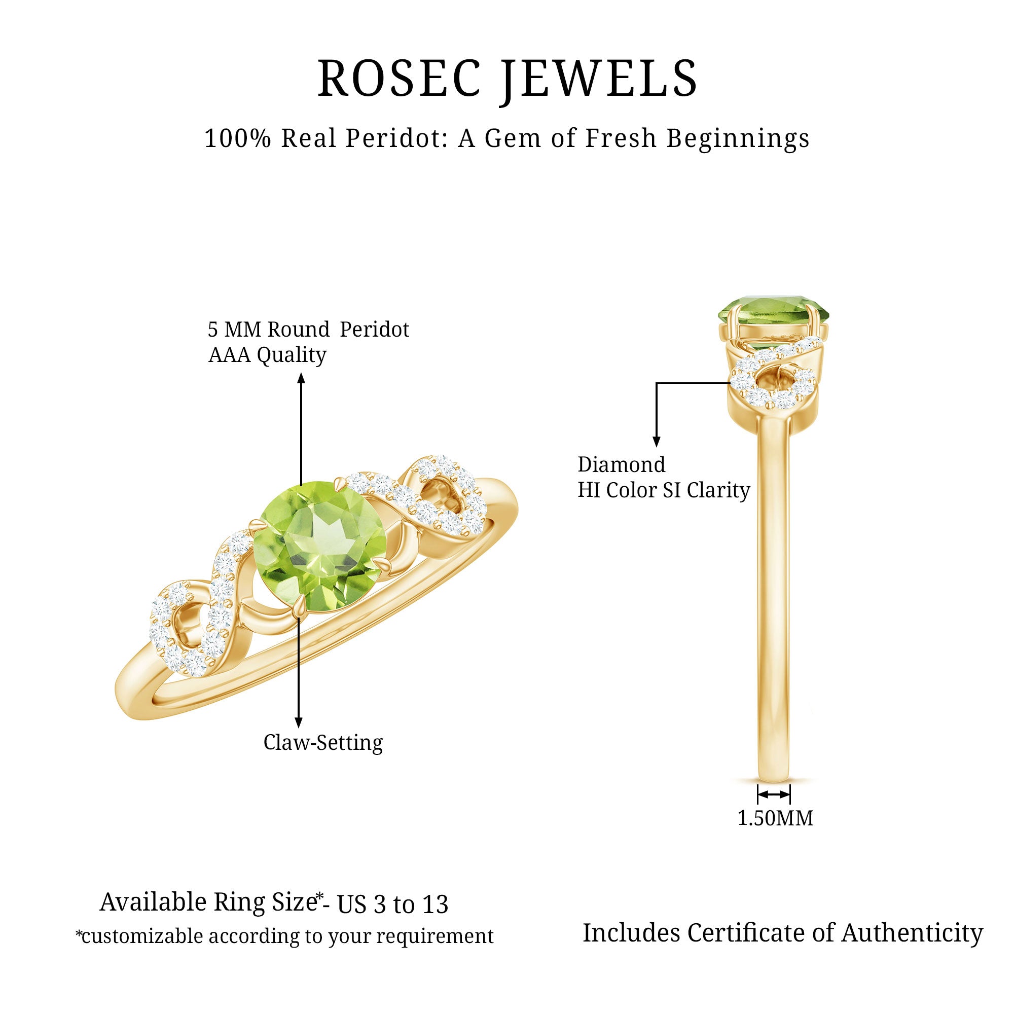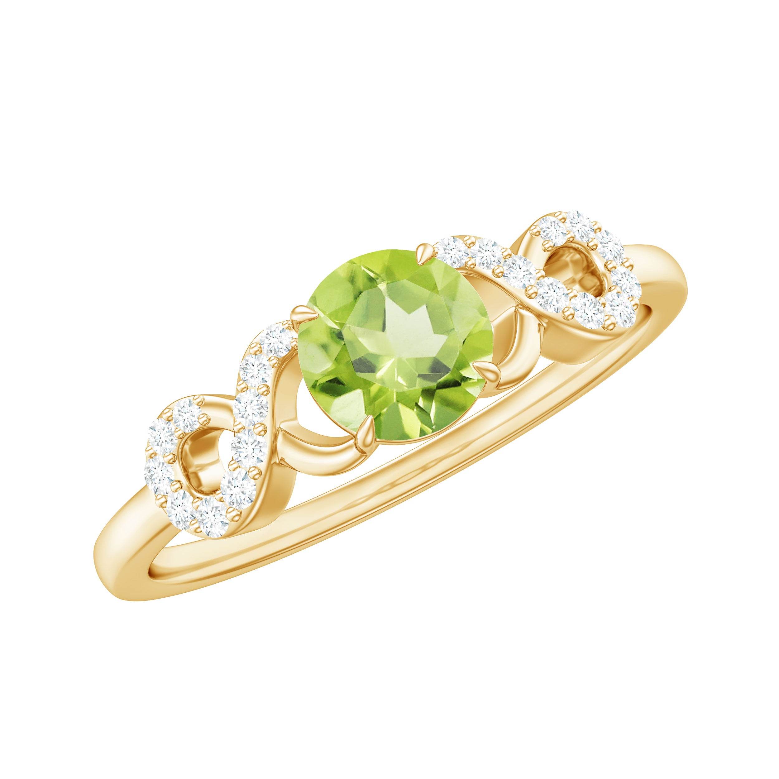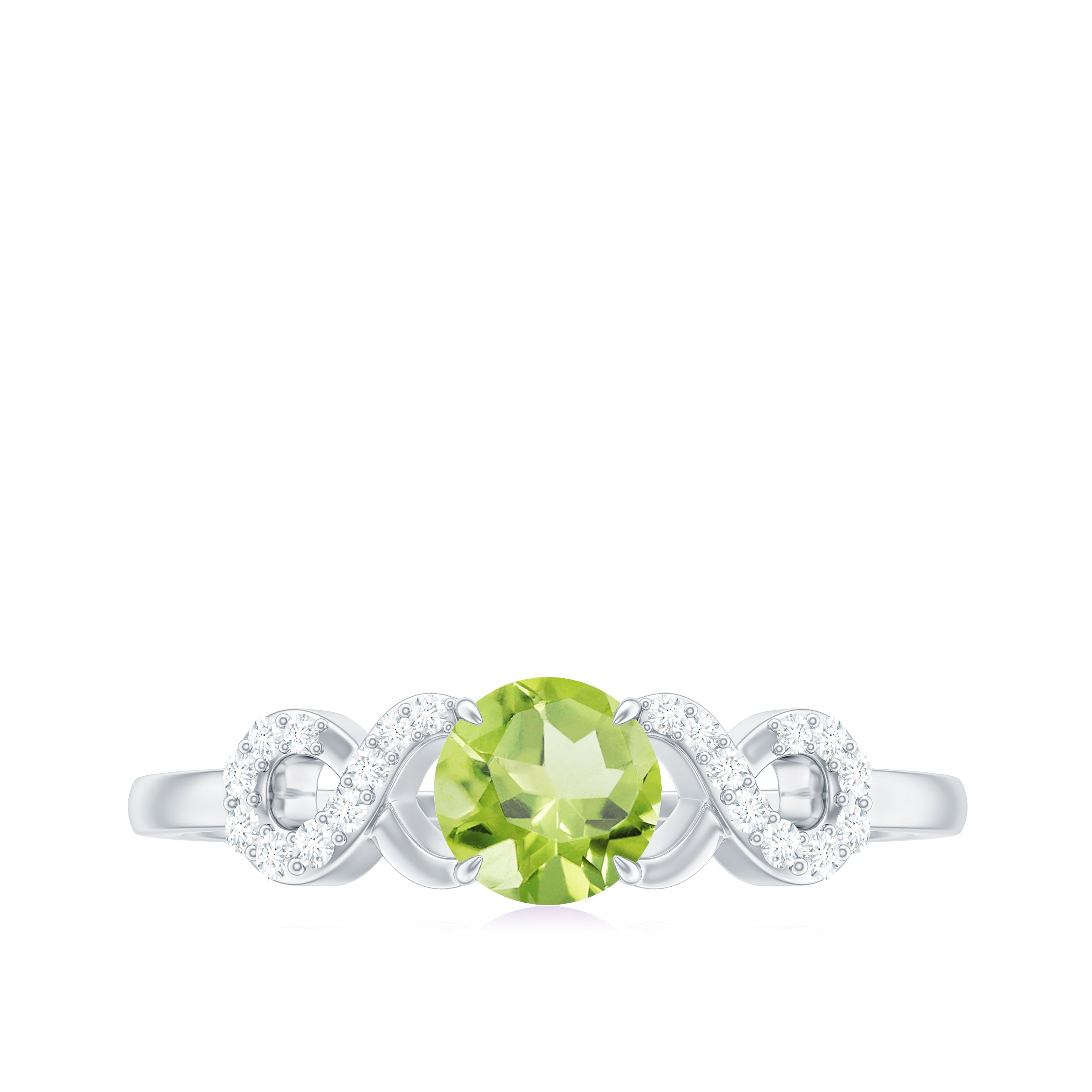 Round Shape Peridot and Diamond Infinity Engagement Ring
