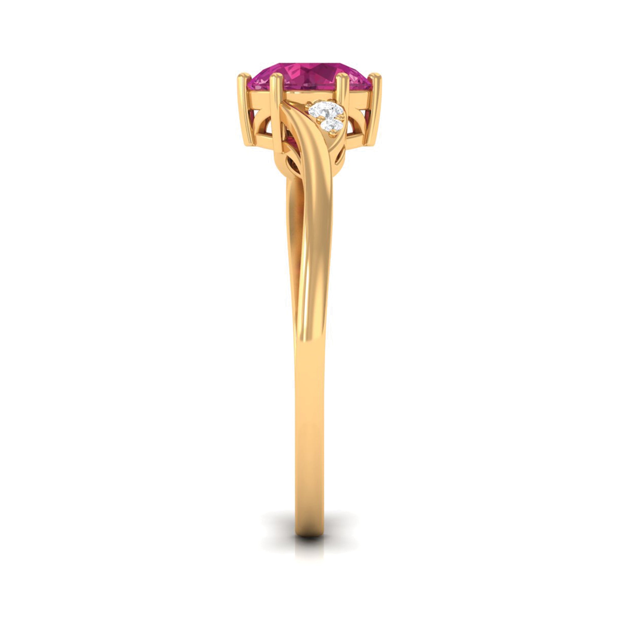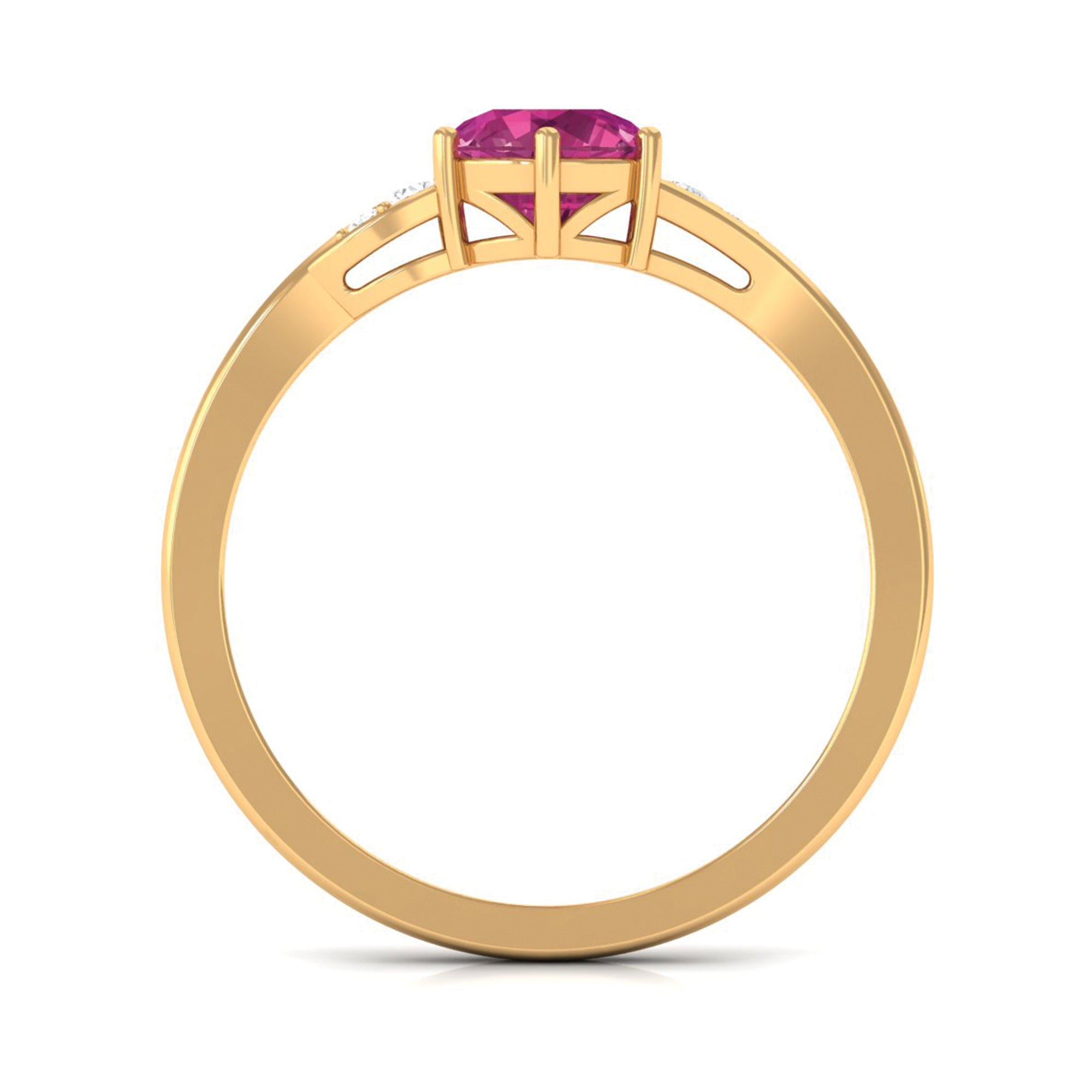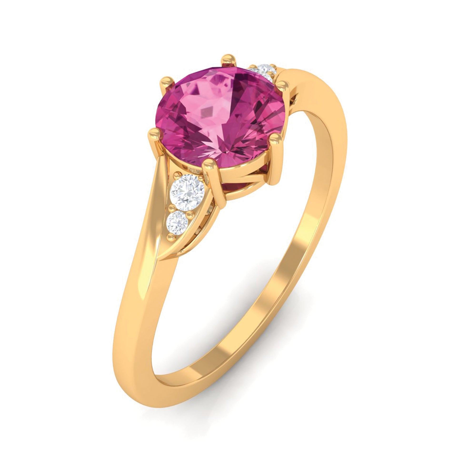 Round Shape Pink Tourmaline Solitaire Ring with Diamond