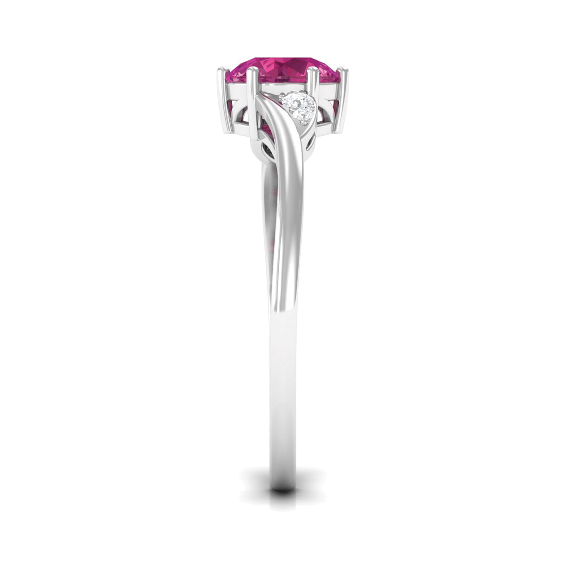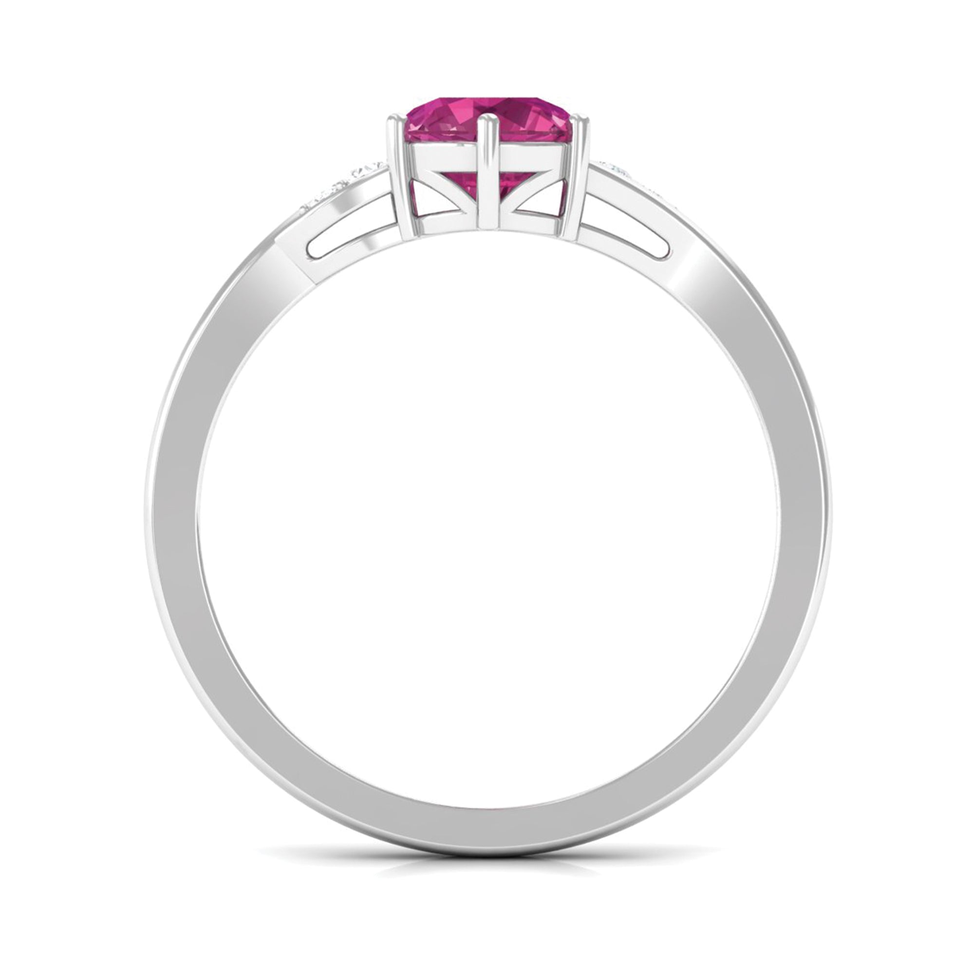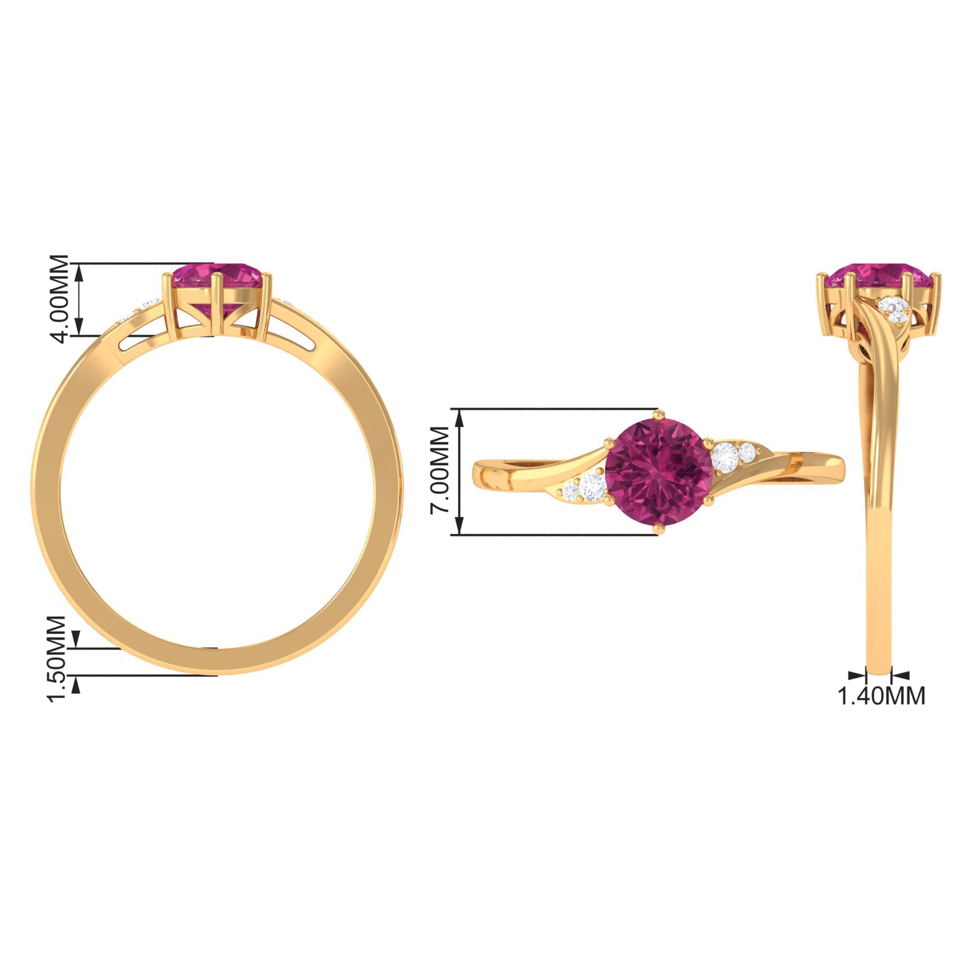 Round Shape Pink Tourmaline Solitaire Ring with Diamond