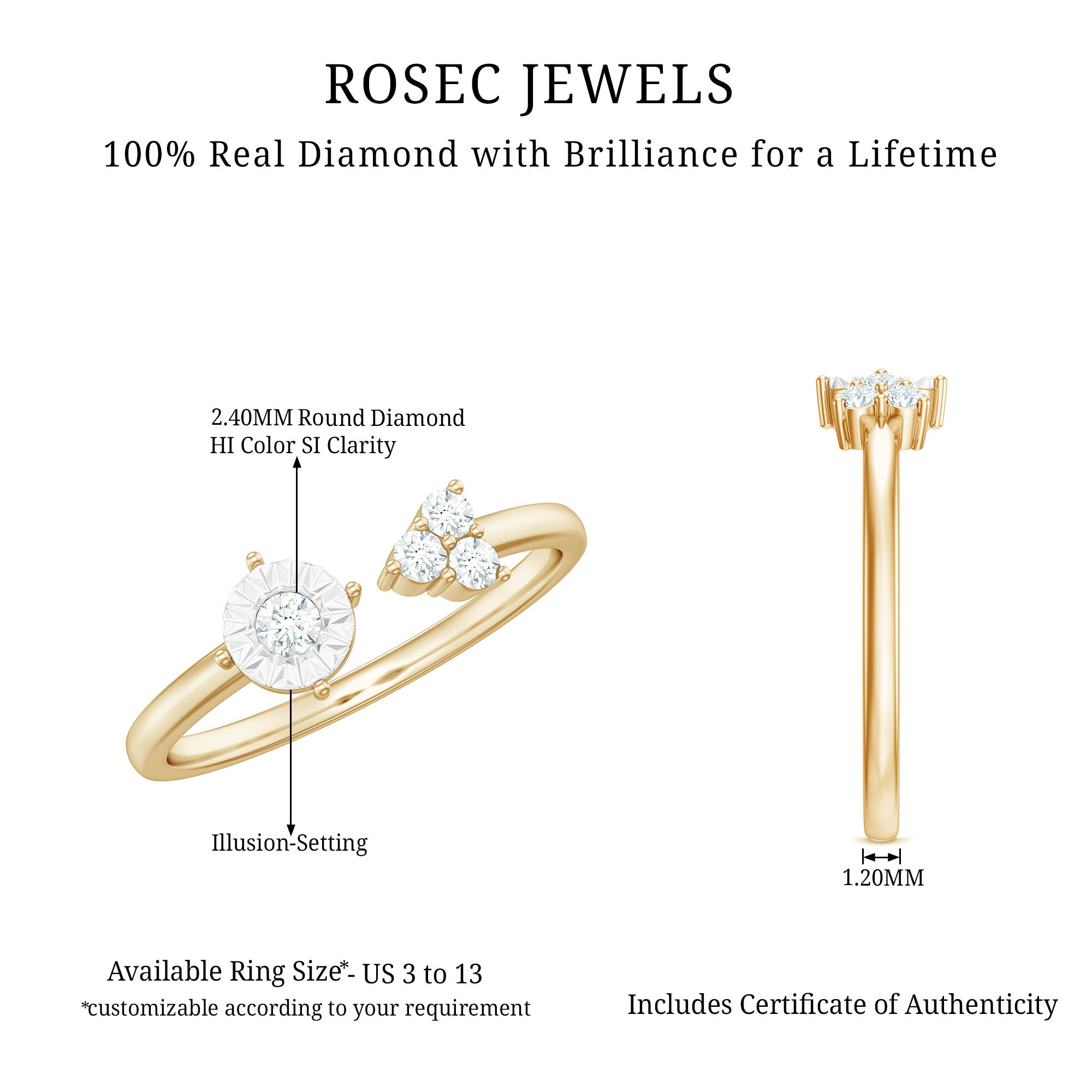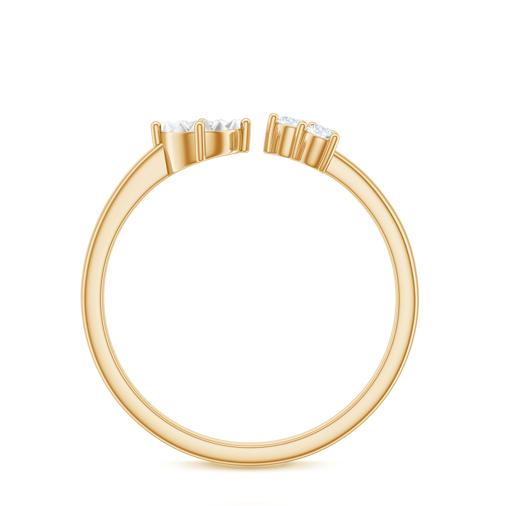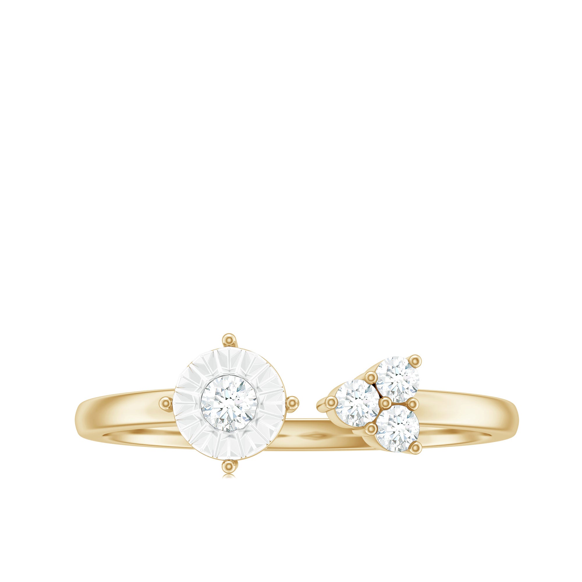 Round Shape Real Diamond Classic Cuff Ring in Gold