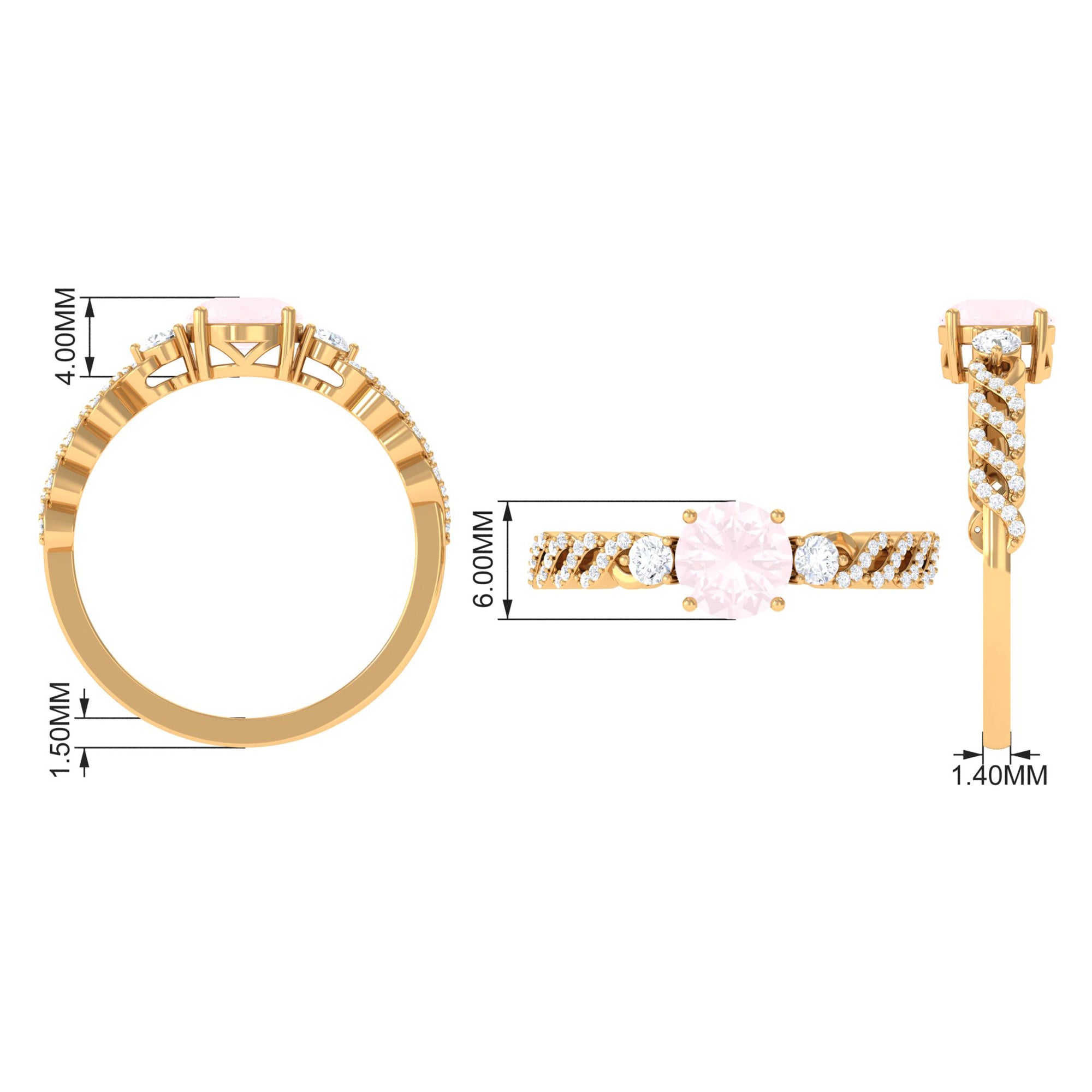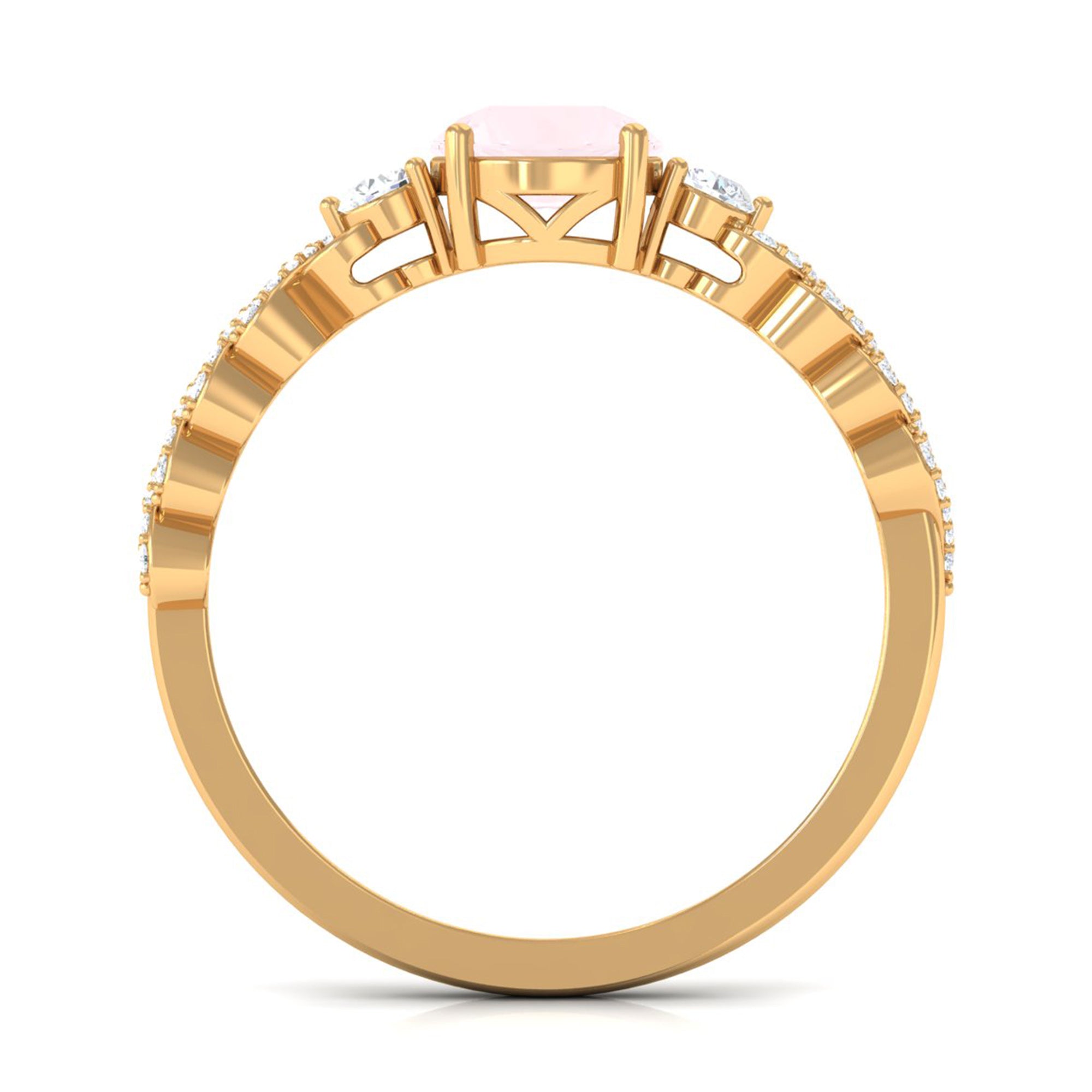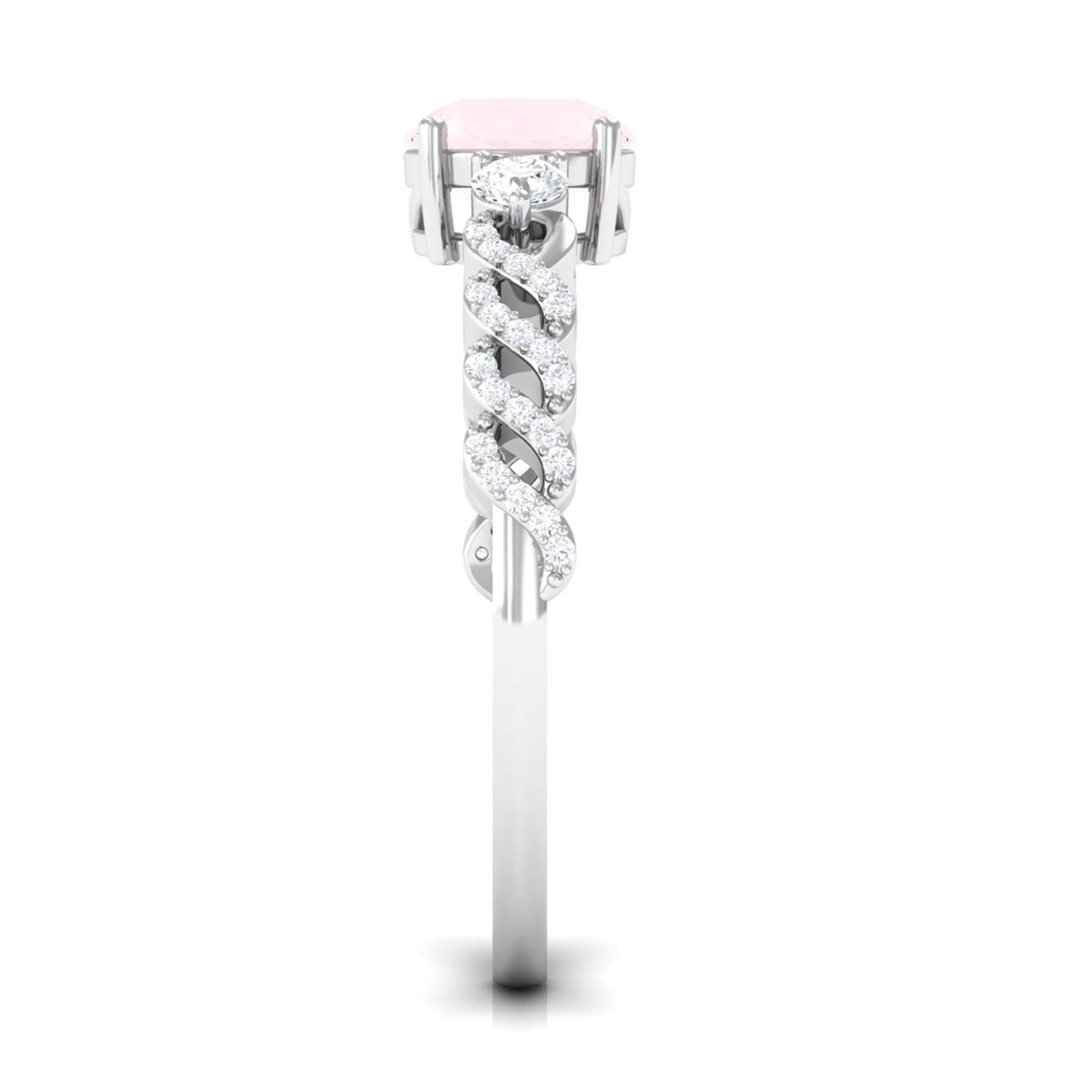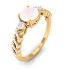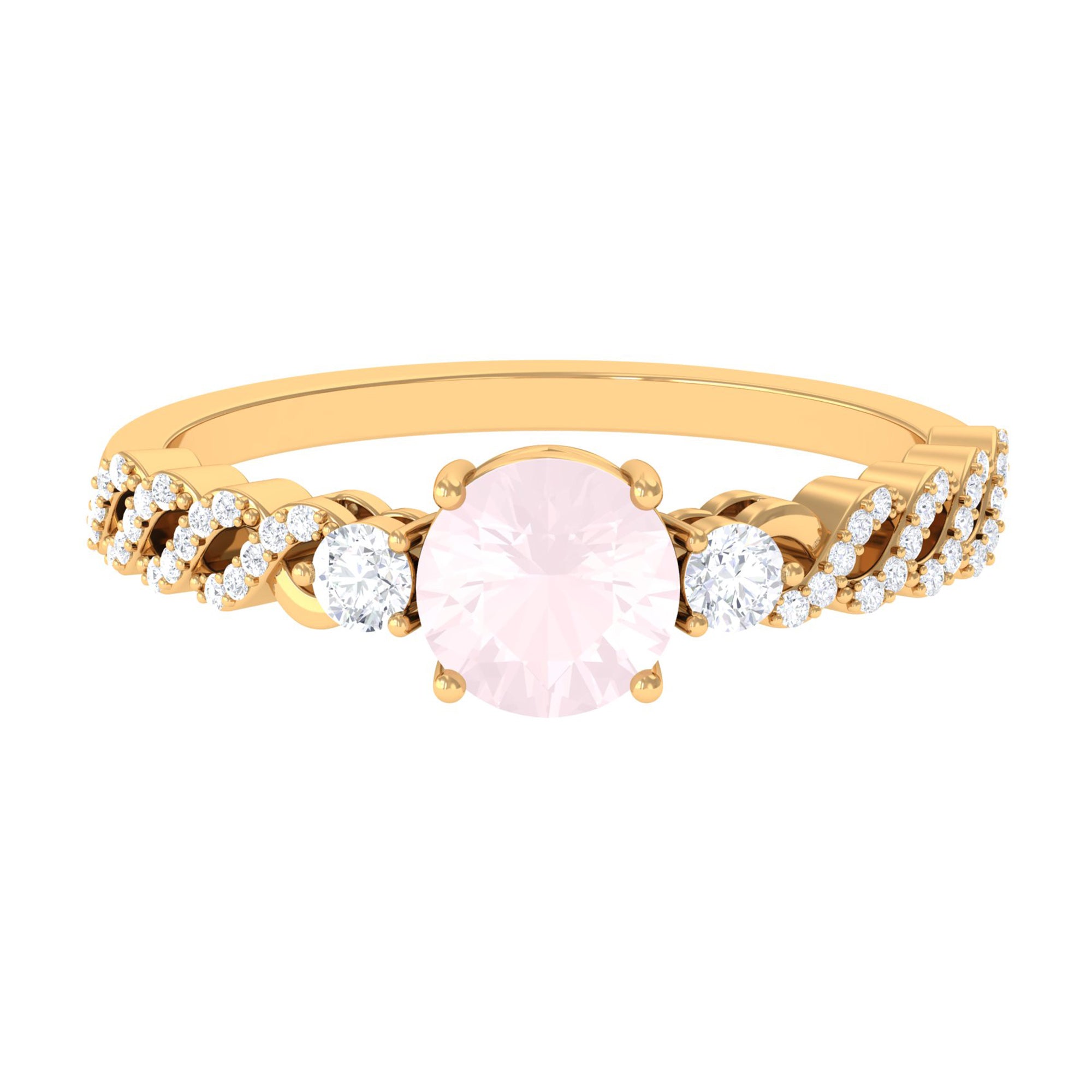 Round Shape Rose Quartz Designer Engagement Ring with Diamond Side Stones