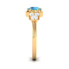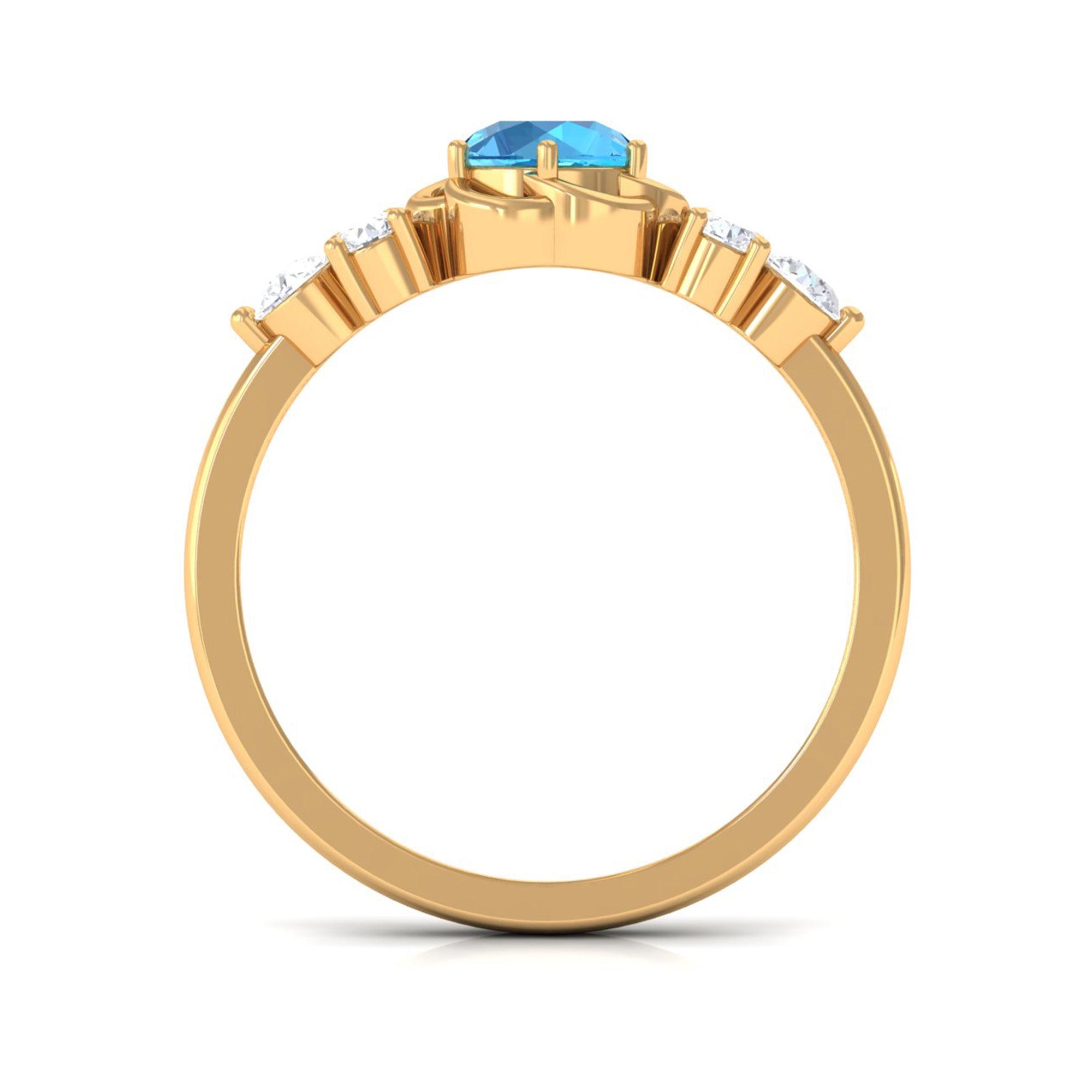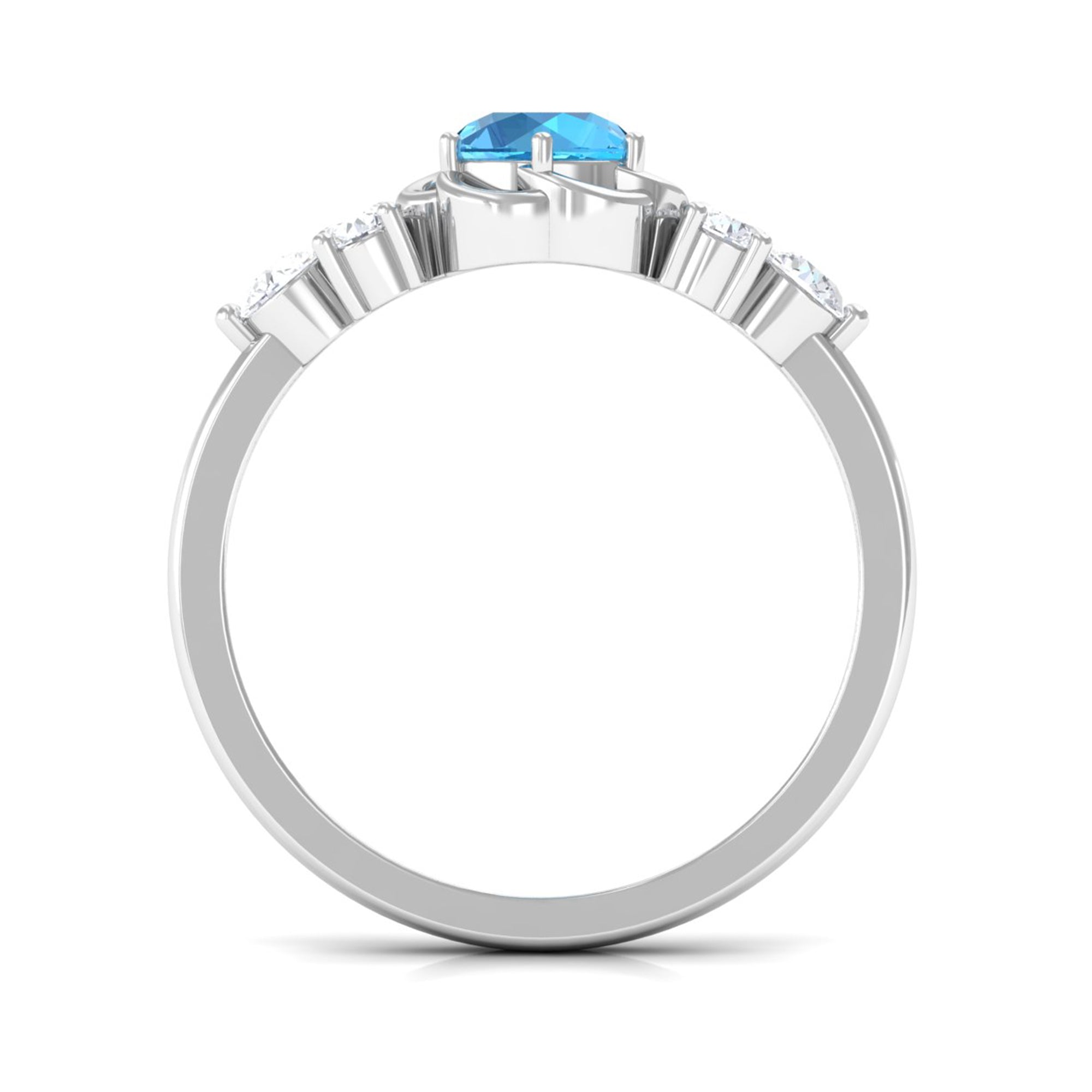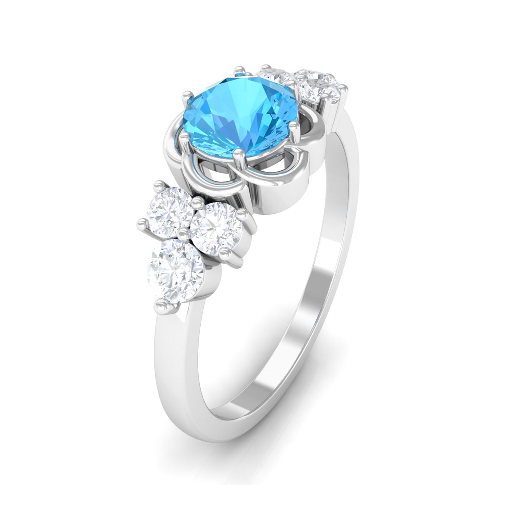 Round Shape Swiss Blue Topaz Floral Engagement Ring with Diamond Trio