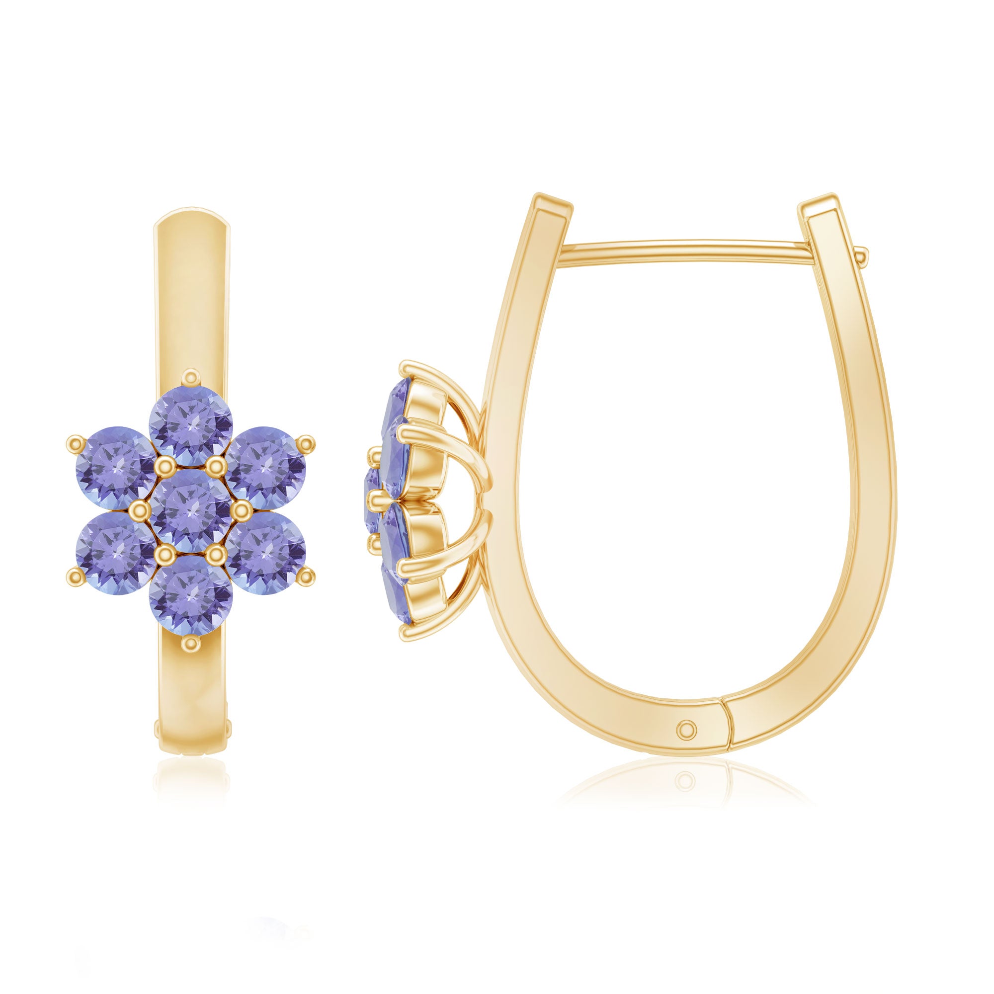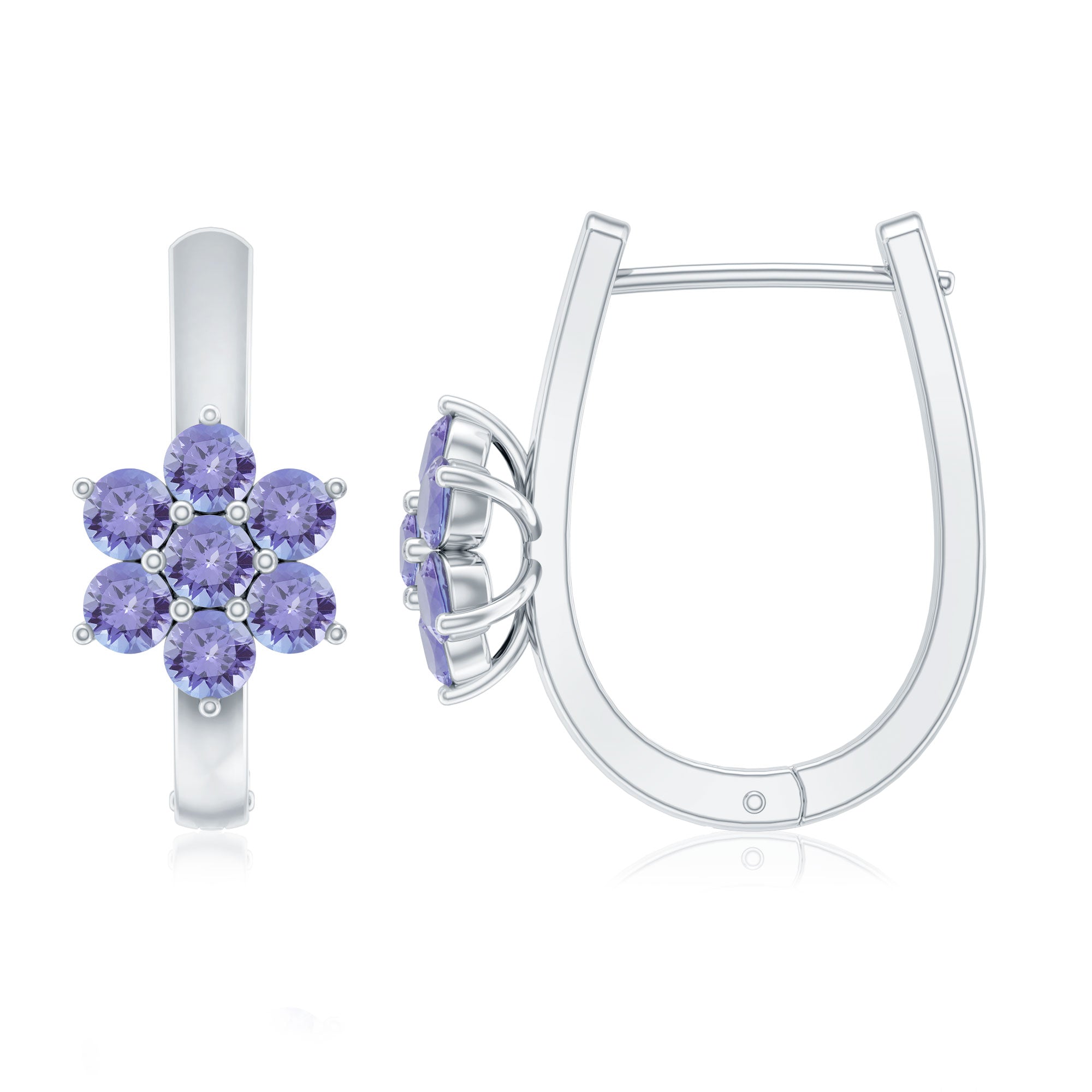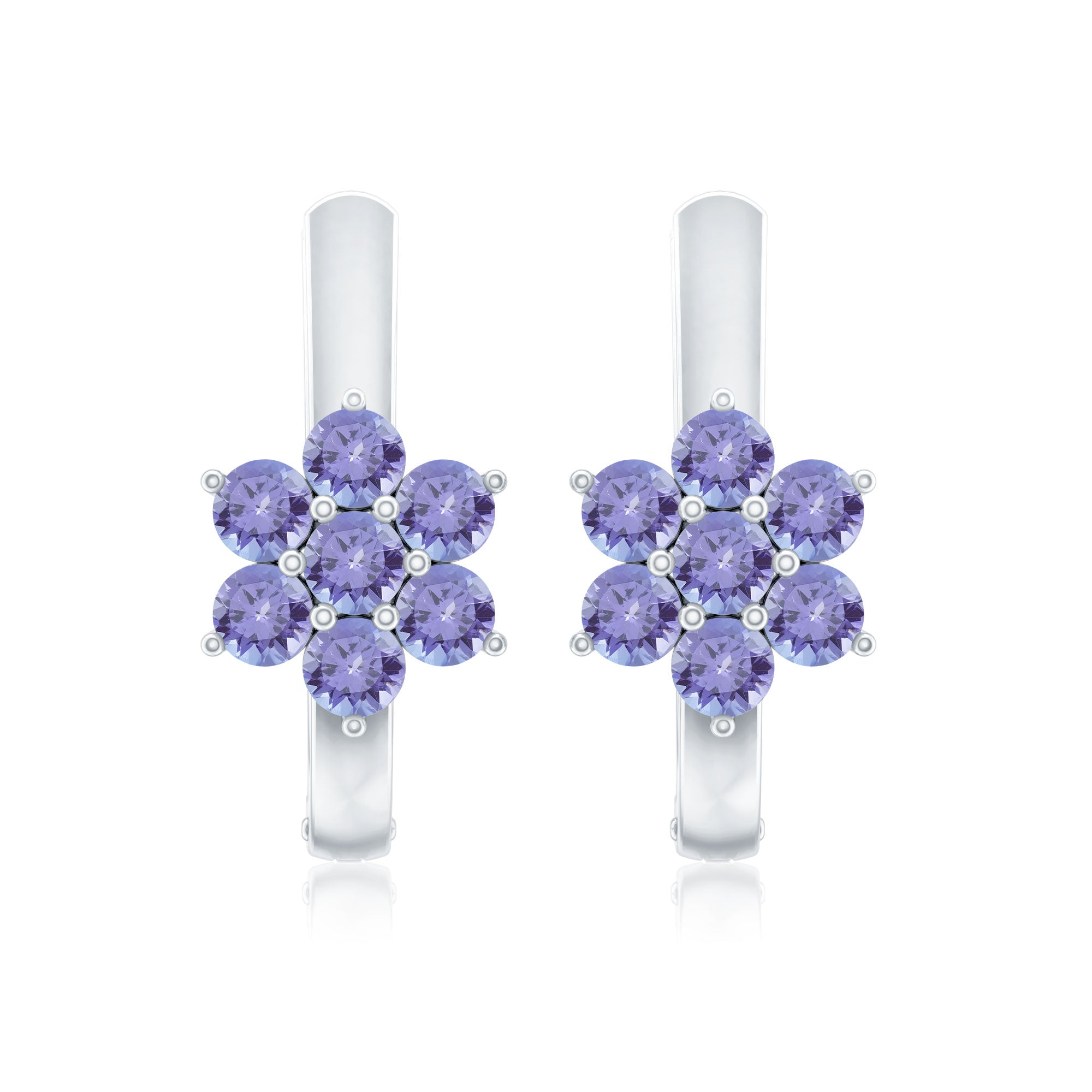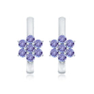 Everyday sparkle receives a delightful upgrade with these Flower Hoop Earrings, which are fresh, stylish, and easy to wear. Crafted in the form of small J hoops, these earrings showcase a stunning floral cluster made from brilliant round tanzanites, creating a delicate flower that immediately captures attention. The tanzanites are genuine and graded AAA quality, providing bright sparkle and a captivating hue that shines effortlessly all day long. The flower detail rests elegantly on the J hoop, adding just the right amount of sophistication while maintaining a simple and versatile overall appearance. A snap back closure ensures these Tanzanite Hoop Earrings are both comfortable and secure, making them ideal for everyday wear without any hassle. Lightweight and thoughtfully designed, they complement casual outfits, work attire, or dressed-up ensembles when you desire something subtle yet special. These Tanzanite Floral Earrings are a meaningful choice for conveying love and appreciation. Whether given to a wife, girlfriend, daughter, mother, or a close friend, they hold significance. Their timeless design guarantees they will be cherished and worn repeatedly.
