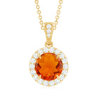Round Shaped Fire Opal and Diamond Halo Necklace with Chain