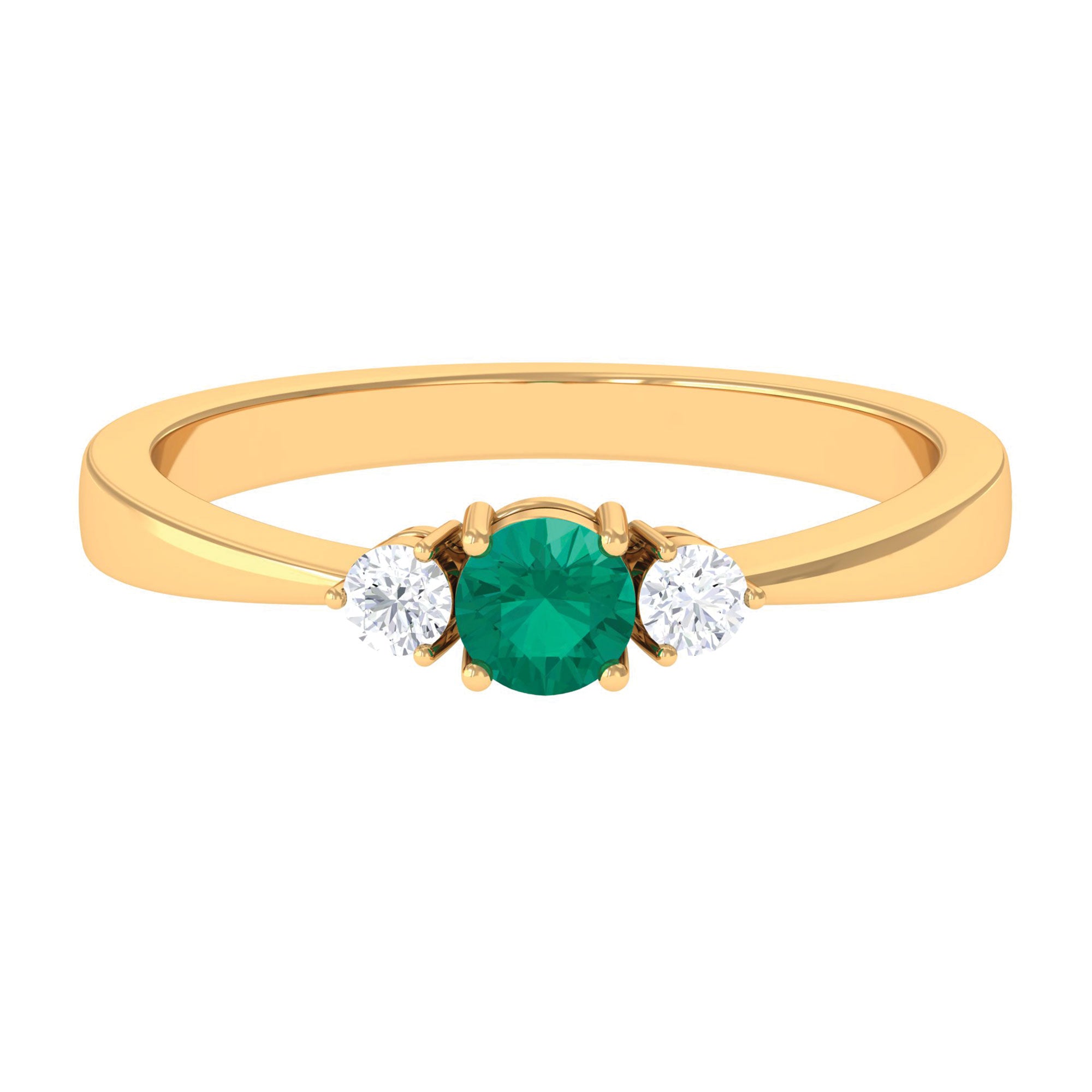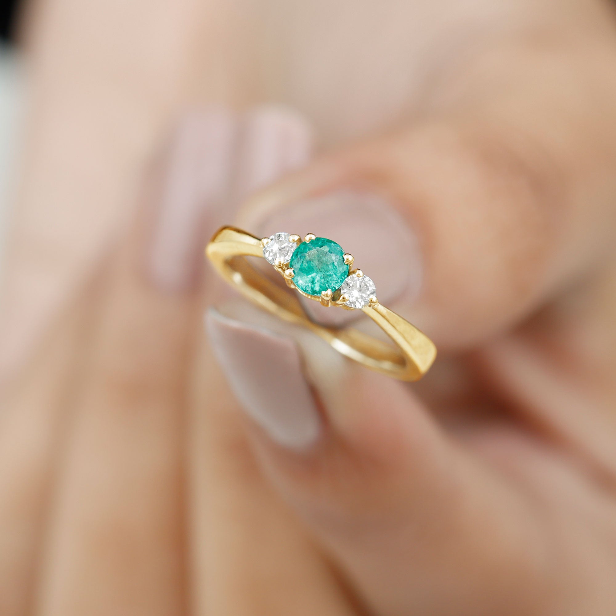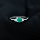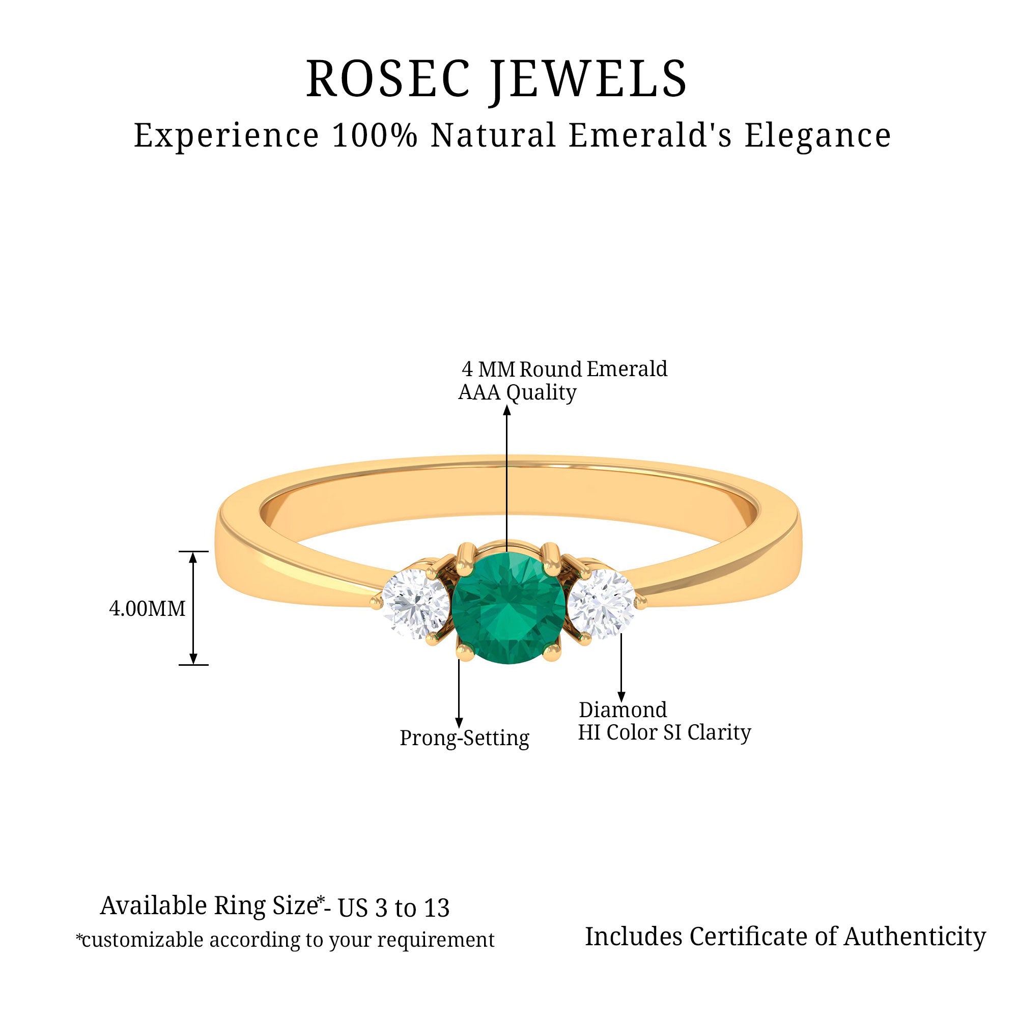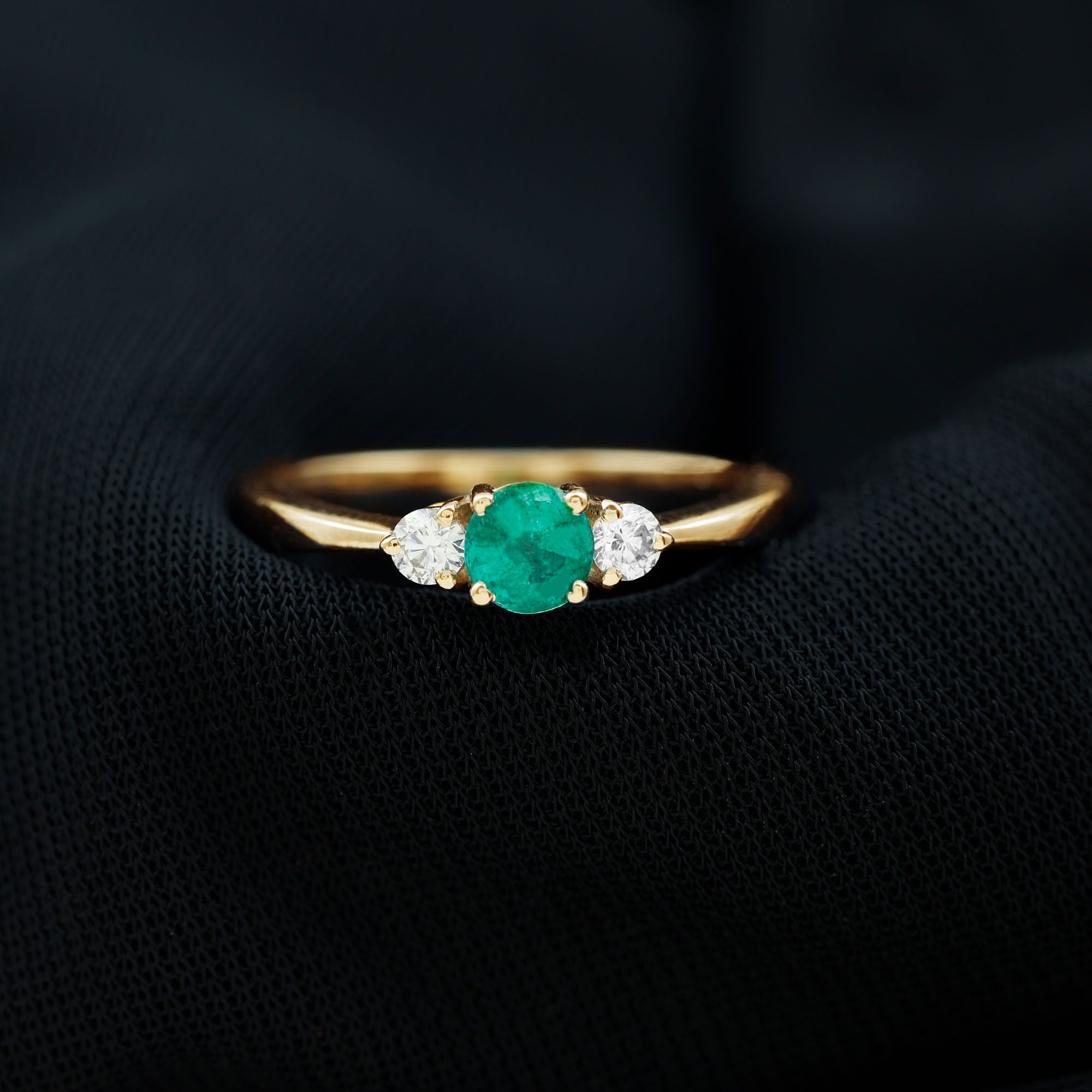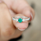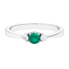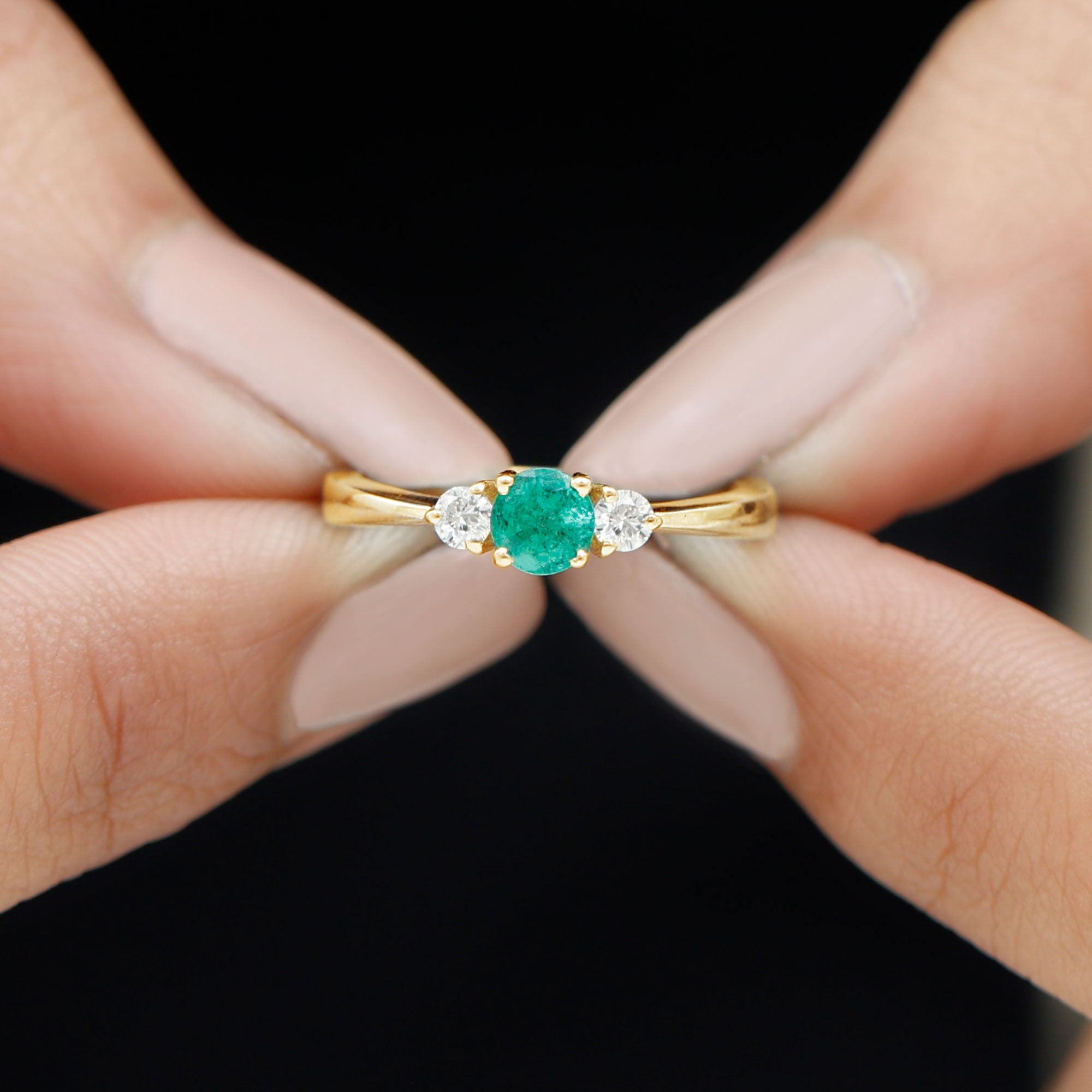 Round Shaped Real Emerald and Diamond Three Stone Promise Ring
