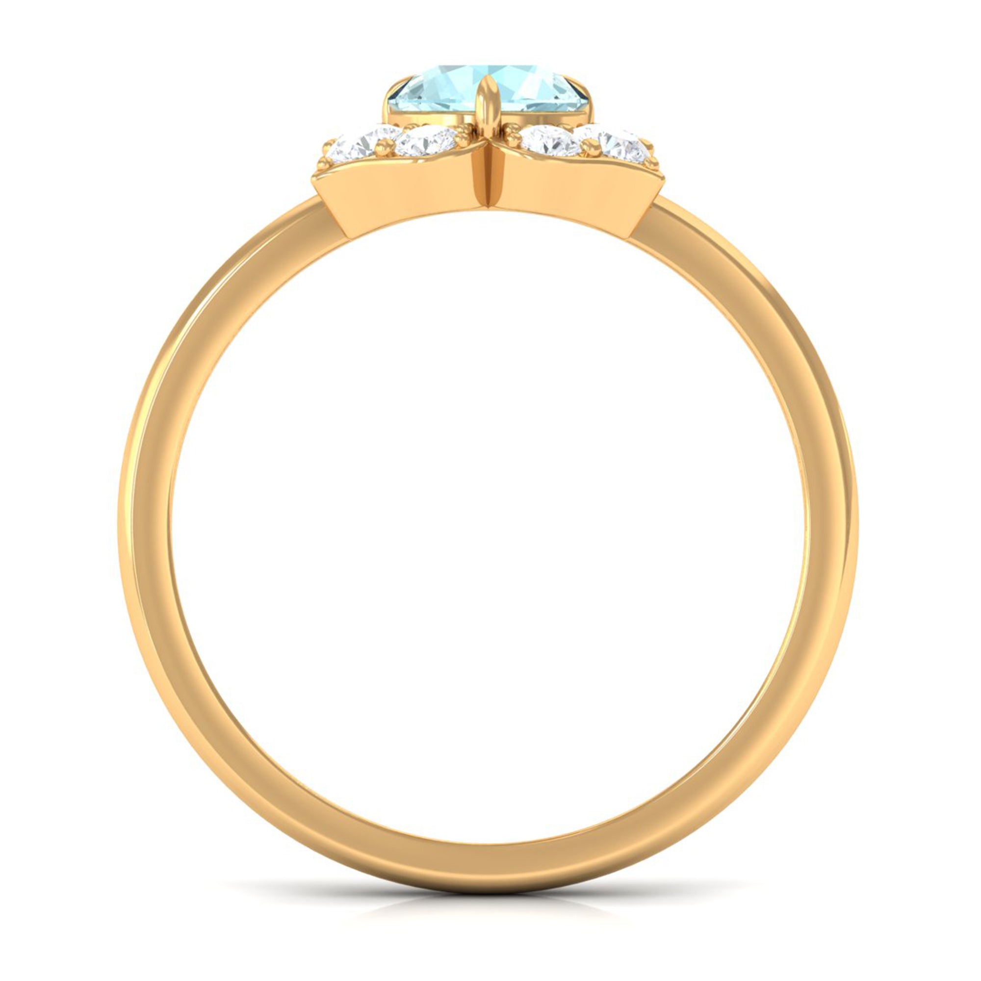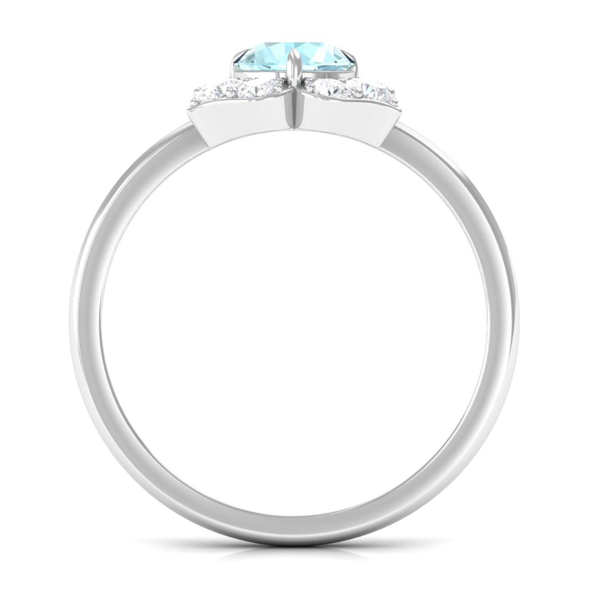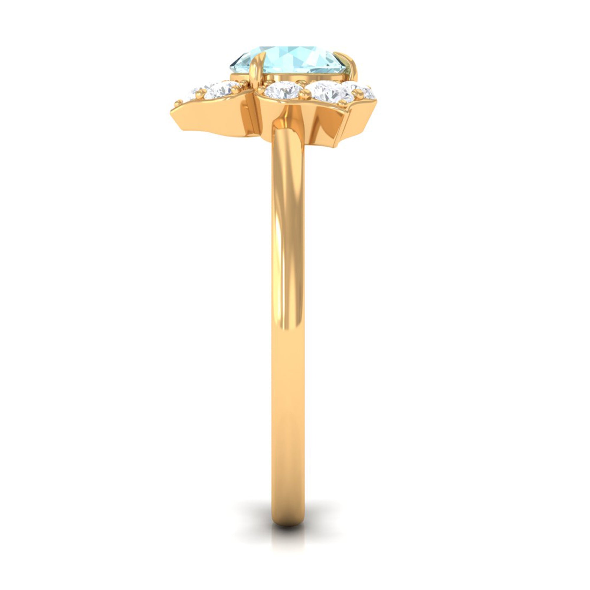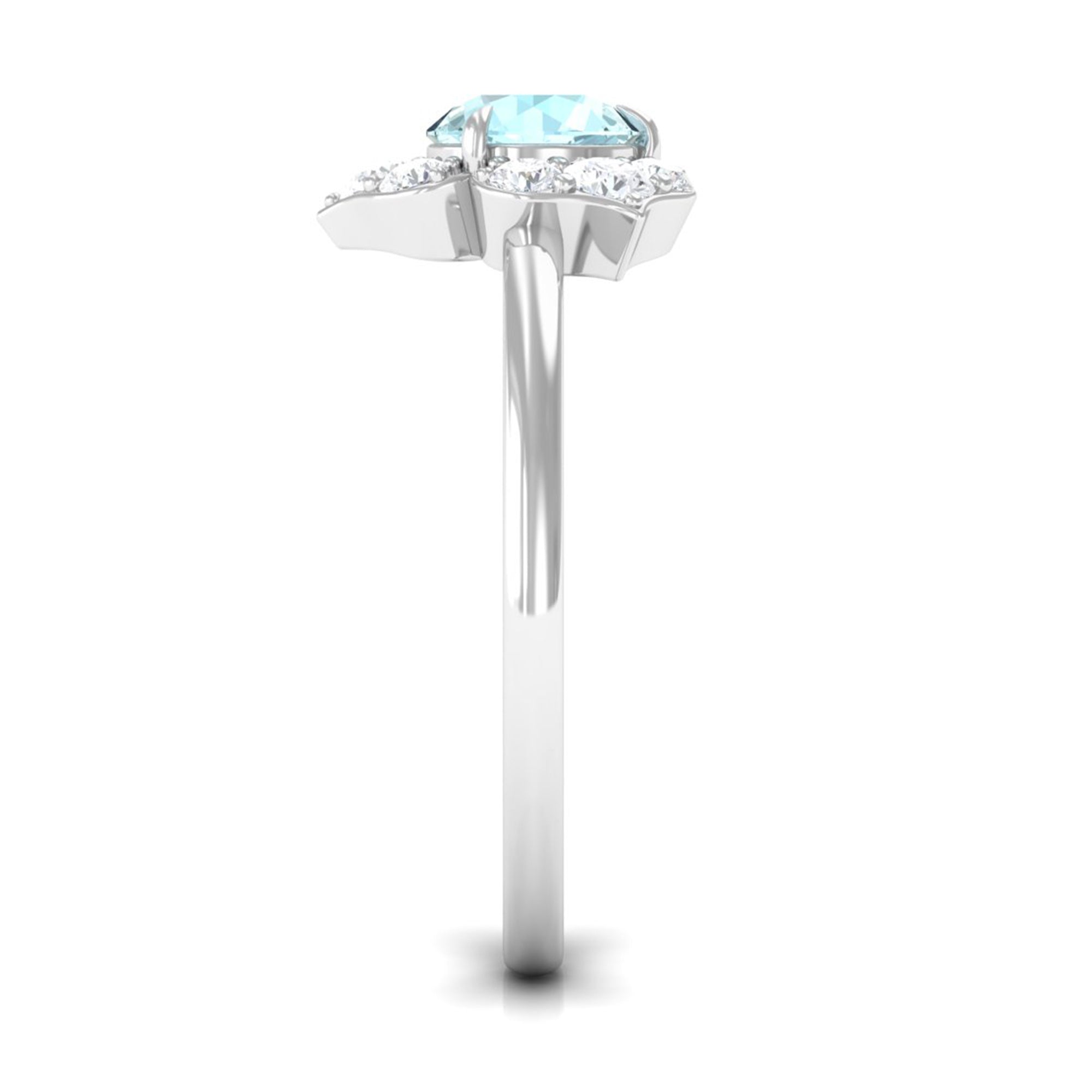 Round Sky Blue Topaz Flower Ring with Diamond Accent
