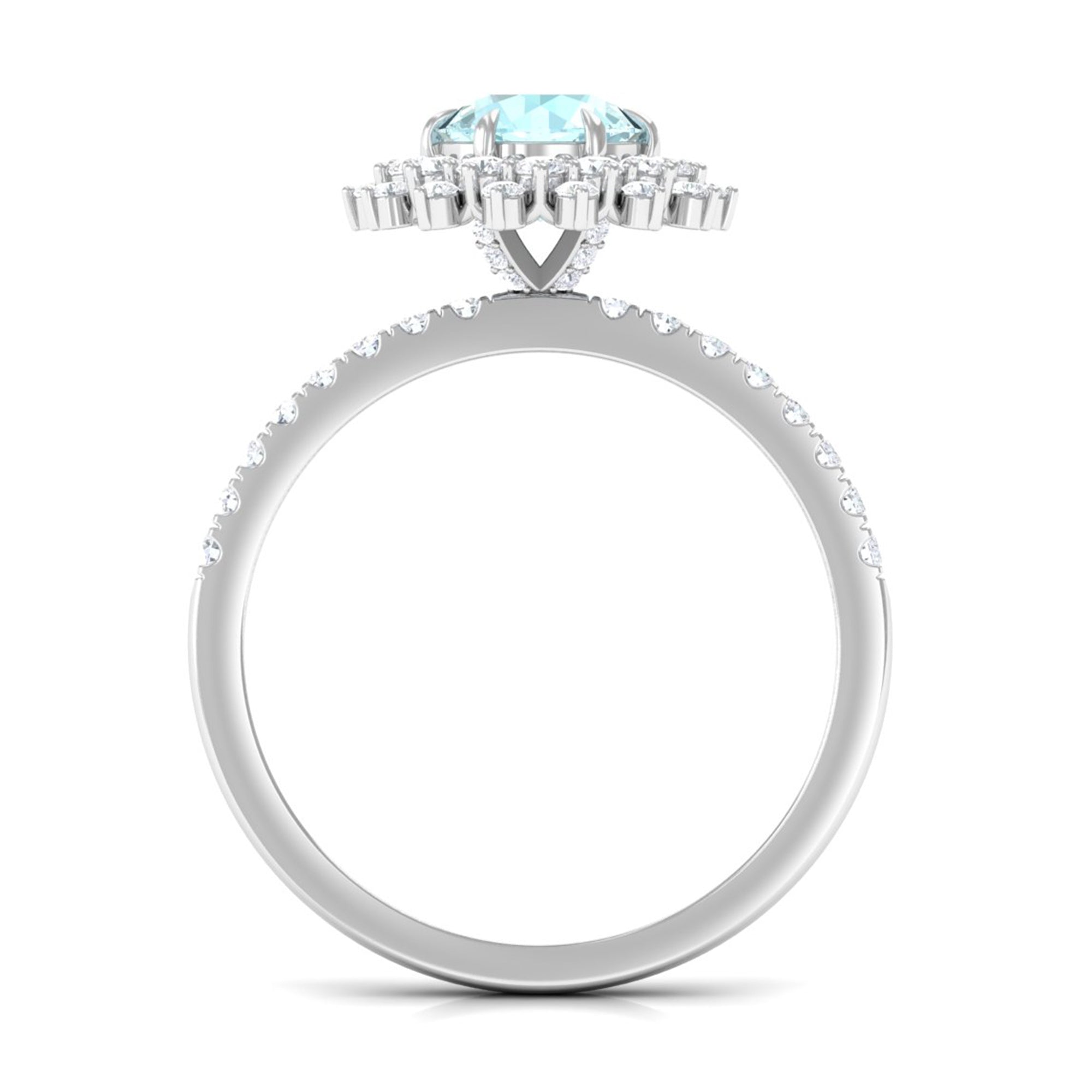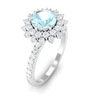 Round Sky Blue Topaz Statement Engagement Ring with Moissanite Cluster Halo