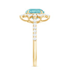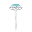 Round Sky Blue Topaz Statement Engagement Ring with Moissanite Floral Halo