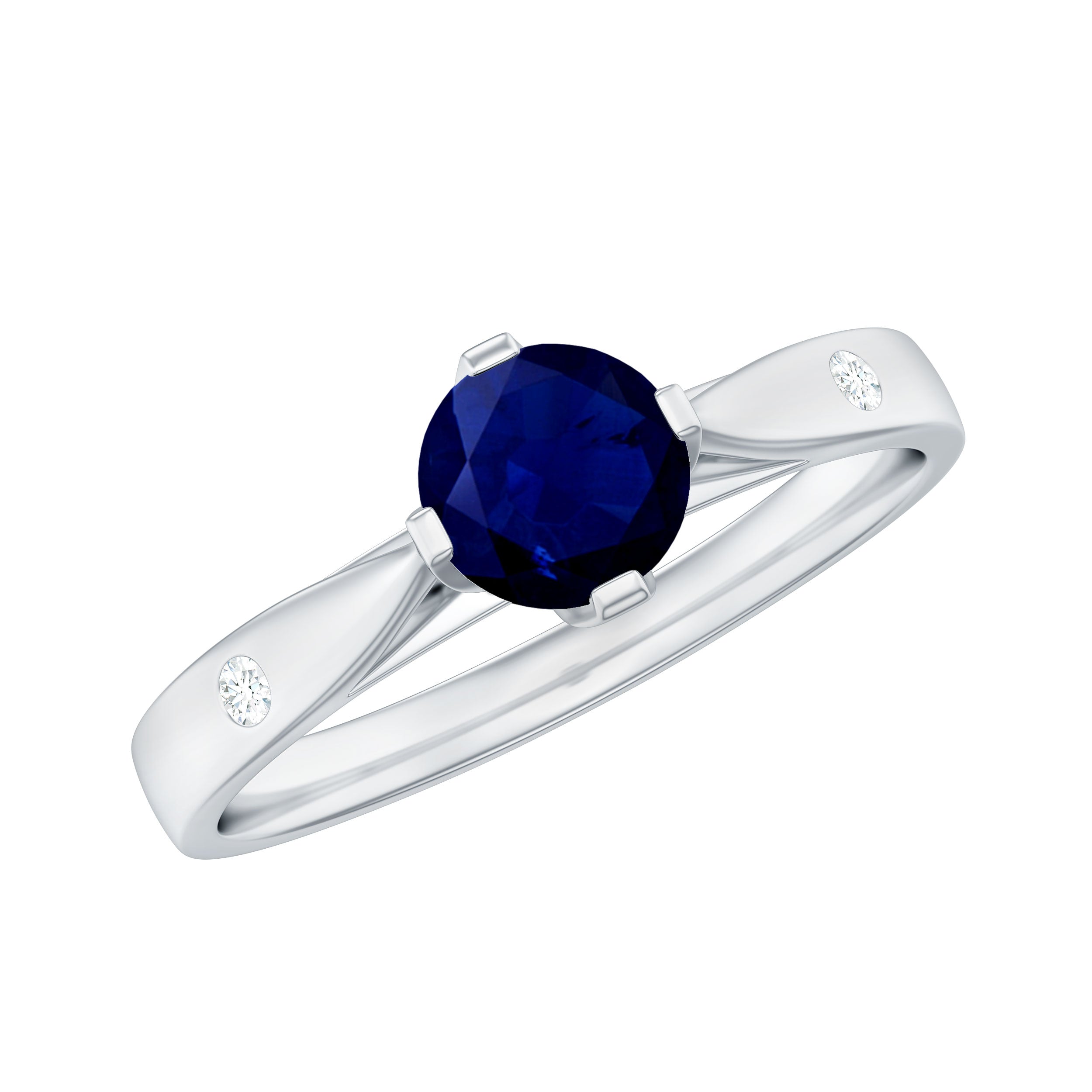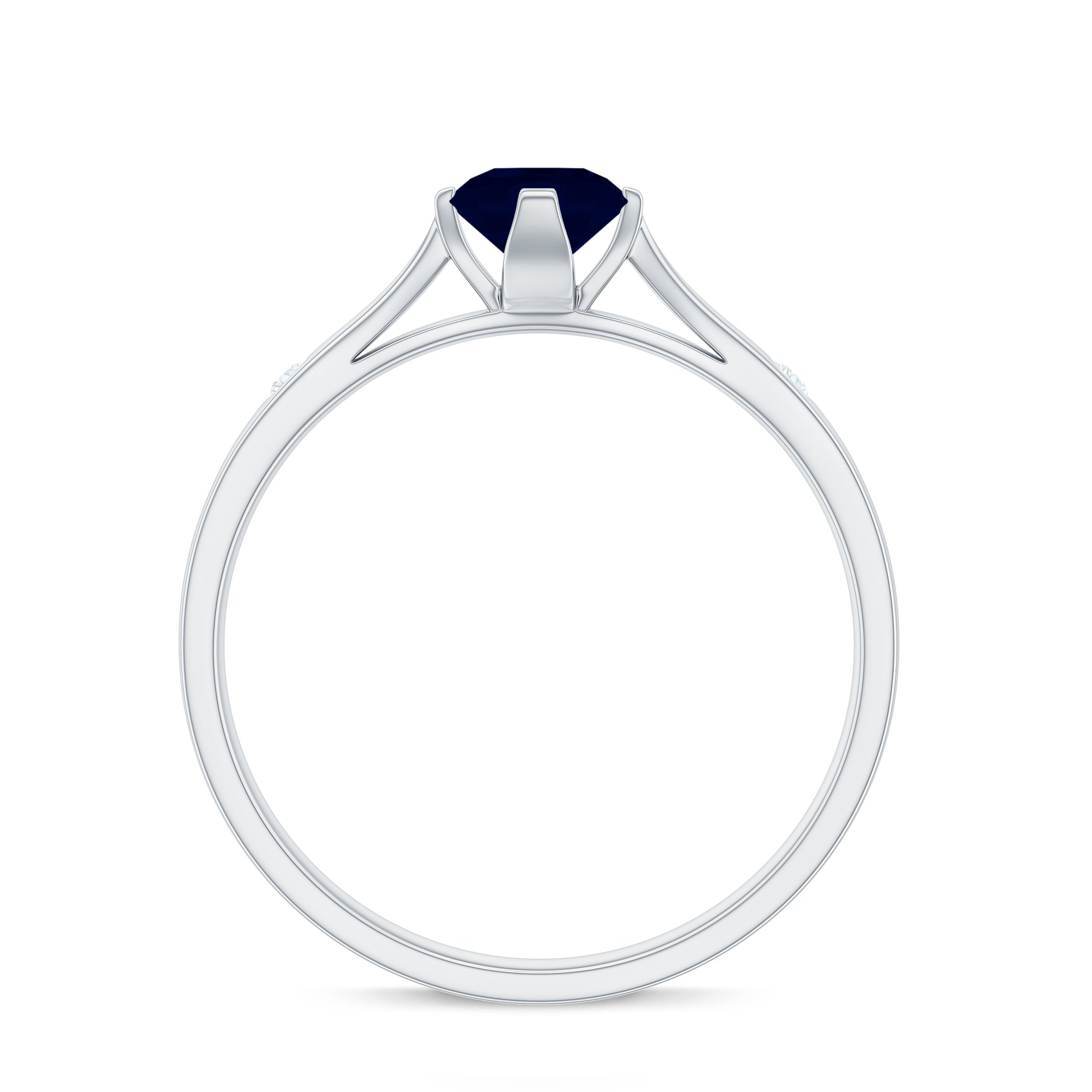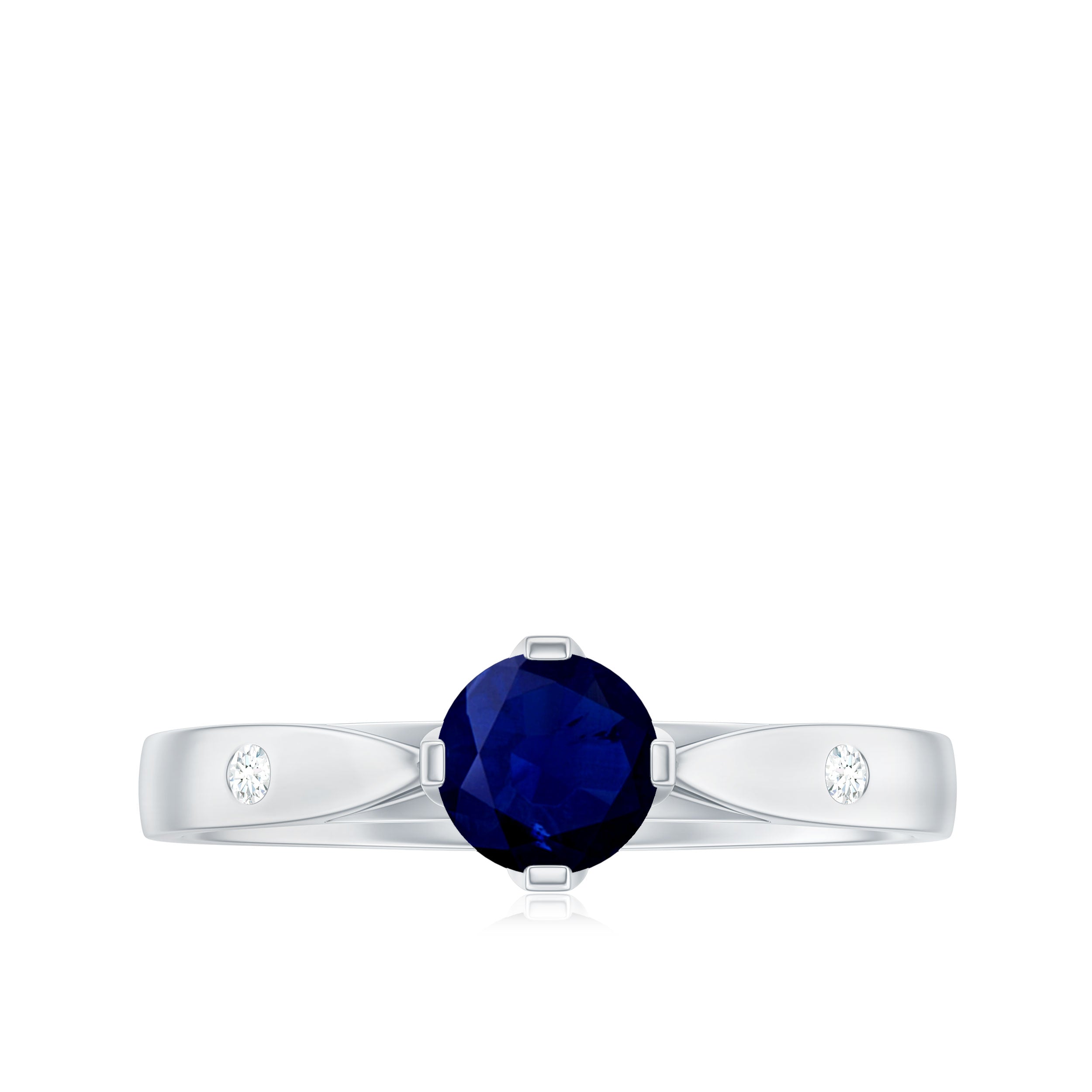 Round Solitaire Blue Sapphire Promise Ring with Diamond