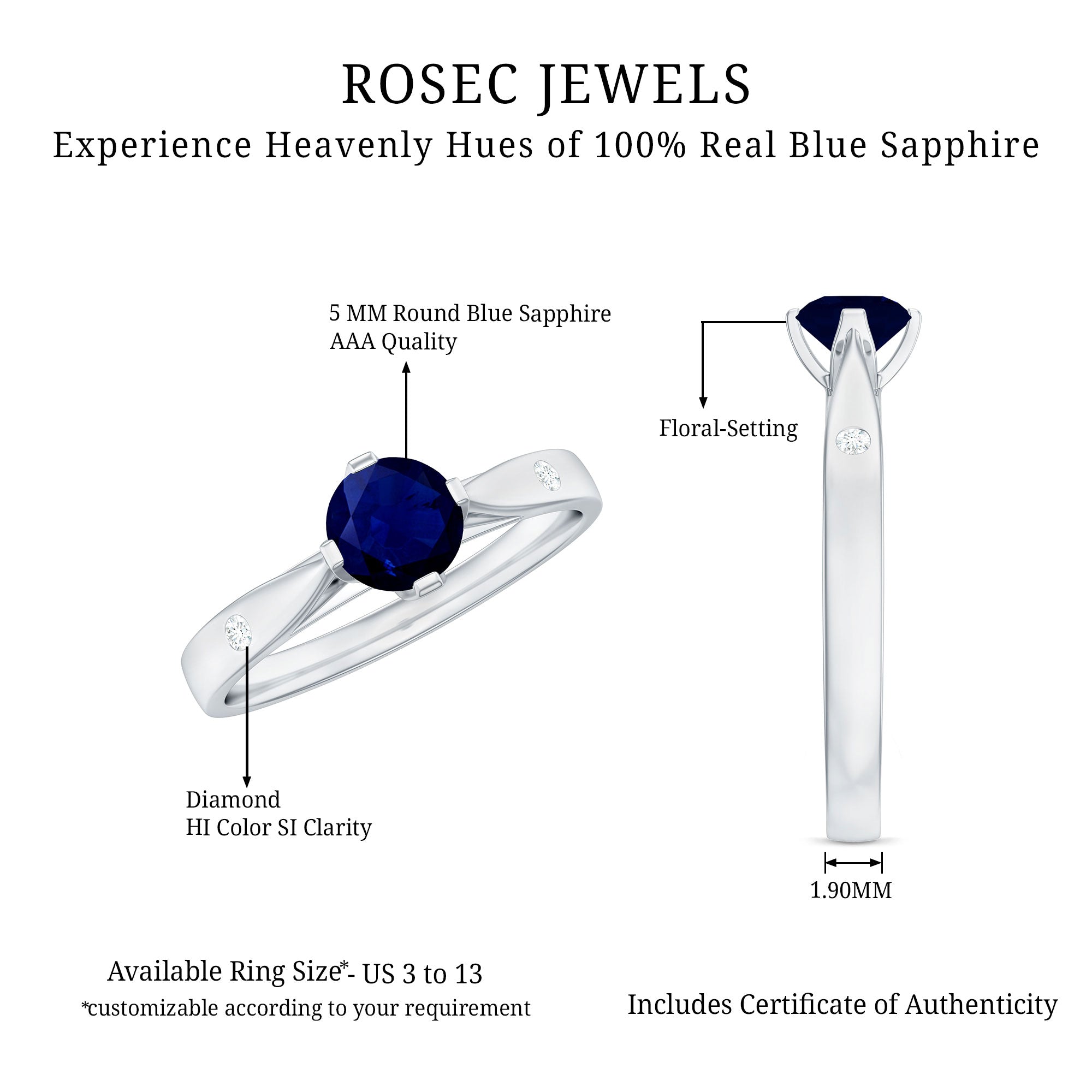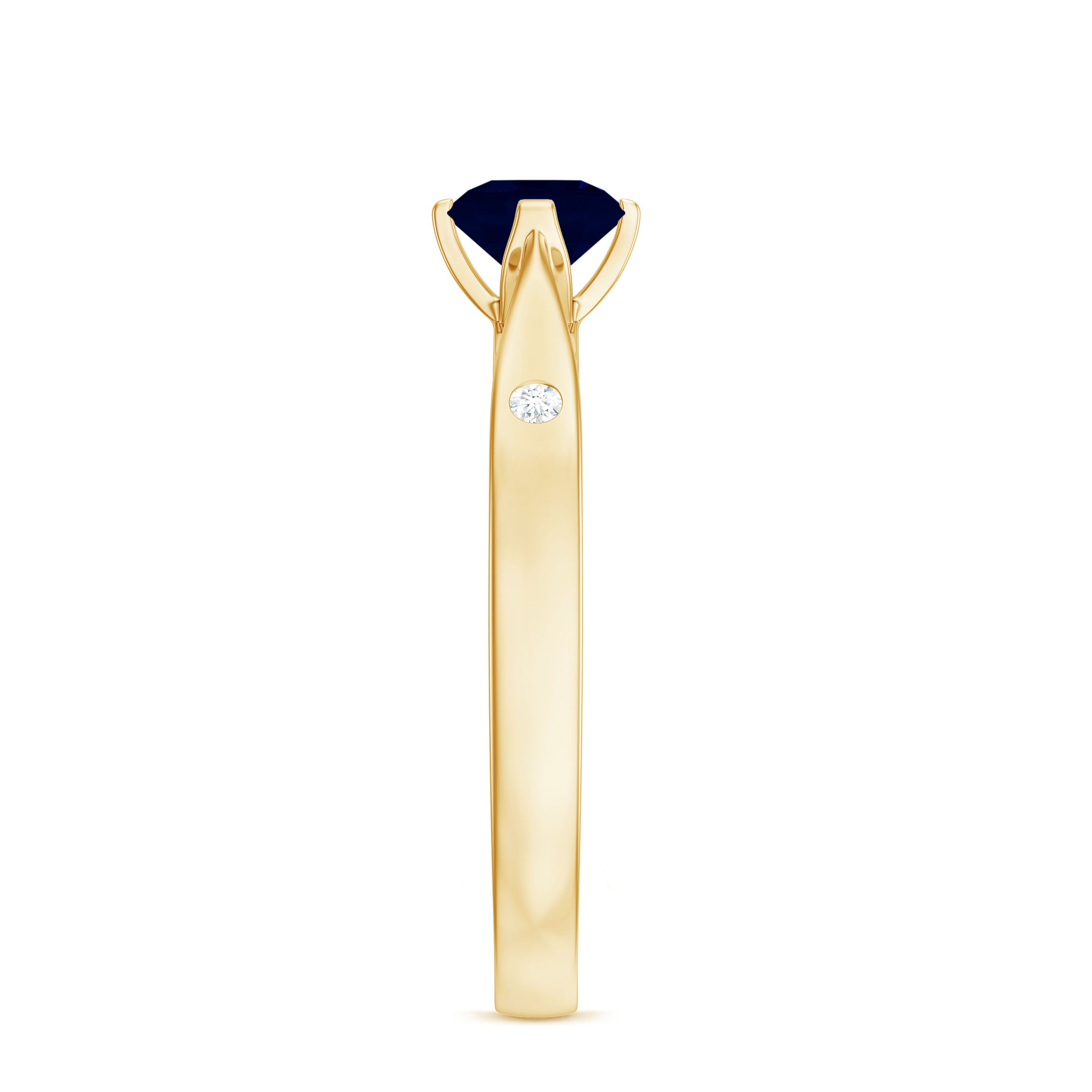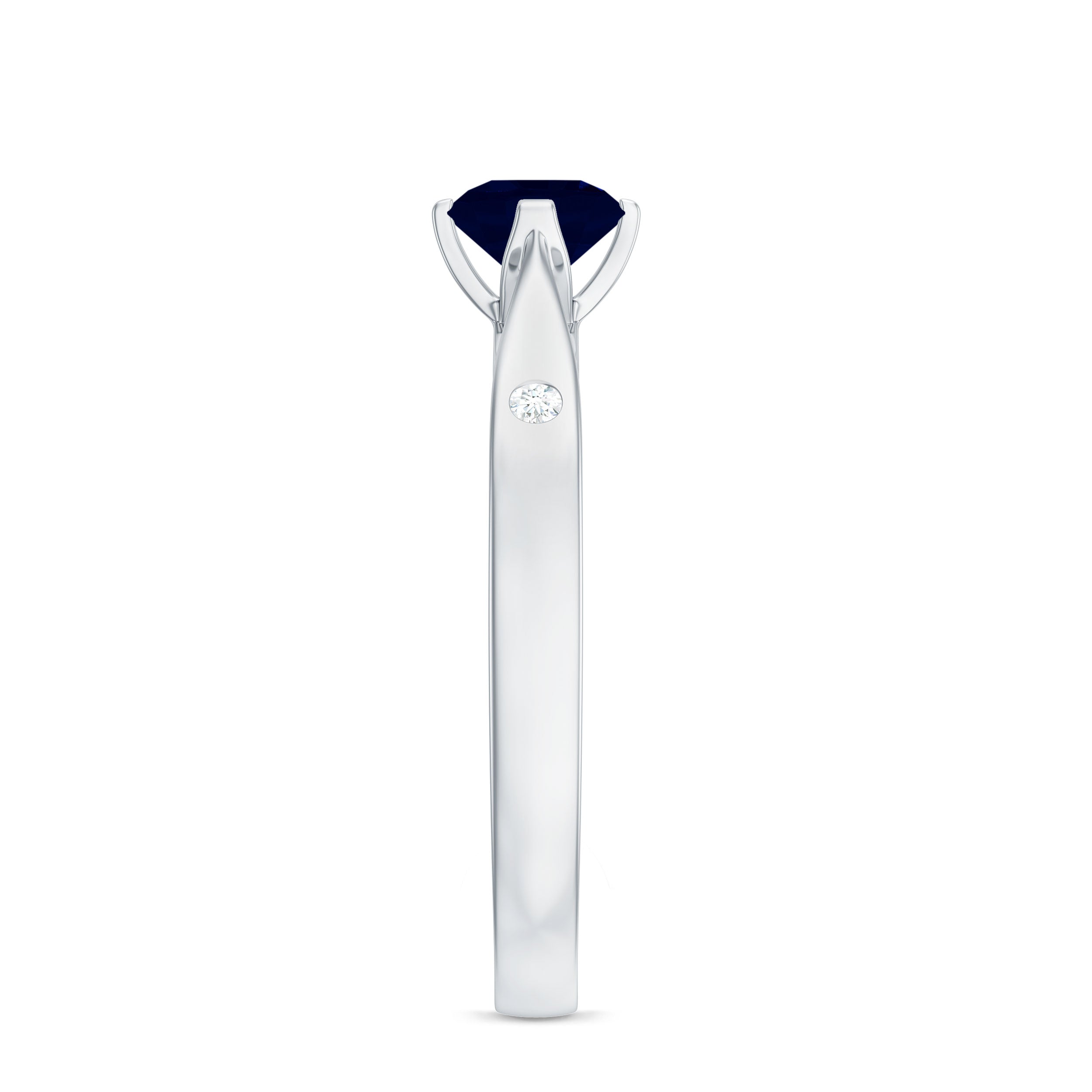 Round Solitaire Blue Sapphire Promise Ring with Diamond