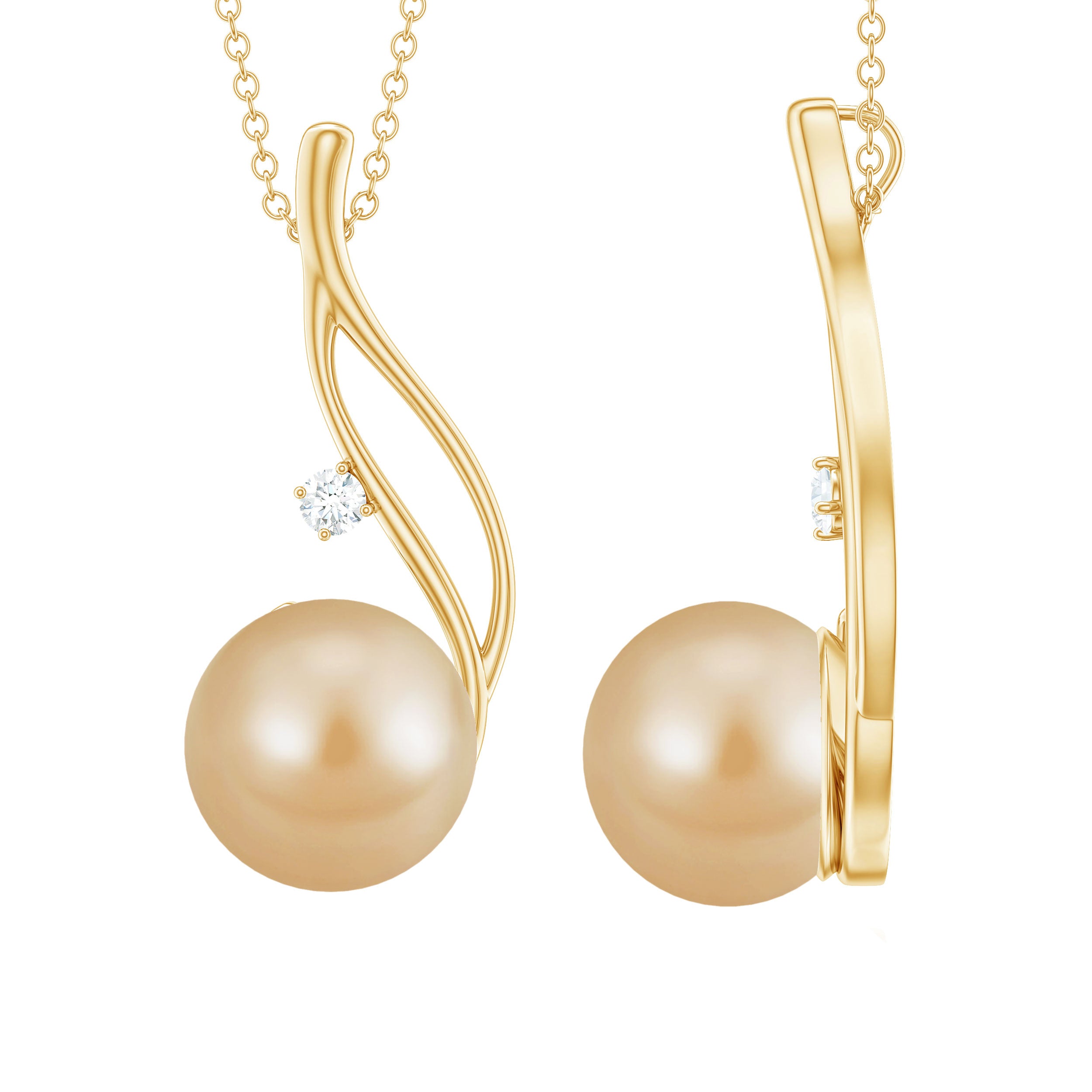 Surprise your partner with the addition of this exceptional Minimal Leaf Pendant. This pendant showcases a round-shaped South Sea Pearl in a bead setting, embellished with glistening round Moissanite. Its a striking jewelry piece bound to captivate everyones gaze and leave a lasting impression.