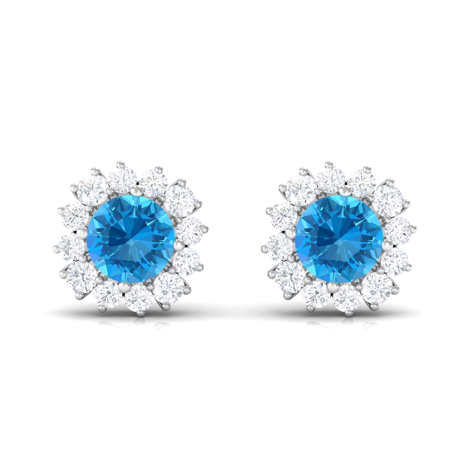 Round Swiss Blue Topaz Classic Stud Earring with Diamond Accent