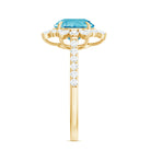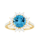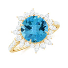 Round Swiss Blue Topaz Statement Ring with Moissanite Floral Halo