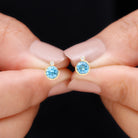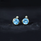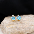 Round Swiss Blue Topaz Stud Earrings with Moissanite