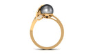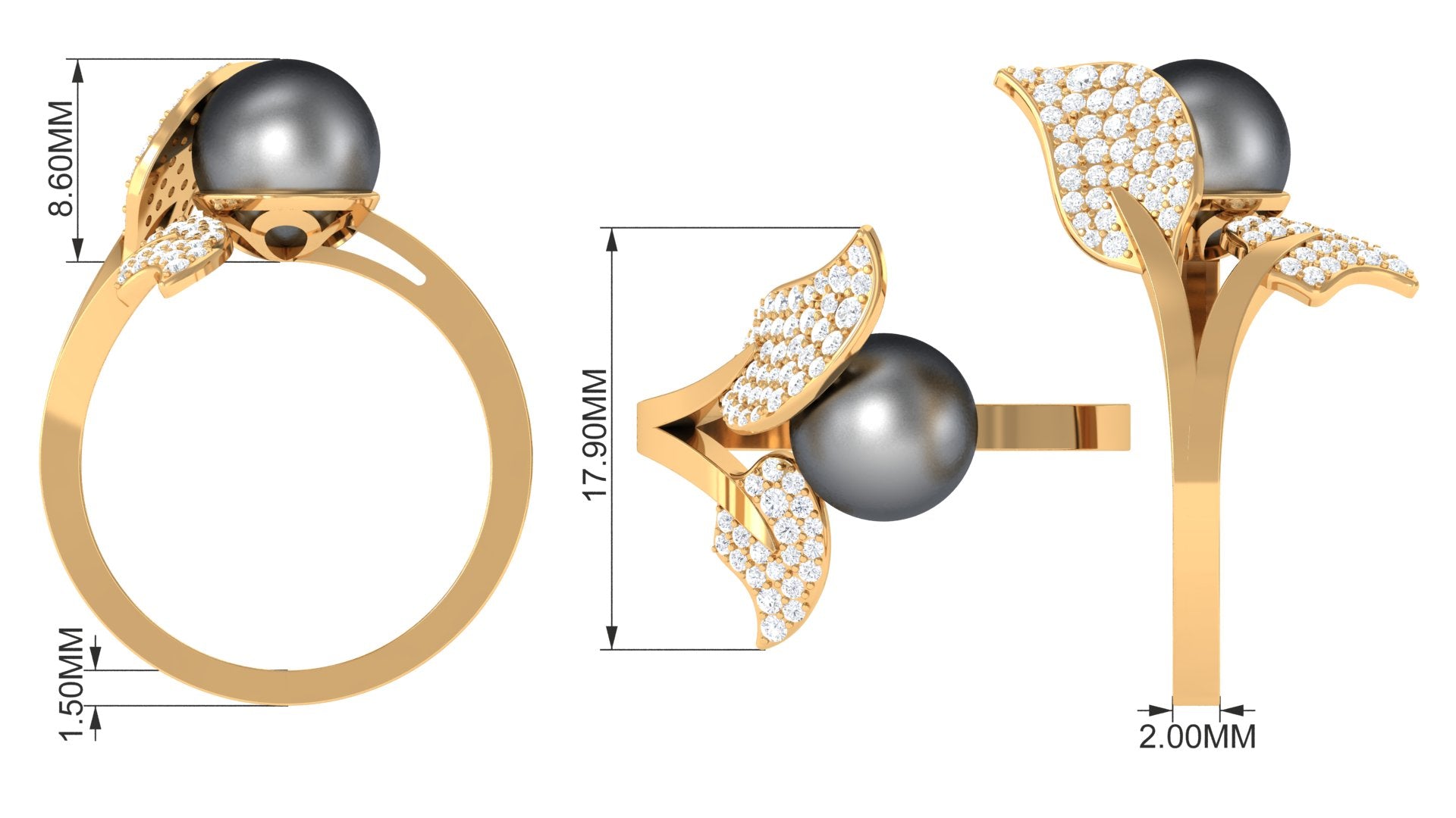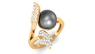 Round Tahitian Pearl and Diamond Leaf Engagement Ring