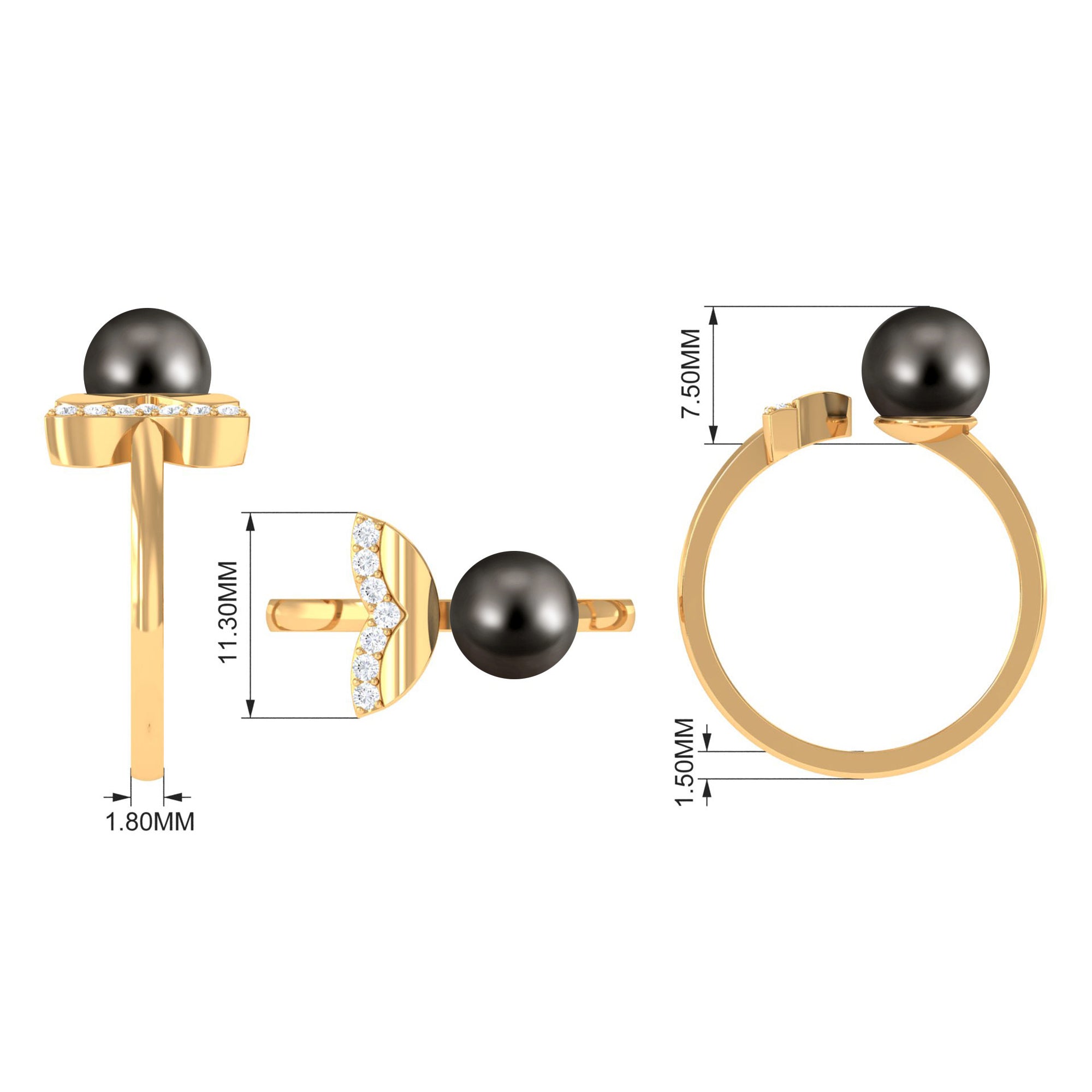 Upgrade your fashion statement with our chic and modern Tahitian Pearl Solitaire Cuff Ring, adorned with a lustrous Tahitian Pearl on one end and Diamond Accents on the other. Crafted in Solid Gold, this black pearl engagement ring is the perfect fit for women born in June, who appreciate style and elegance.