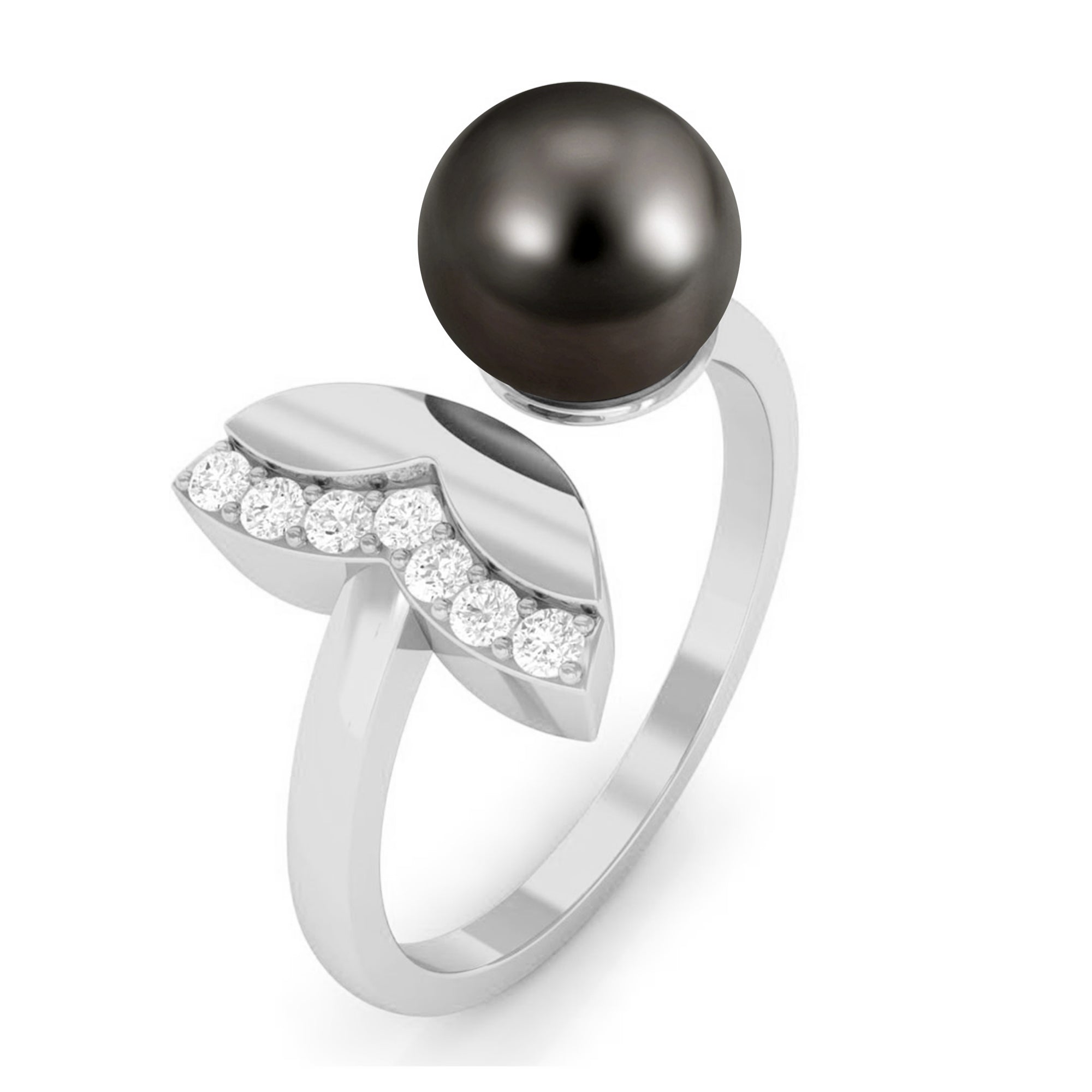 Round Tahitian Pearl Solitaire Cuff Engagement Ring with Diamond