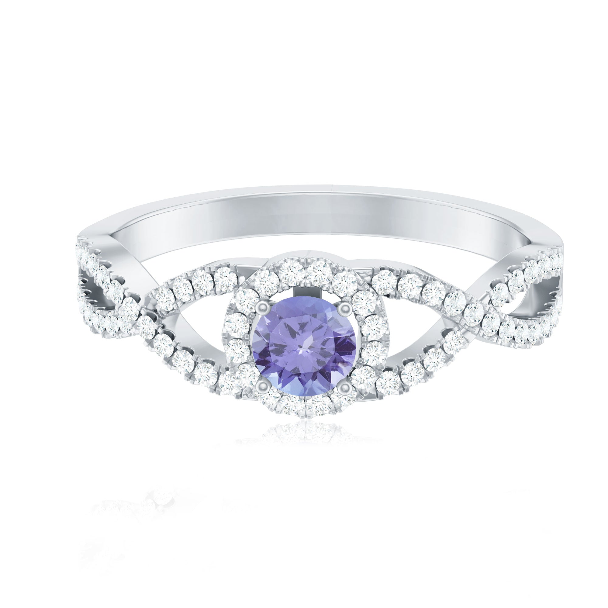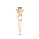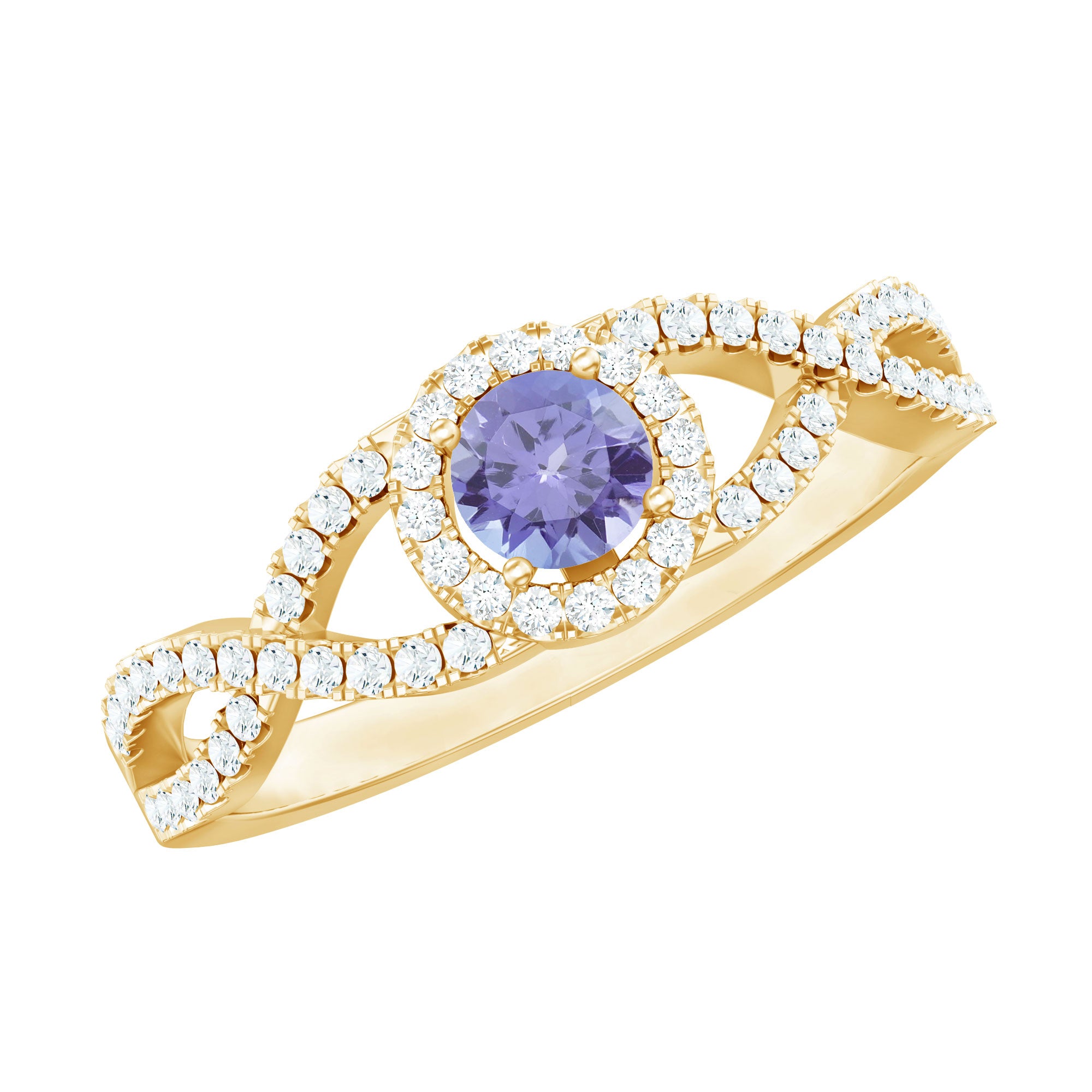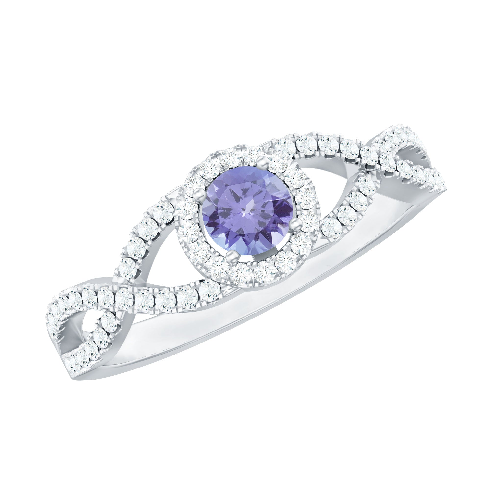 Round Tanzanite Crisscross Engagement Ring with Diamond Halo