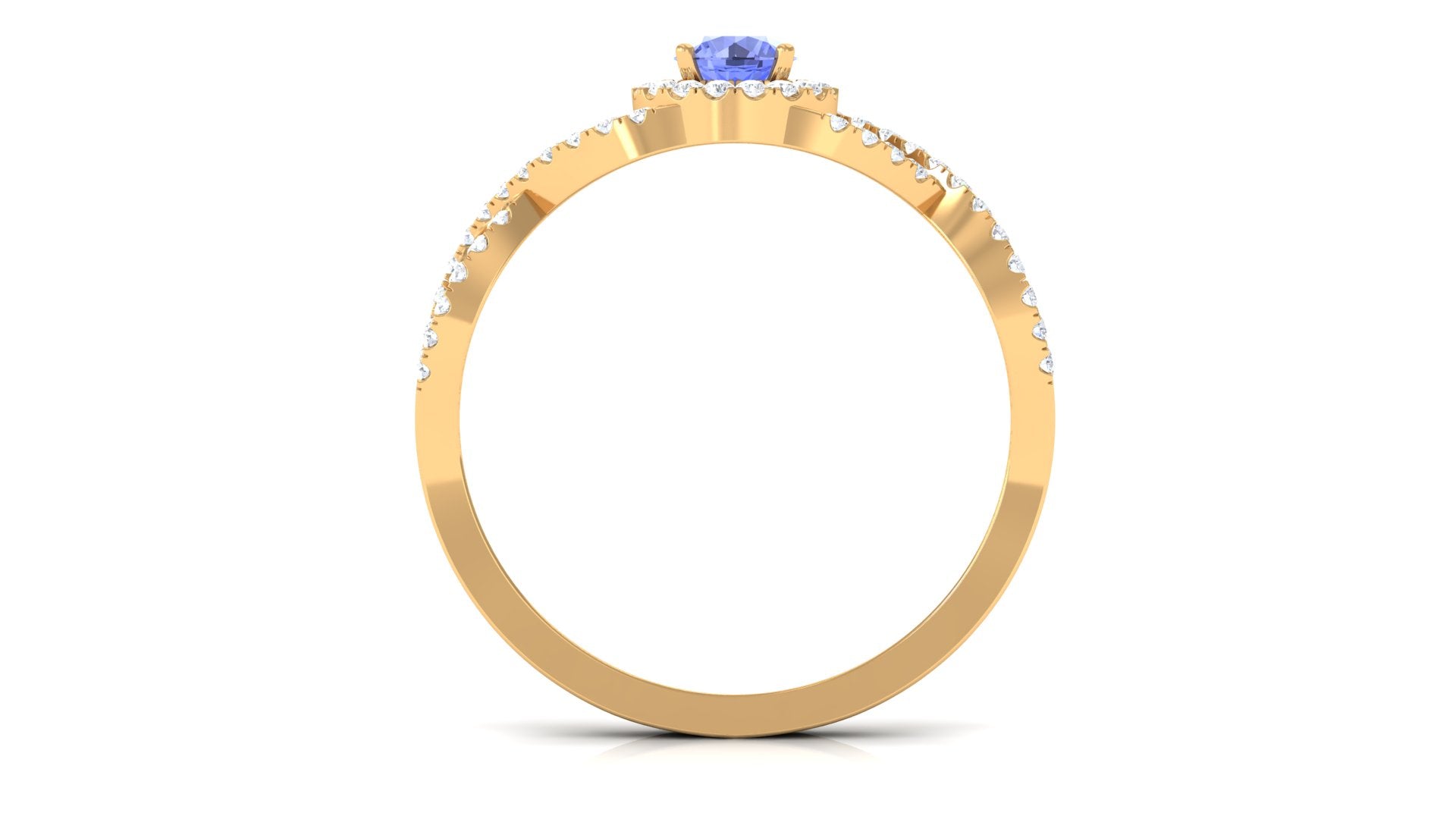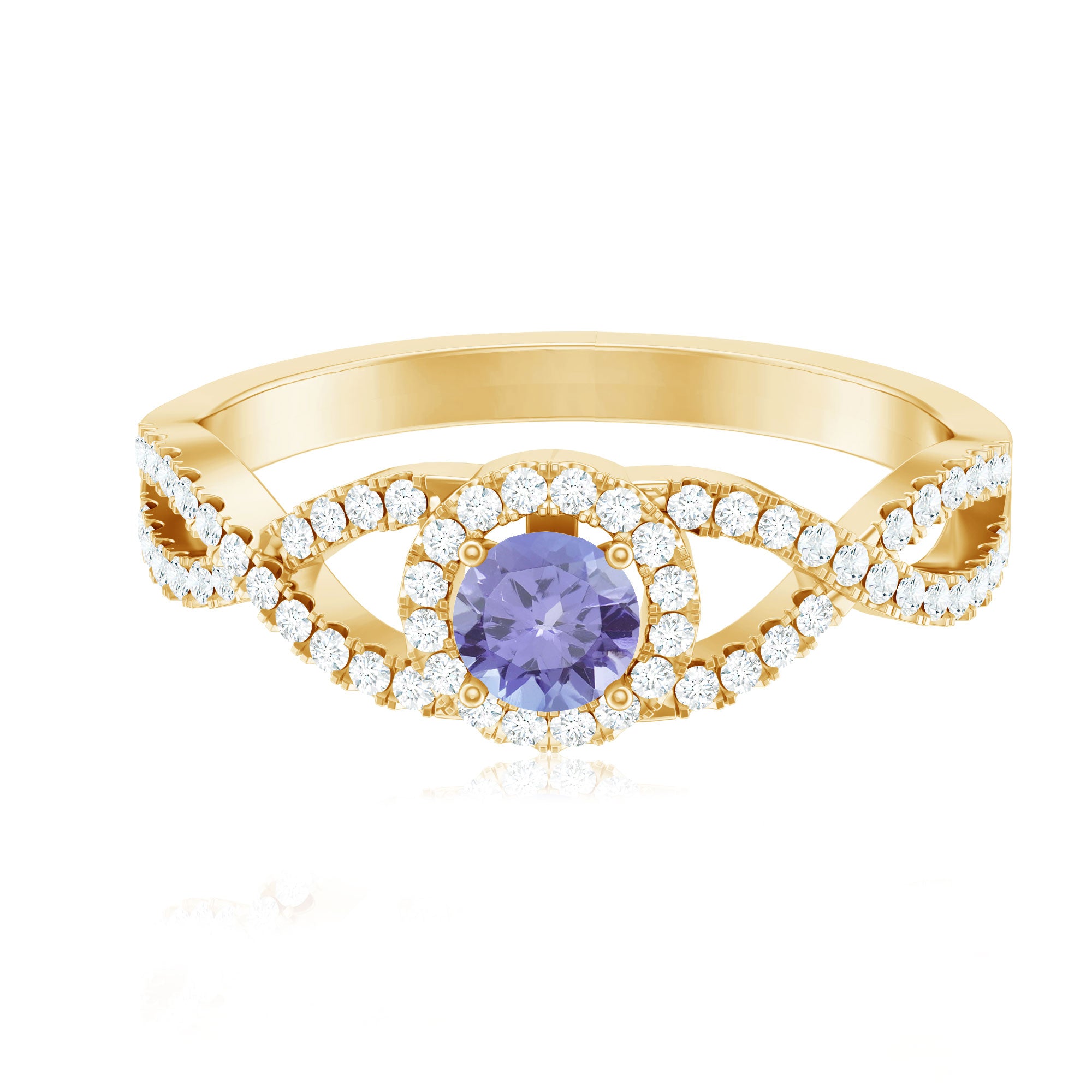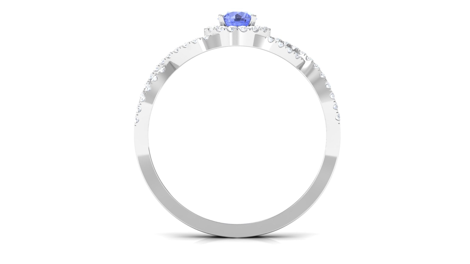 Round Tanzanite Crisscross Engagement Ring with Diamond Halo
