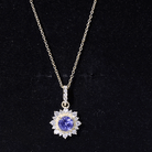 Round Tanzanite Halo Pendant with Diamond Accent Bail