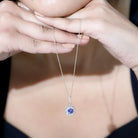 If youre searching for the perfect jewelry to wear on an evening date with your partner, look no further than this Tanzanite Pendant. Featuring a 6 MM Round Shape Tanzanite in a Prong Setting, with Gold Beaded Details and a Round Diamond Halo, this pendant necklace is simply stunning. The subtle yet elegant design will garner compliments when you wear it. With a total weight of 1.75 Carats and AAA Quality, this pendant is made with high-quality certified gemstones that undergo strict quality checks.