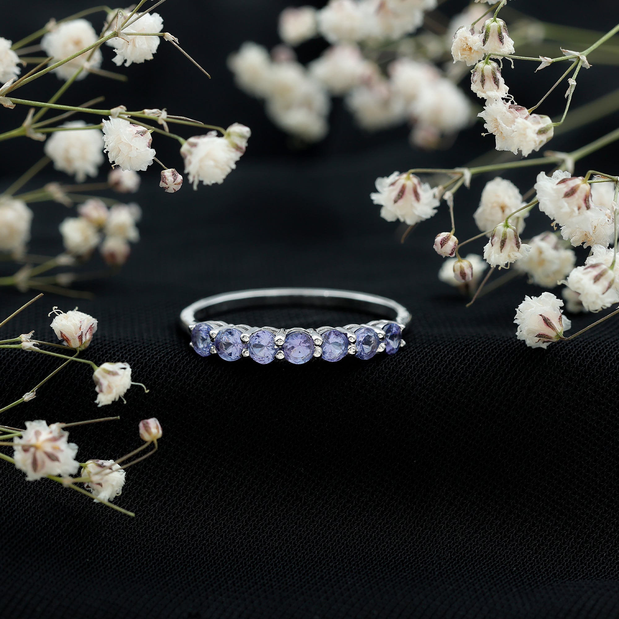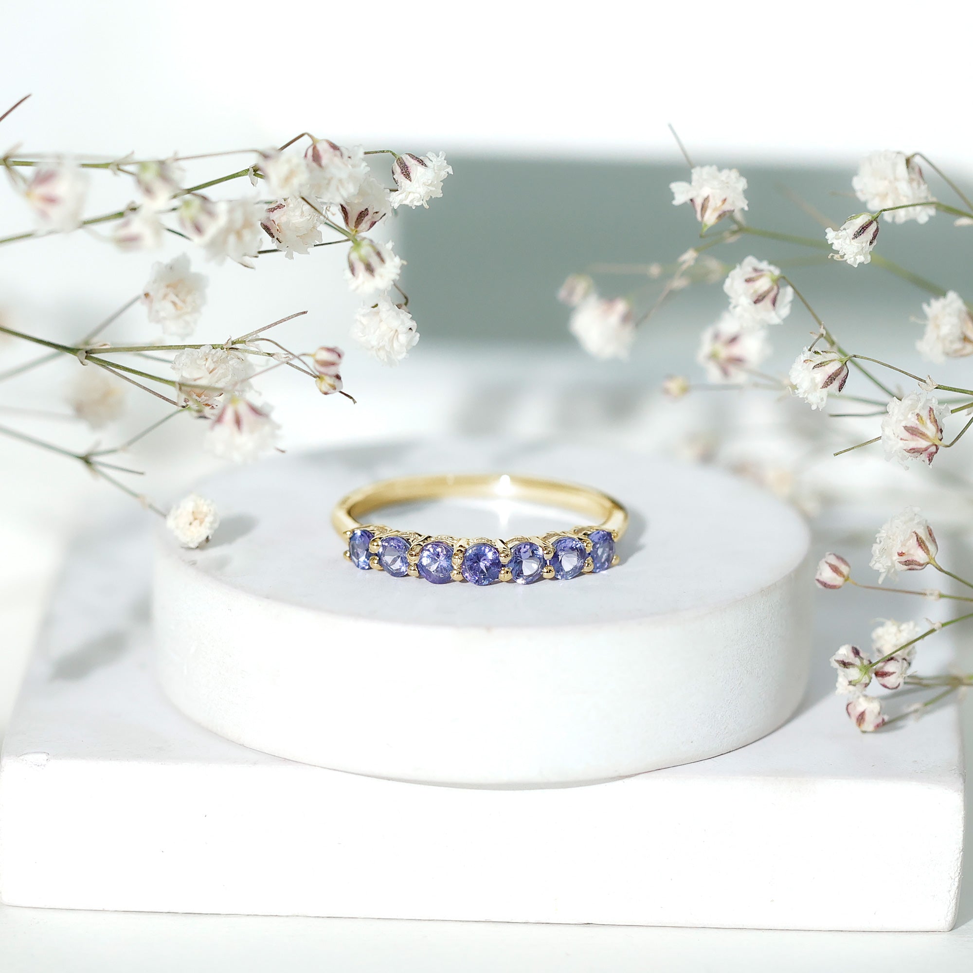 Round Tanzanite Seven Stone Half Eternity Ring