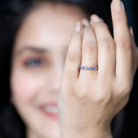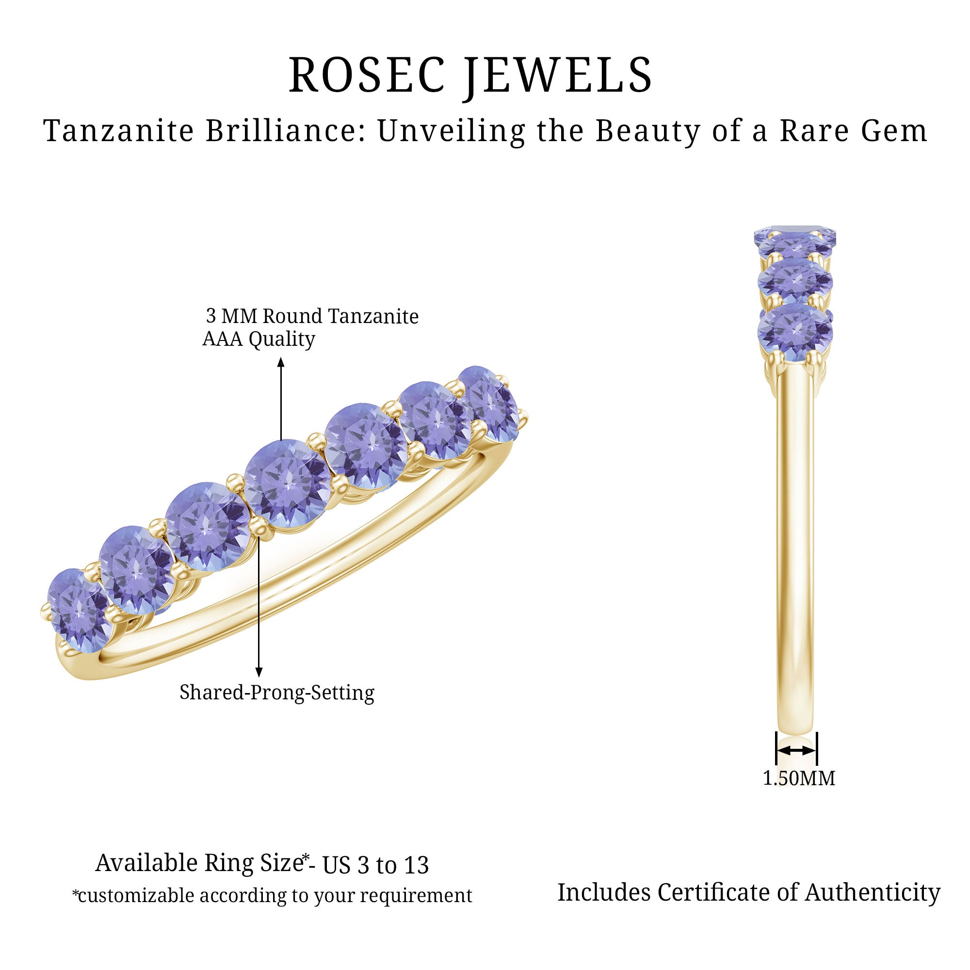 Indulge in the extraordinary beauty of this remarkable Seven Stone Ring. With its unique and antique twist, this ring showcases seven stunning brilliant round tanzanite gemstones elegantly held in a prong setting. It offers a simple yet phenomenal look that is truly captivating.