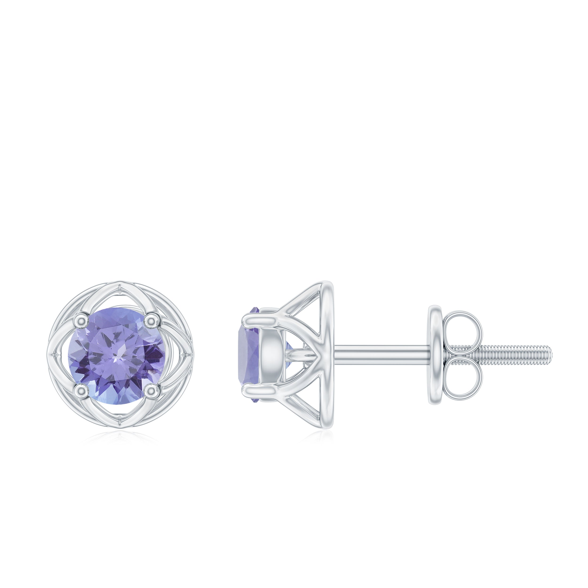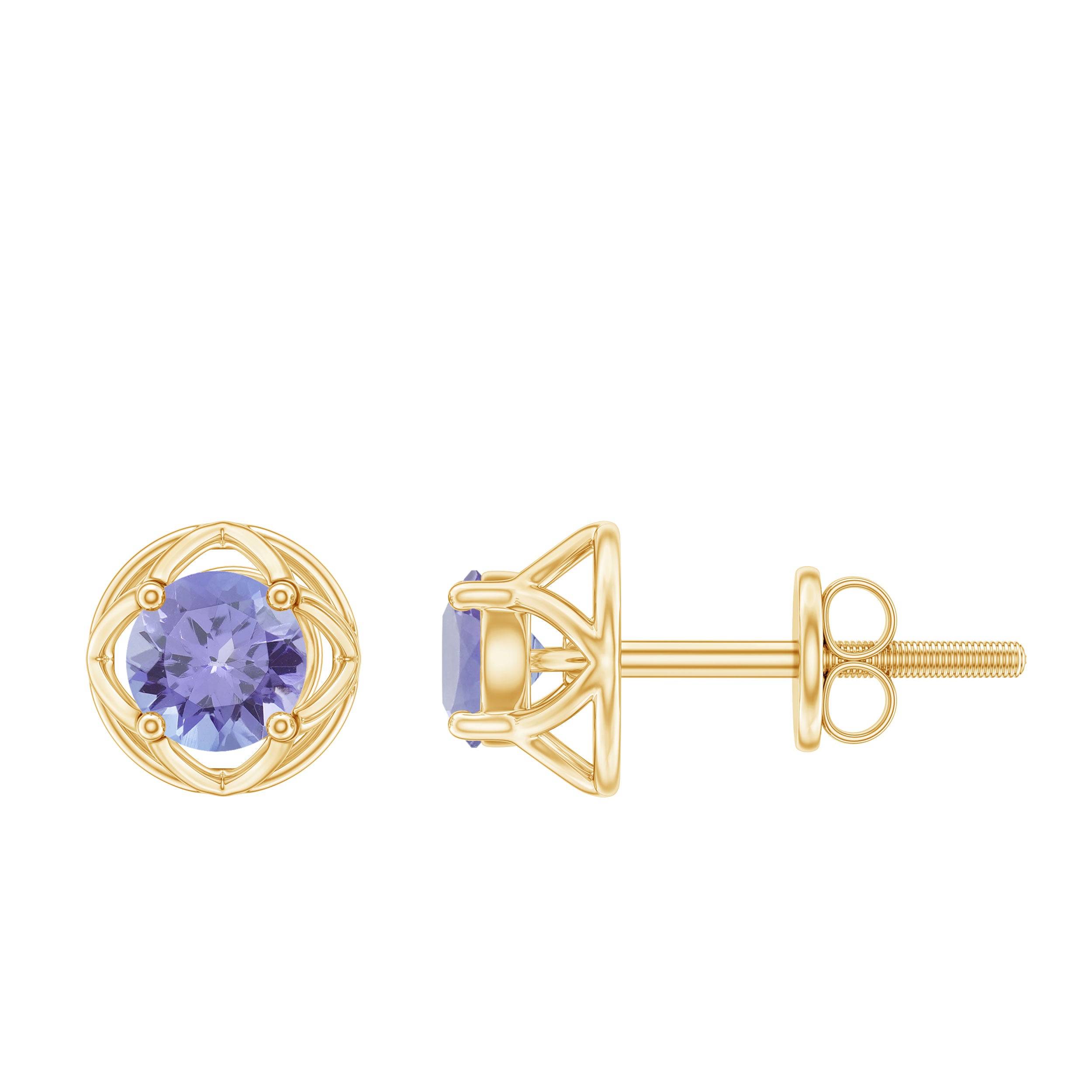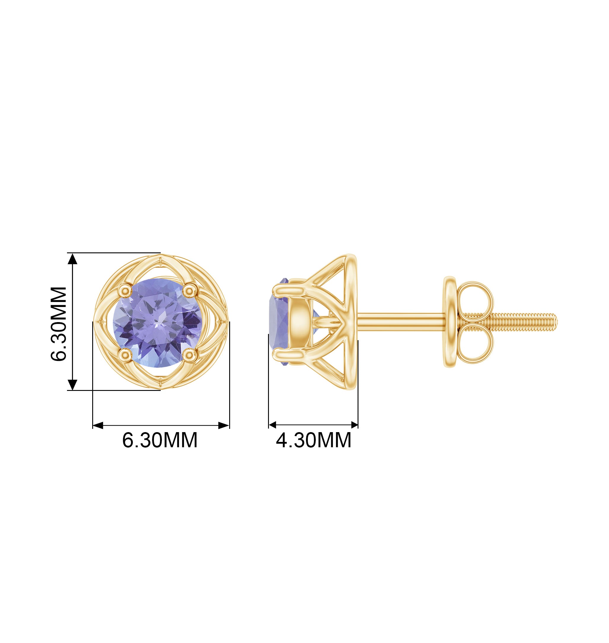 Enhance your style with these exquisite Flower Stud Earrings. Featuring a captivating design of round-cut Tanzanite gemstones arranged in a delicate flower shape, these earrings add a touch of elegance and sophistication to any outfit. A timeless and beautiful accessory for any occasion.