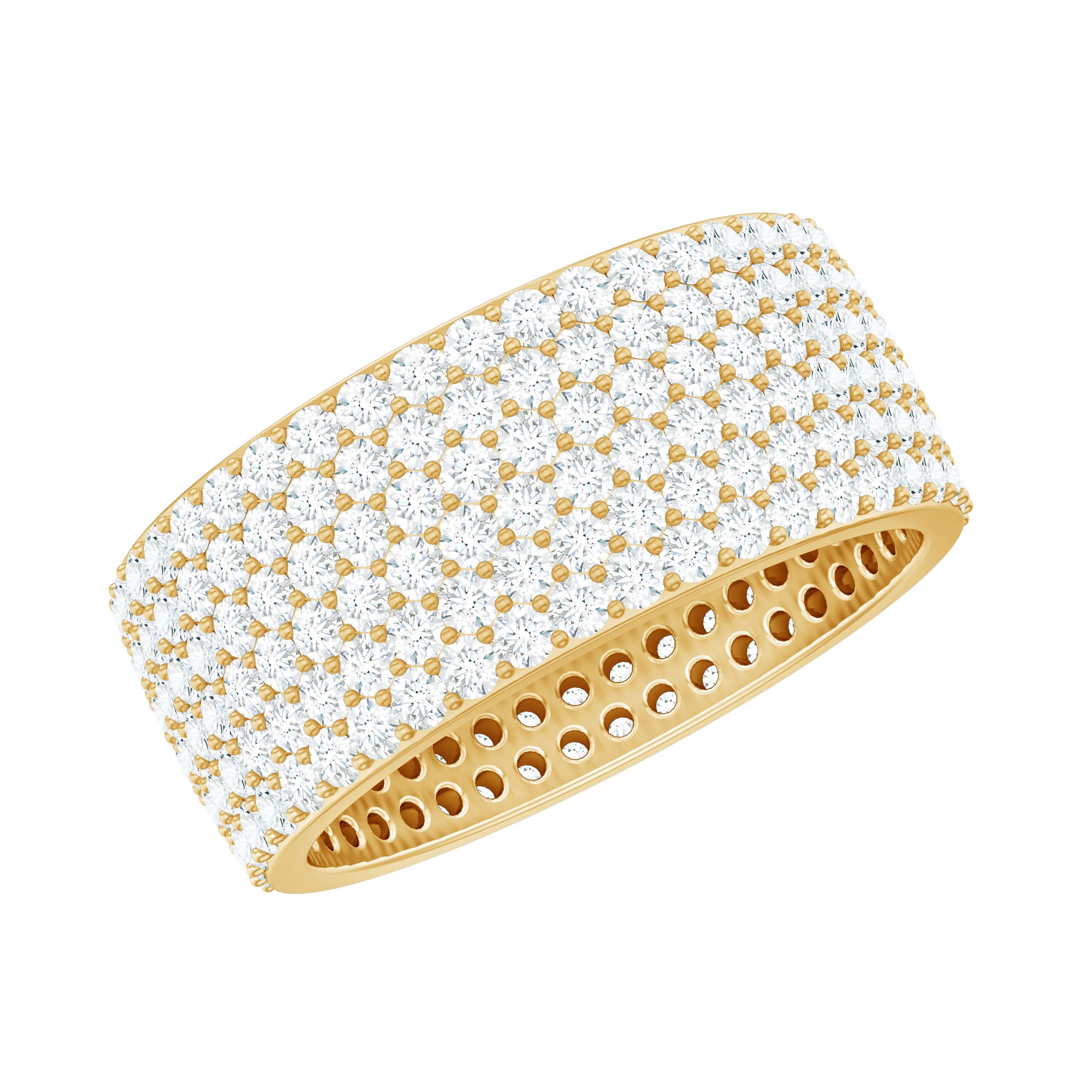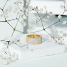 Round Zircon Cluster Wide Wedding Band Ring in Pave Setting