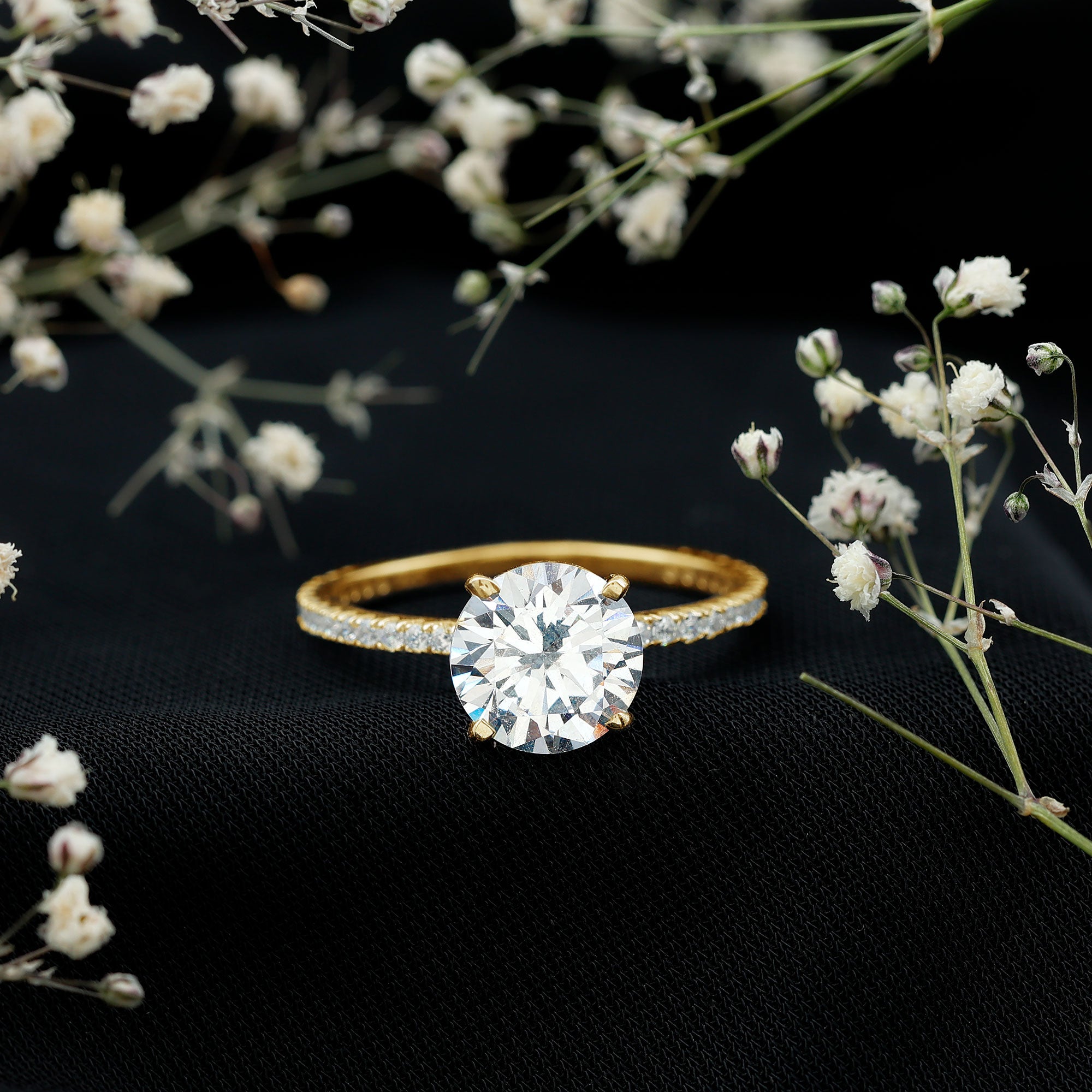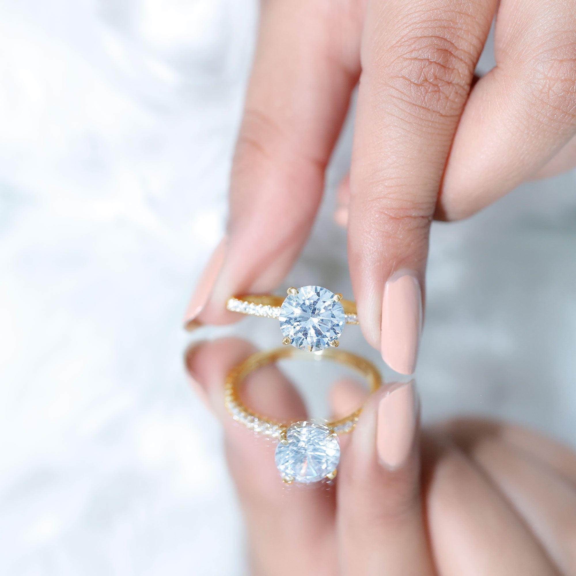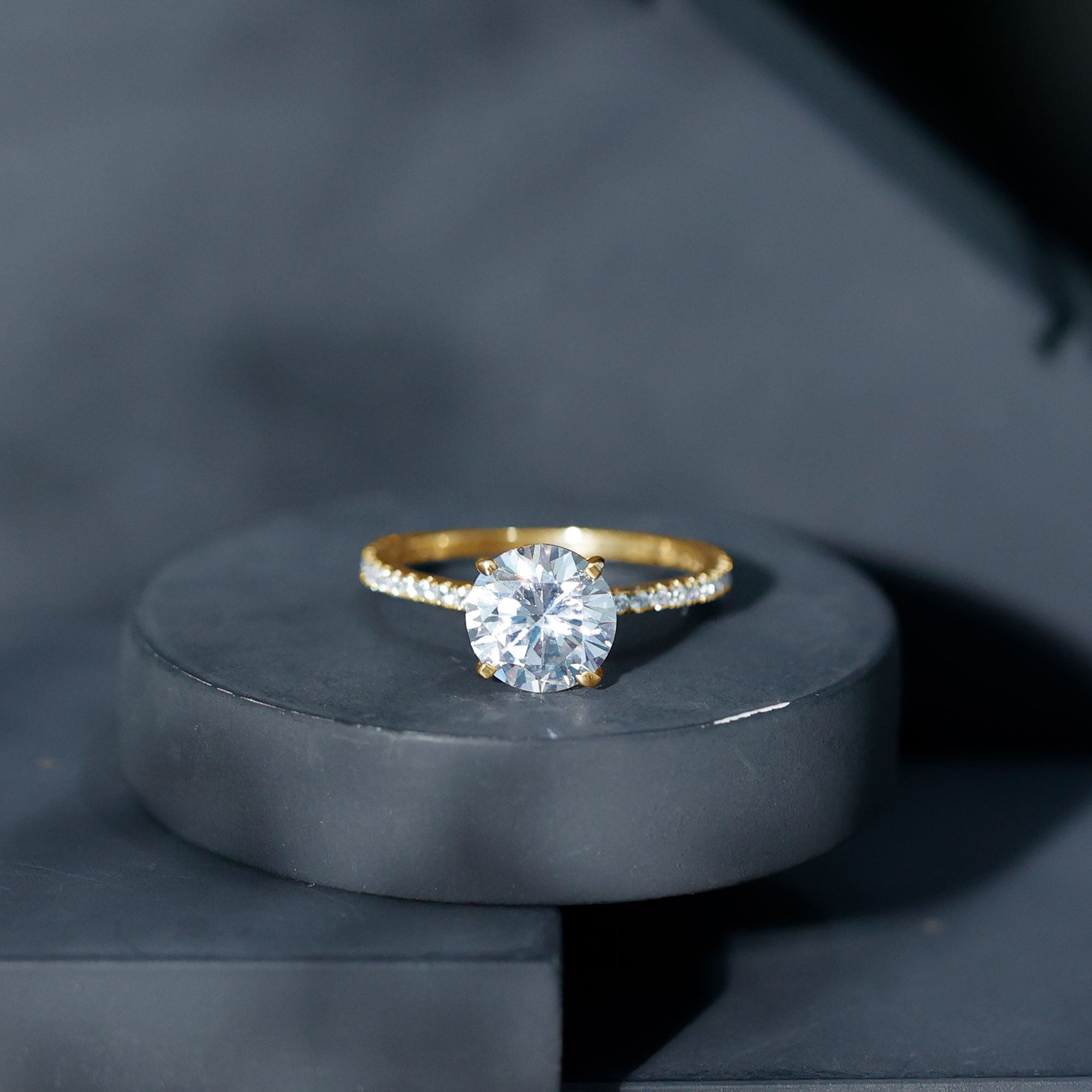 Indulge in the allure of timeless beauty with our Solitaire Engagement Ring, a true masterpiece that captures the essence of everlasting love. This exquisite ring boasts a brilliant Round Shape Zircon gemstone, elegantly set in a Peg Head Setting as a solitaire, and adorned by glistening Side Stones that enhance its radiance. Its the ideal selection for those in search of an engagement ring that seamlessly blends tradition and modern elegance, crafting a love story that sparkles with brilliance for generations to come.