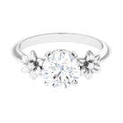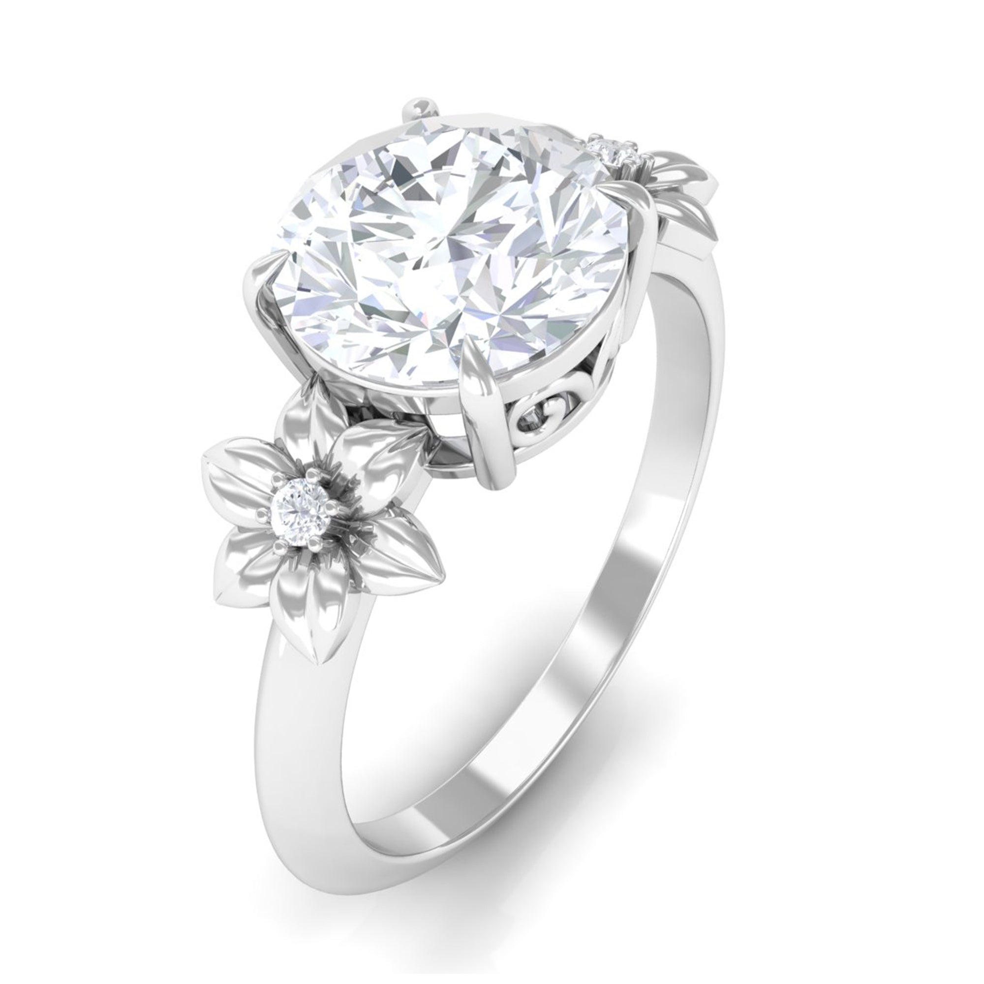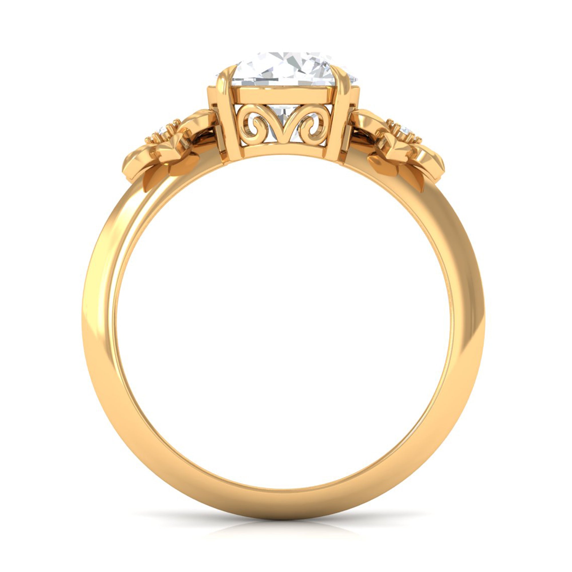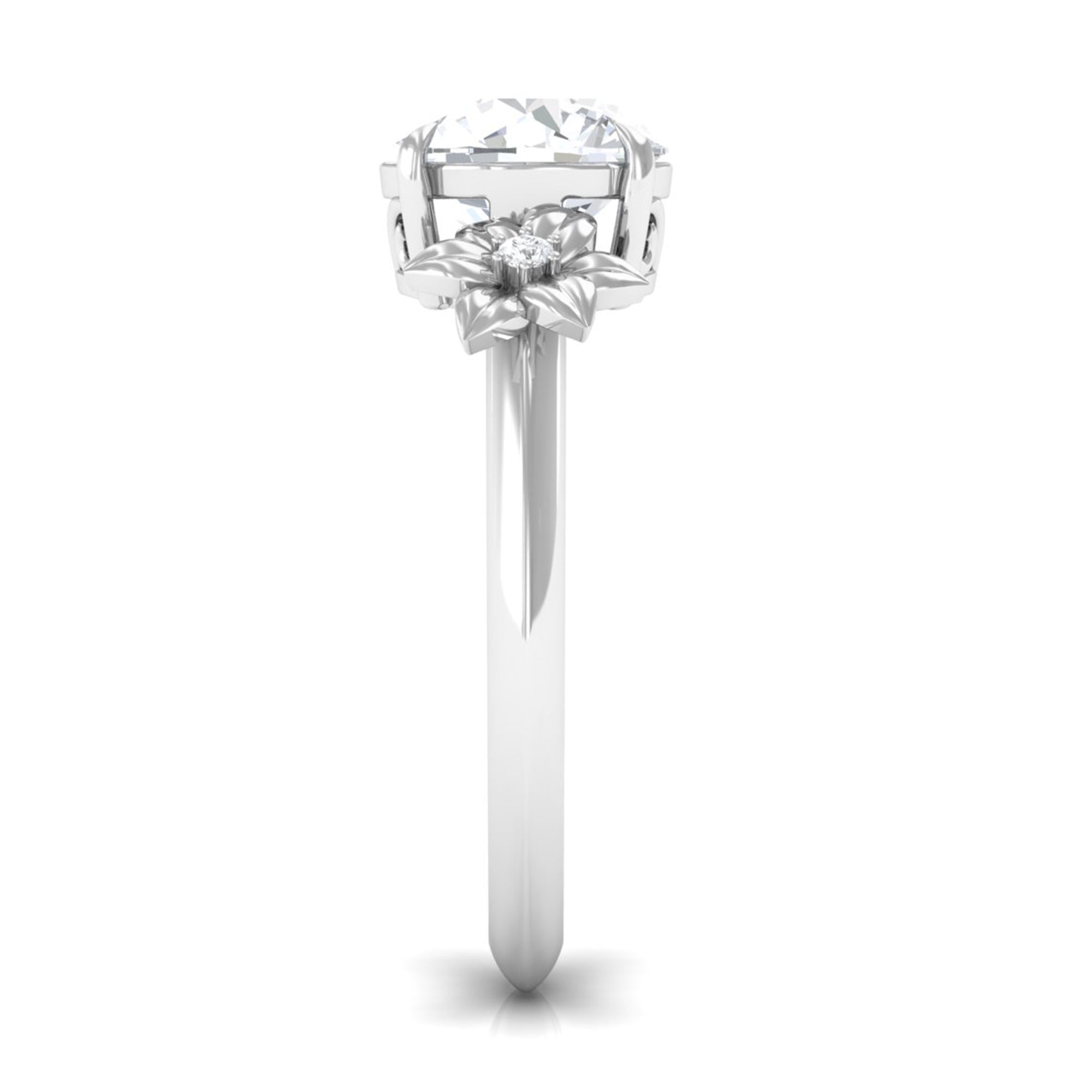 Remind your beloved of your love with this stunning floral solitaire ring, crafted from solid gold. The centerpiece of the ring is an 8 MM round-cut Zircon, beautifully set in a claw setting. Adding to its elegance, the engagement ring is embellished with round-cut cubic zirconia in a 6-prong setting as side stones. With its exquisite design and quality craftsmanship, this solitaire ring is sure to be treasured for years to come.