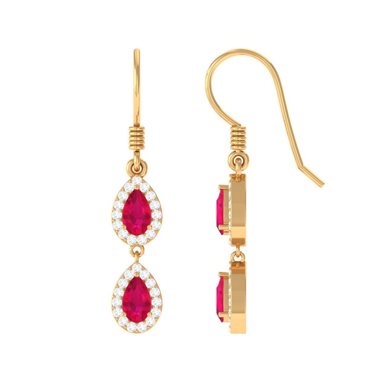 Ruby and Diamond Dangle Earrings with Fish Hook