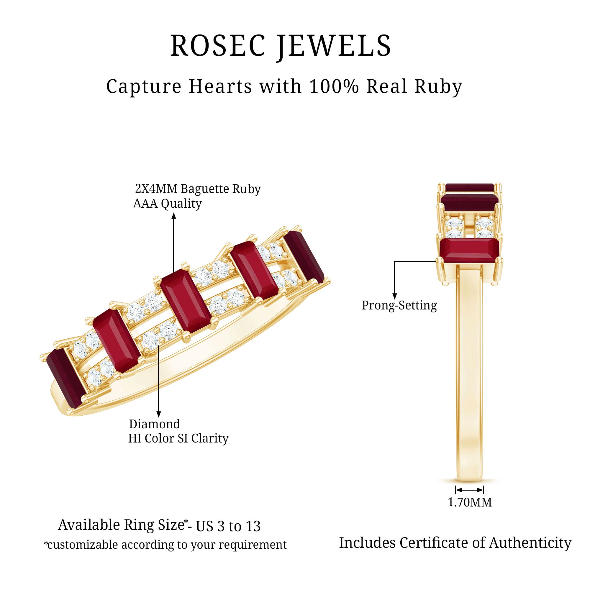 Make a bold statement with this Wide Half Eternity Band Ring featuring Ruby and shimmering Diamond, a stunning blend of elegance and glamour.
