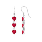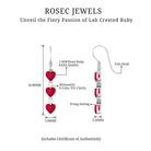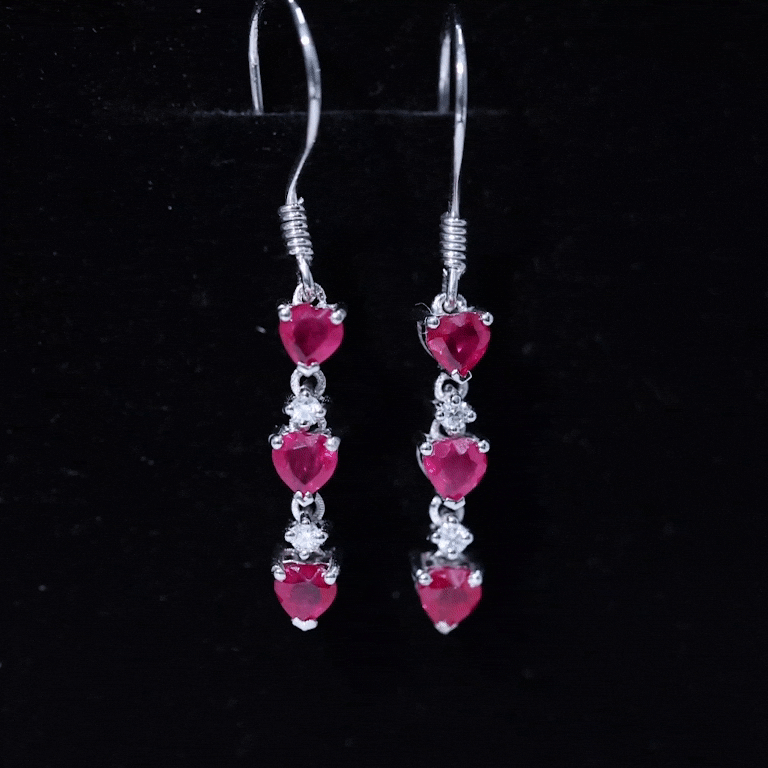 3 Heart Lab Grown Ruby Dangle Earrings with Moissanite