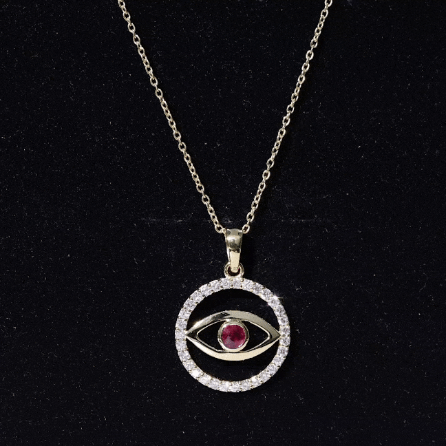 Ruby Evil Eye Pendant with Diamond Eternity Circle