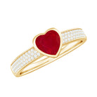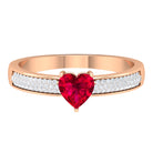 Prong Set Ruby Heart glistens in the center of this diamond encrusted band. Flaunt your style with this Ruby and Diamond Engagement Ring. Pave Set Diamond is creating a captivating charm to the ring. Steal the spotlight with this Heart Shape Ruby Engagement Ring.