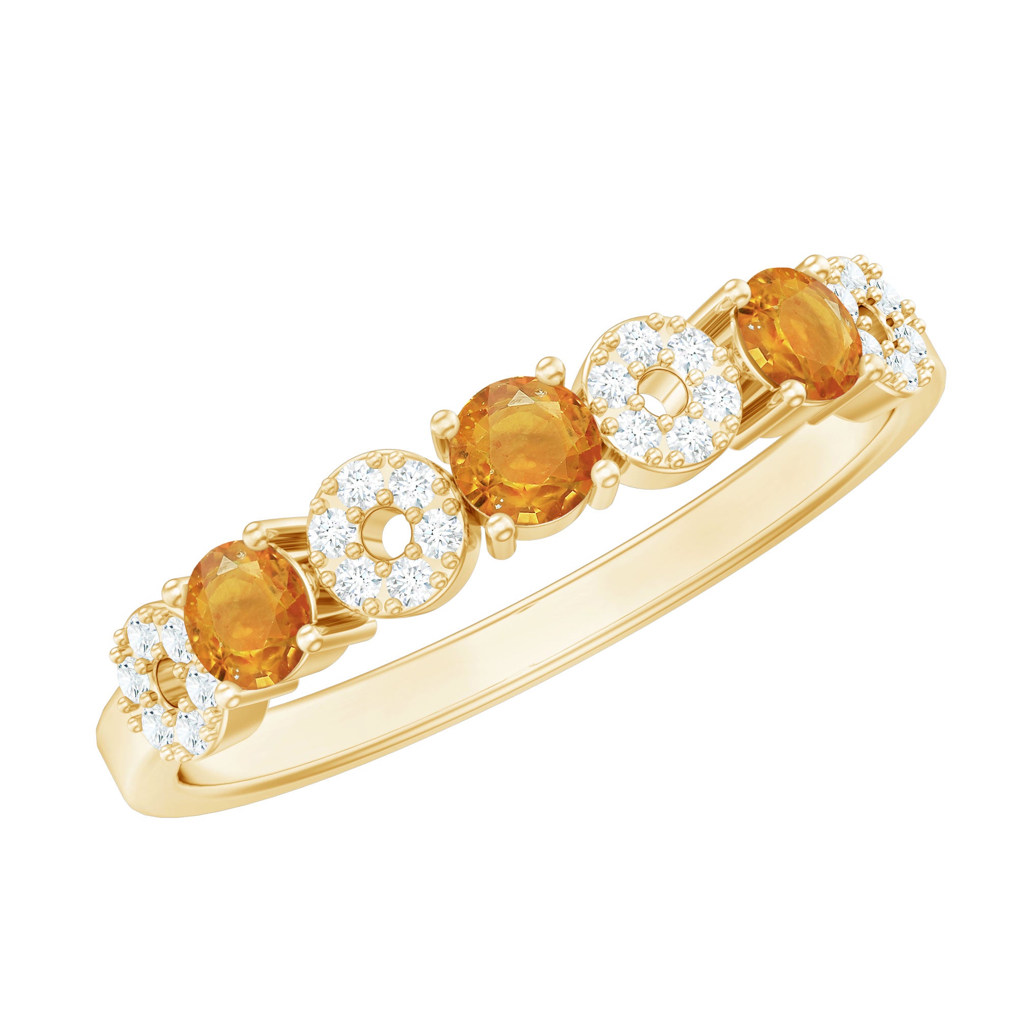 Semi Eternity Ring with Orange Sapphire and Diamond