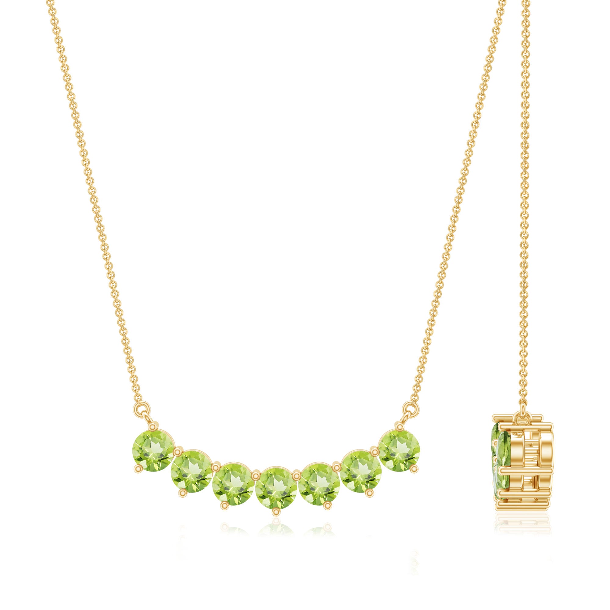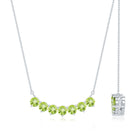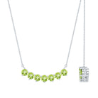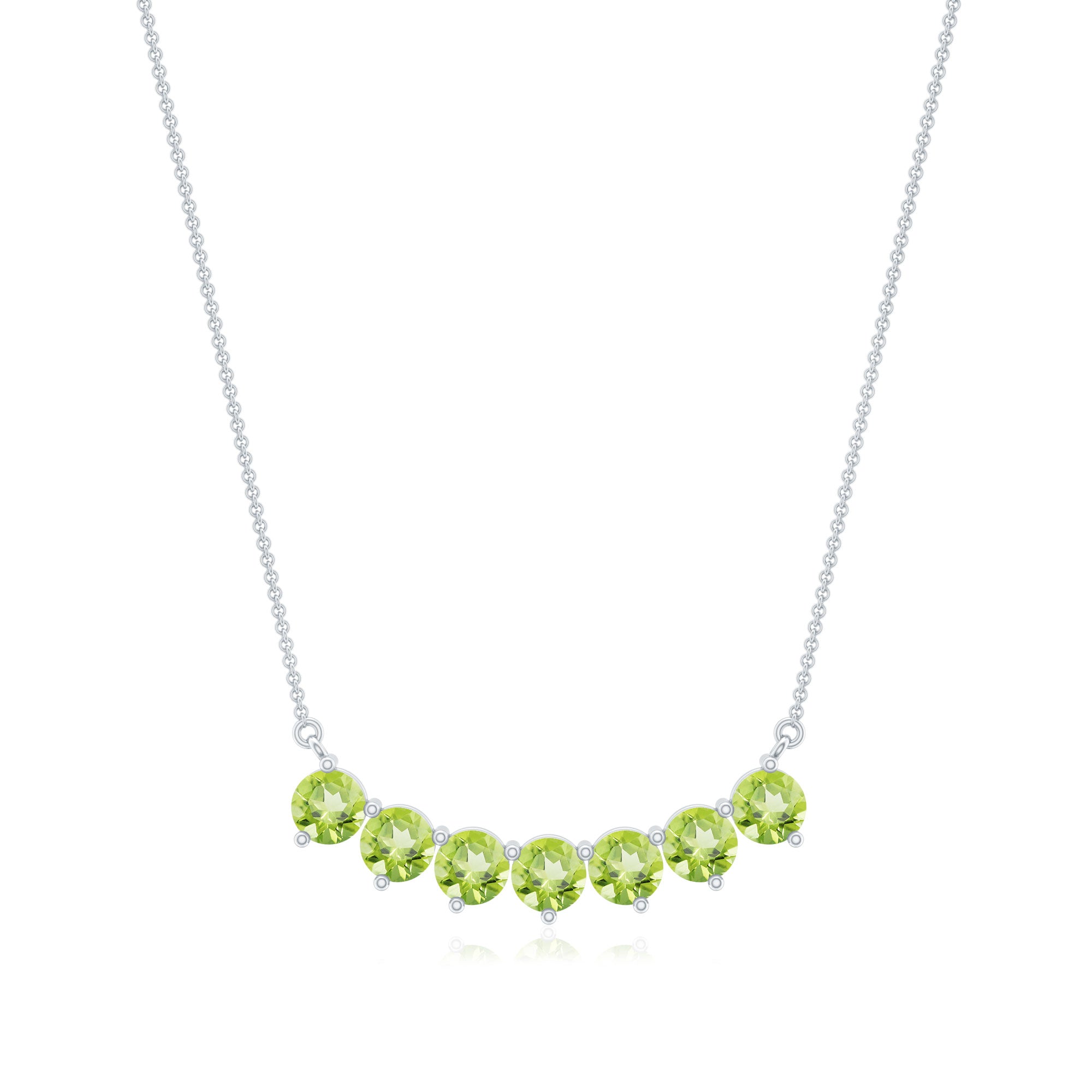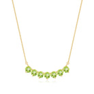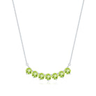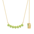 The Bar Necklace is embellished with Round Shape Peridot Gemstone in 3 Prong Setting. Grab this Seven Stone Bar Necklace to gift to your Valentine which she will admire a lot.