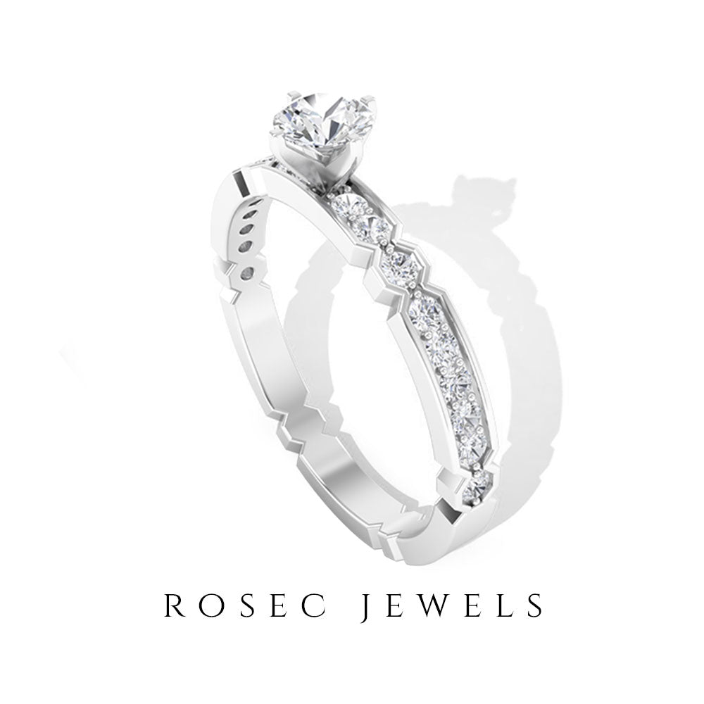 Shimmery Diamond Solitaire Engagement Ring with Side Stone