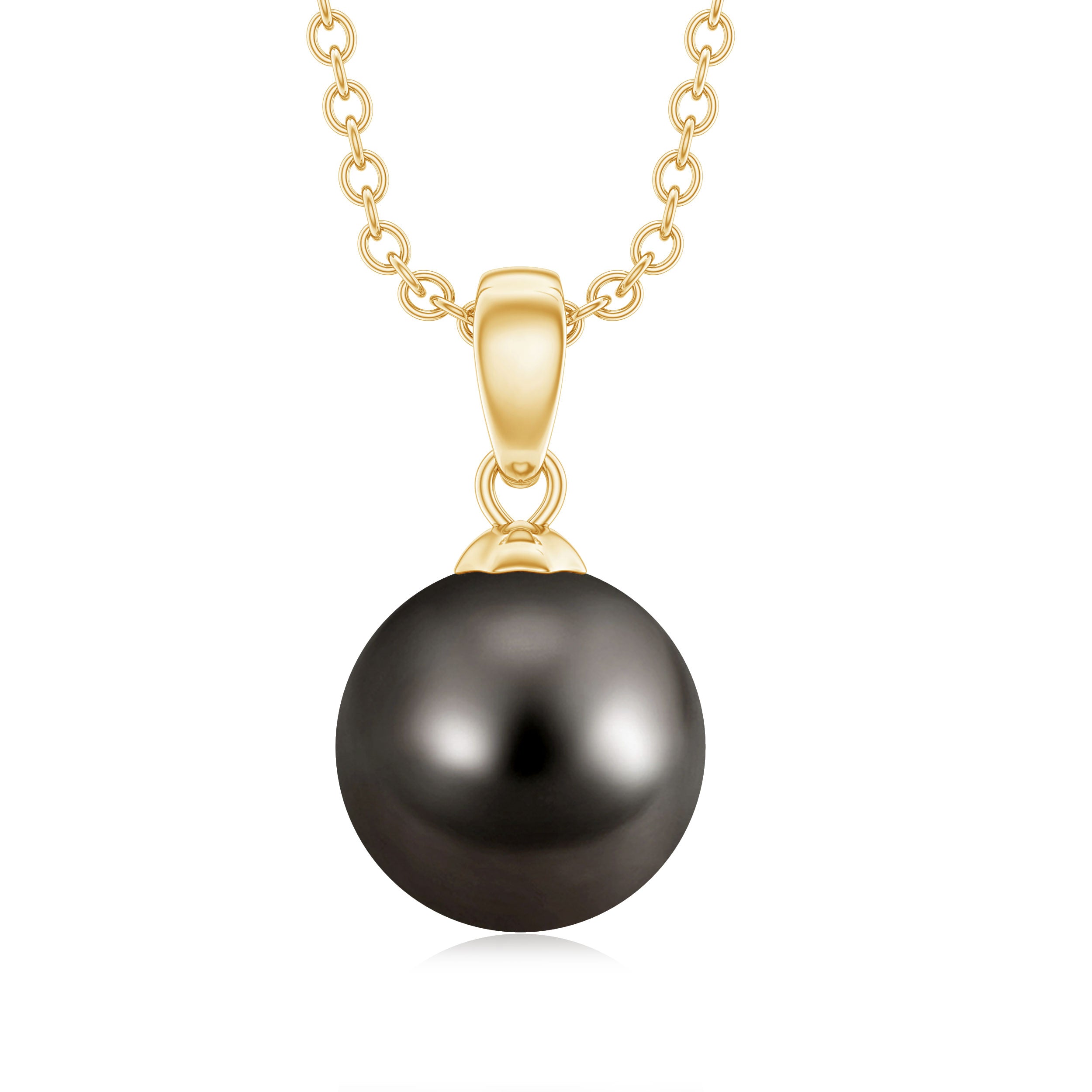 Simple 8 MM Round Tahitian Black Pearl Solitaire Necklace