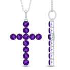 Make a statement of faith and devotion with this simple yet elegant Cross Pendant decorated with Round Shape Amethyst gemstones set in Prong Setting.