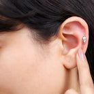 This Moissanite Two Stone Tragus Earring showcases Round Cut Moissanites secured in Bezel Setting with Gold Beaded Design. You can style this Moissanite Earring on your Helix, Cartilage, Tragus, Conch, or Upper Lobe Piercing. Wear this Piercing Earring with your favorite attires to create unique and stunning looks.
