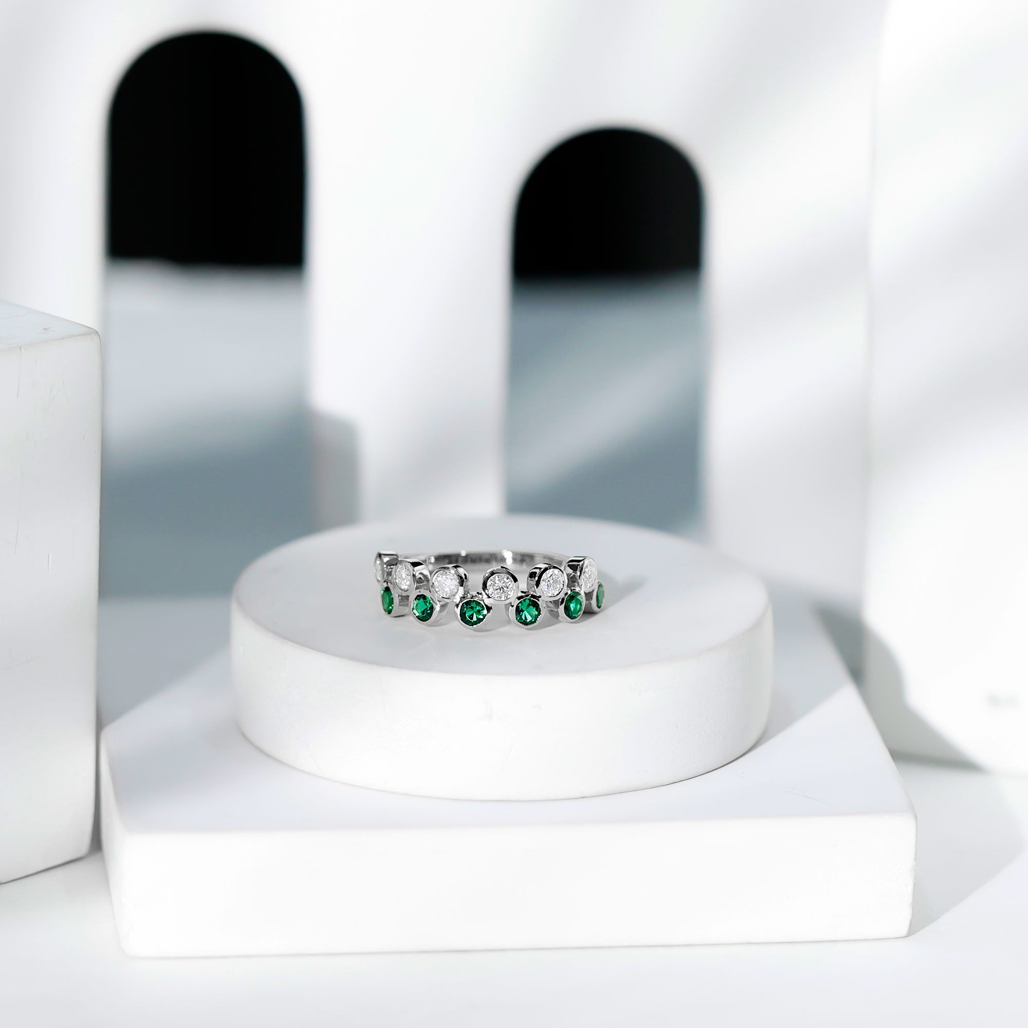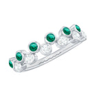 Simple Bezel Set Round Created Emerald and Moissanite Half Eternity Ring