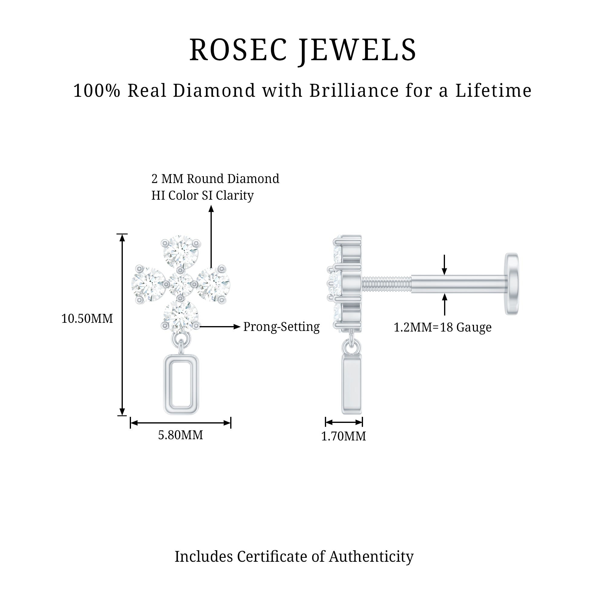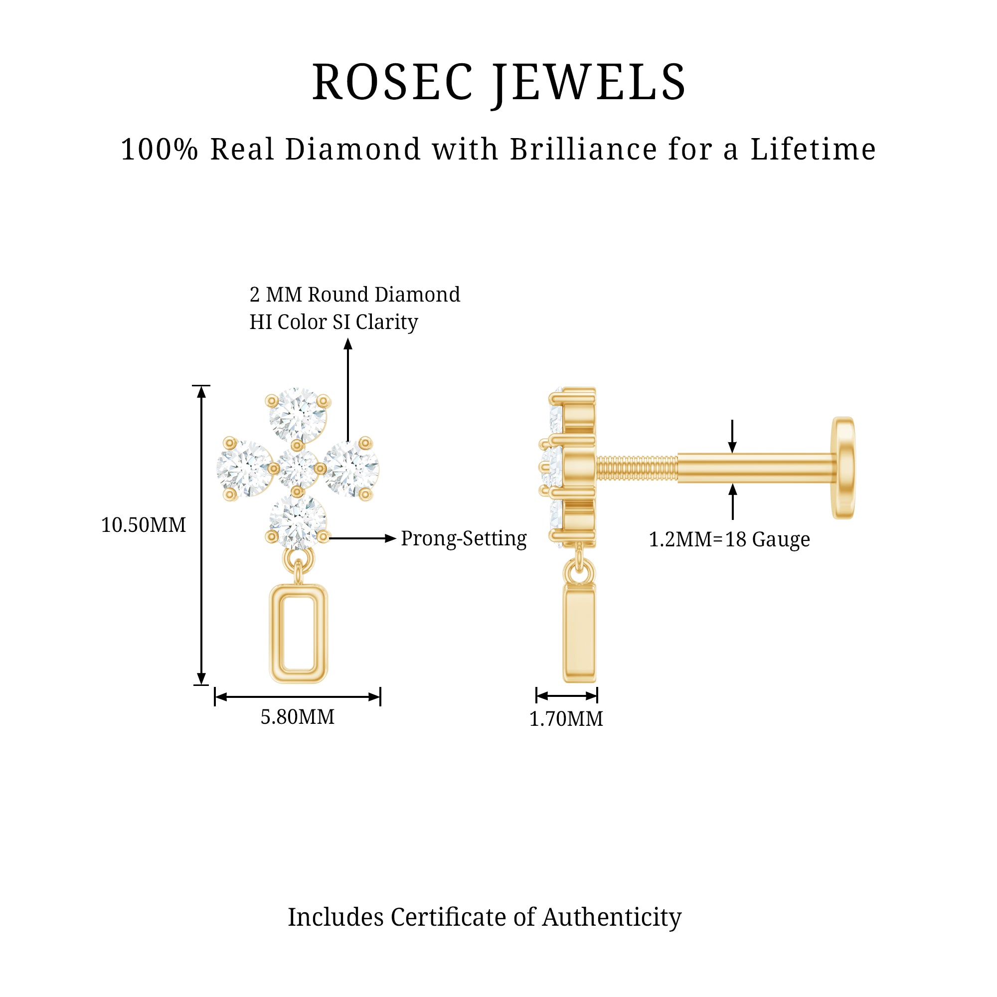 Maximize space for more sparkles. And decorate your ear stack with this Diamond Drop Earring. It is embellished with Round Diamonds set in Prong Setting with a drop adding a unique touch. The simple back style features a flat back that wont poke or jab while you are taking a quick nap or getting a full night of beauty sleep. You can style this Diamond Earring on your multiple piercings like Helix, Cartilage, Tragus, Conch, or Upper Lobe Piercing. Designed for 24/7 wear, this Helix Earring is ideal for an active lifestyle and can be worn without worry during workouts, travel, and all of your daily activities.
