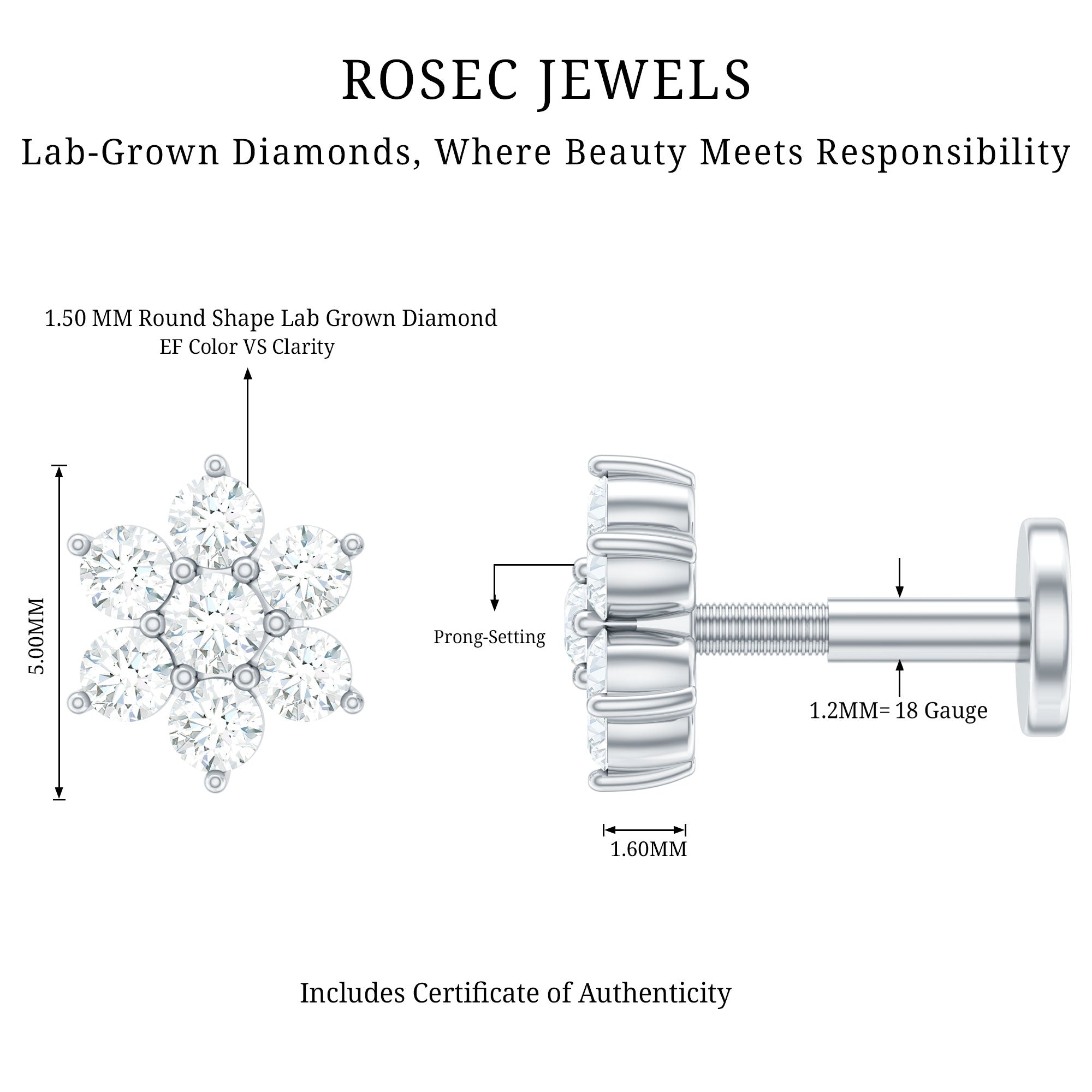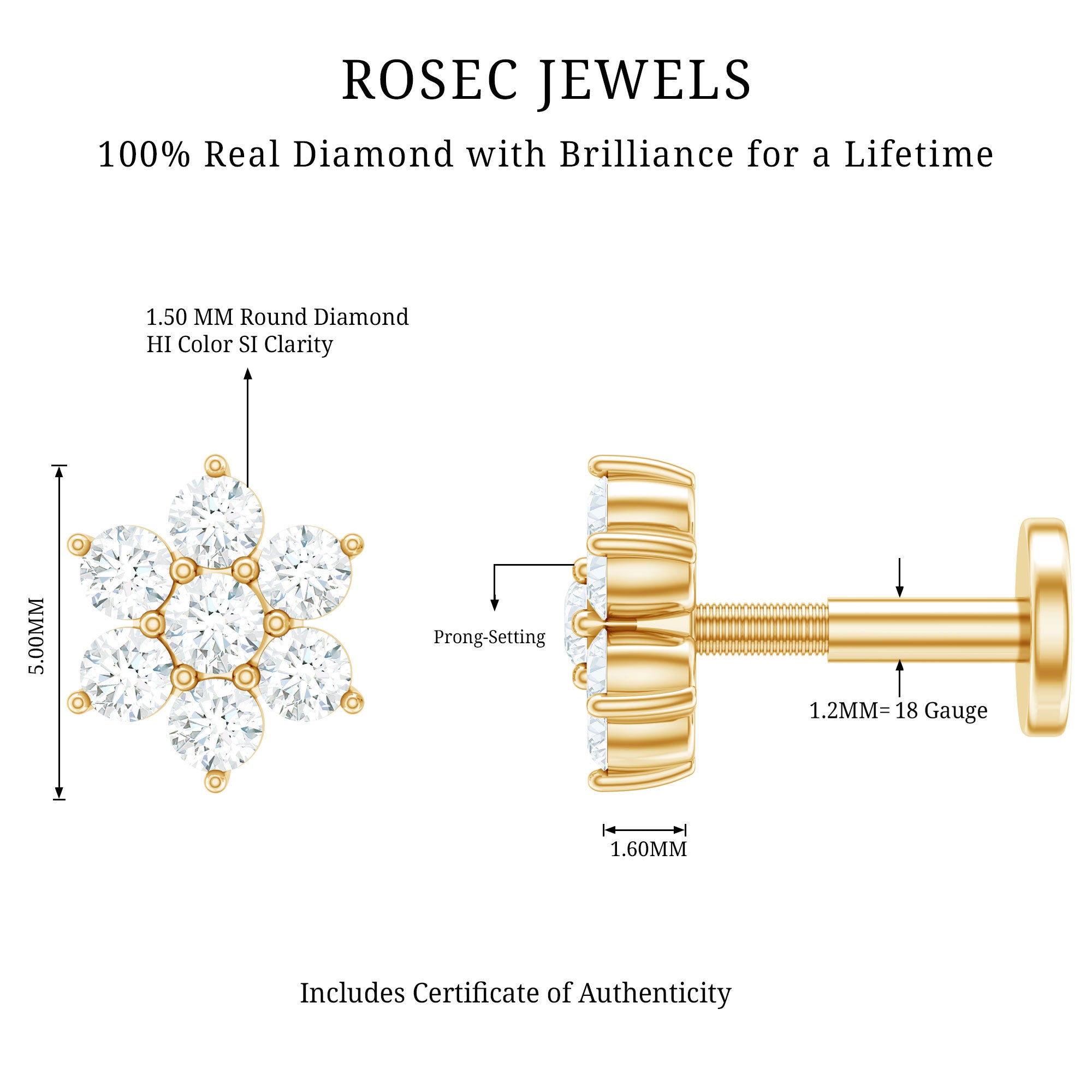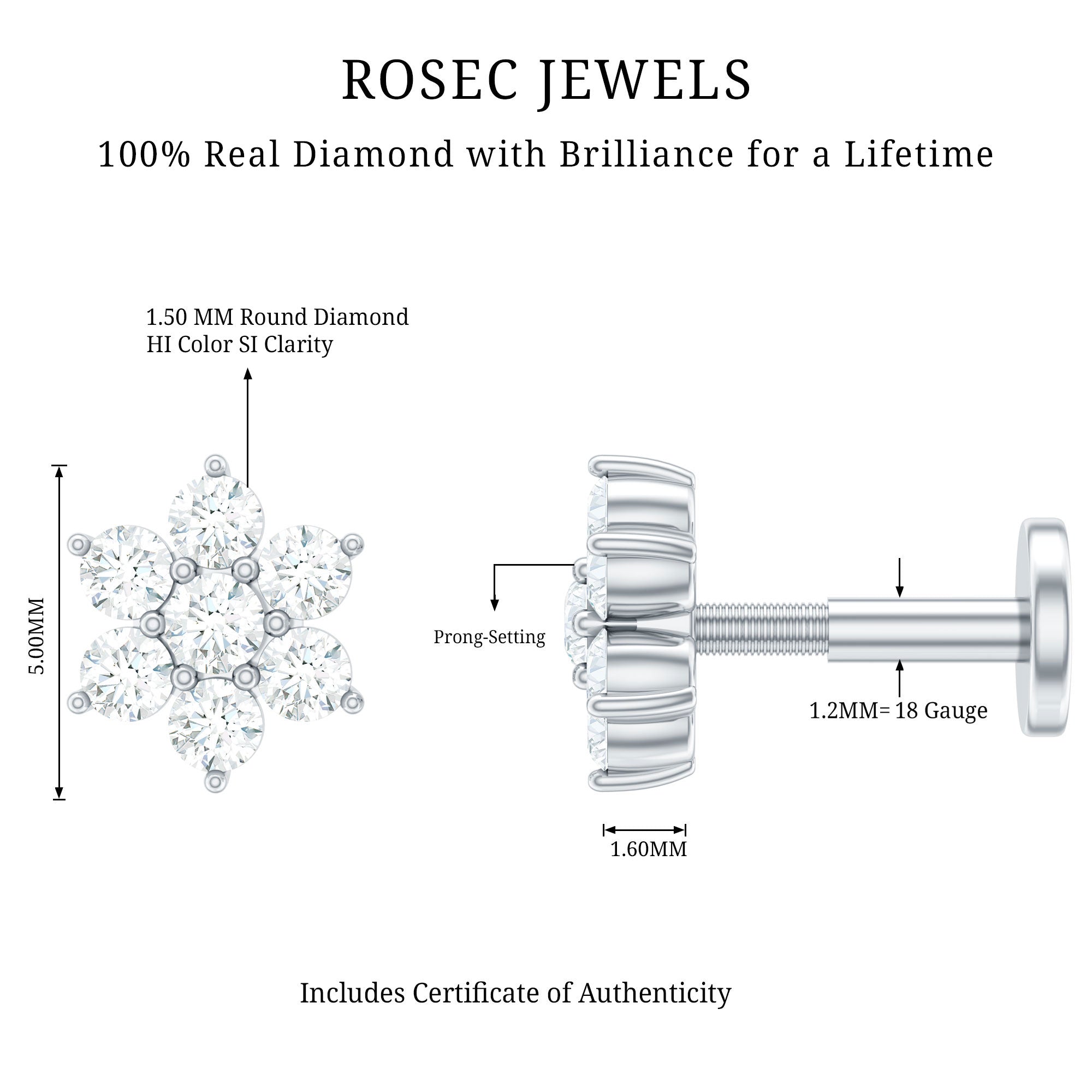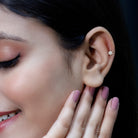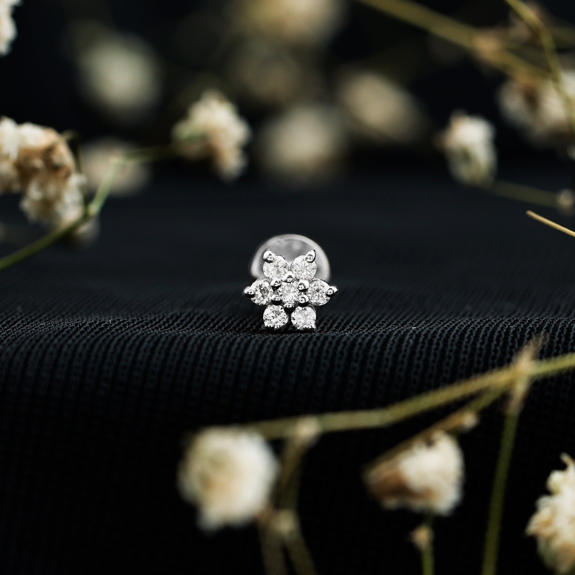 Elevate your elegance with our Diamond Flower Earring, which is a dazzling masterpiece that adorns your helix with grace. Embellished with glistening round brilliant cut seven Diamonds creating a floral design, this Flower Cartilage Earring amplifies your inner radiance and beauty. The charming floral shape adds a touch of romantic allure, making it the perfect expression of love and self-love. This exquisite earring is ideal for Helix, Cartilage, Conch, or Upper lobe piercings, which complements any style, enhancing your unique charm. The Diamond Ear Piercing makes a wonderful gift to make someone feel cherished. Not every event requires bold accessories; you can wear this Flower Stud on its own or pair it with other earrings to emphasize the finer details. Elevate your appearance with this Helix Stud Earring, which introduces a unique and artistic touch. The understated elegance of this piece guarantees its timeless appeal, ensuring it remains a favorite in your collection for years ahead. Adorn your ears with this simple stud, as its captivating beauty is bound to make a lasting impression.