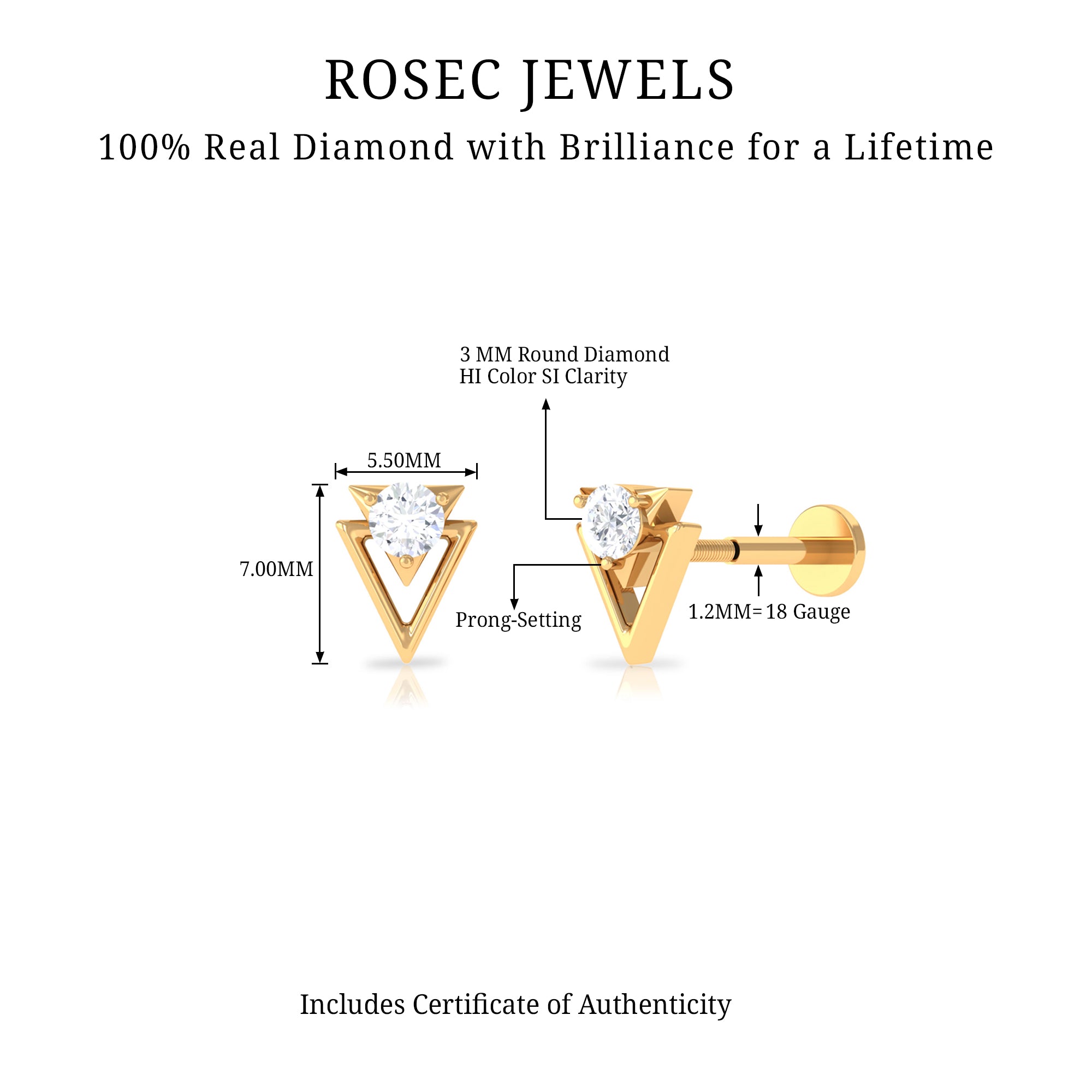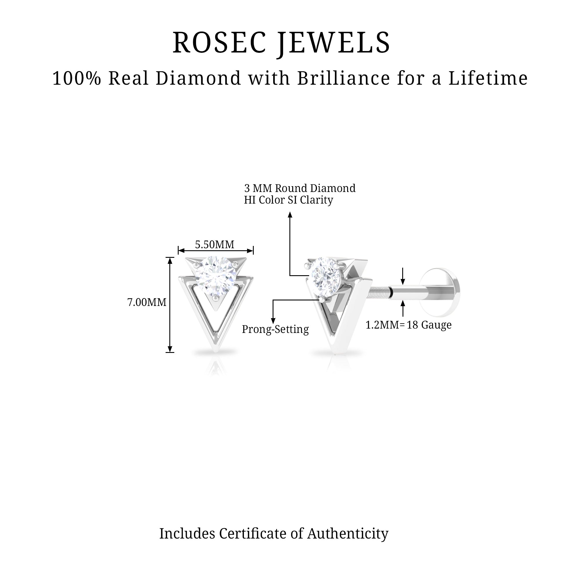 Simple Diamond Solitaire Triangle Cartilage Earring