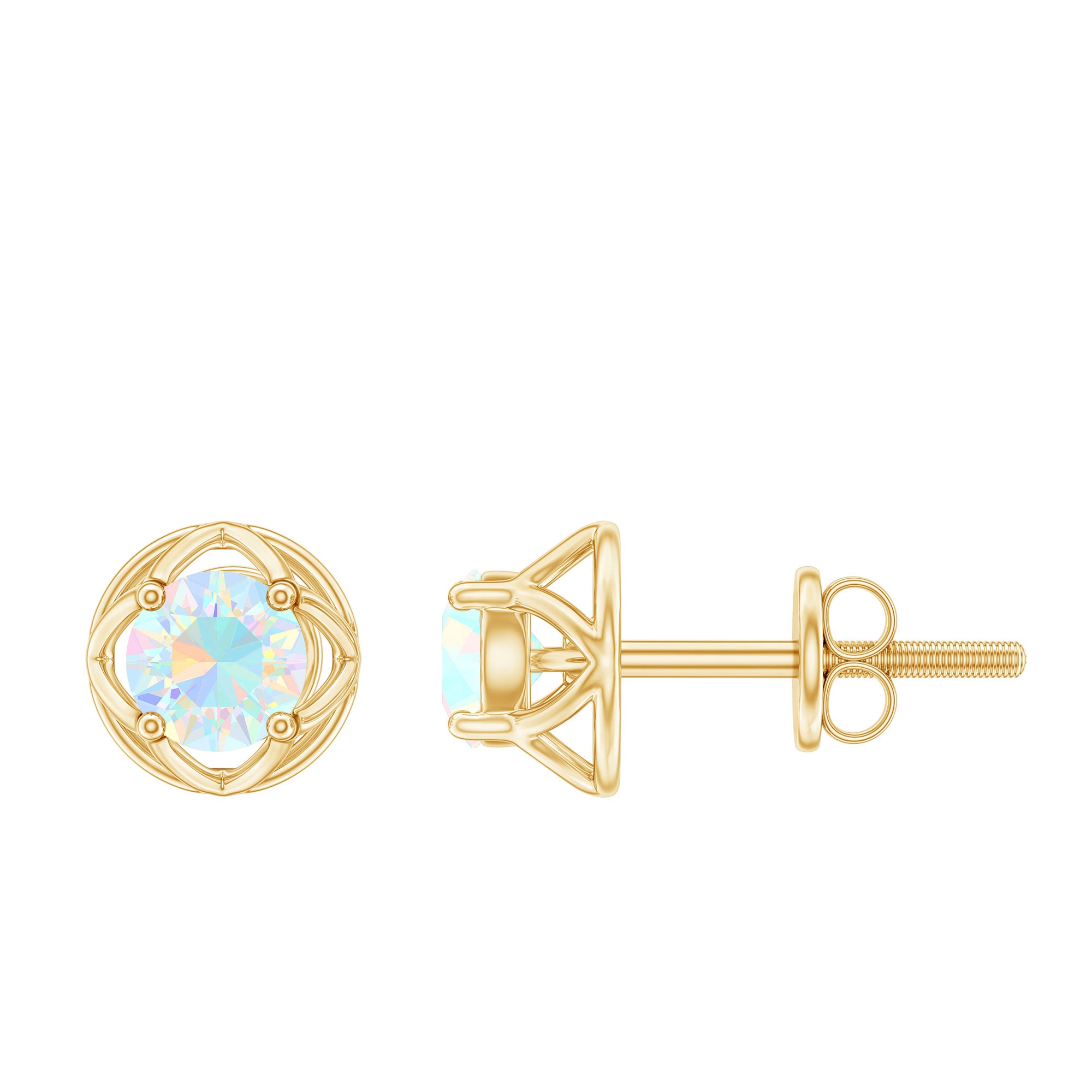 These Flower Stud Earrings are designed to create an unforgettable impression on everyones minds. An artful example of simplicity, embellished with Round Cut Ethiopian Opal secured in 4 prong setting over a unique floral design. These Opal Stud Earrings are crafted in Solid Metal. Give these sparkling Screw Back Earrings to your special person and make it a beautiful memory.