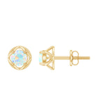Simple Ethiopian Opal Solitaire Flower Stud Earrings