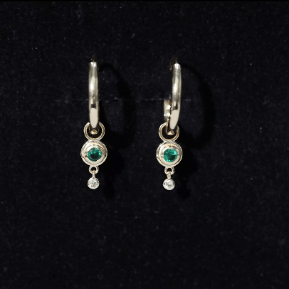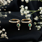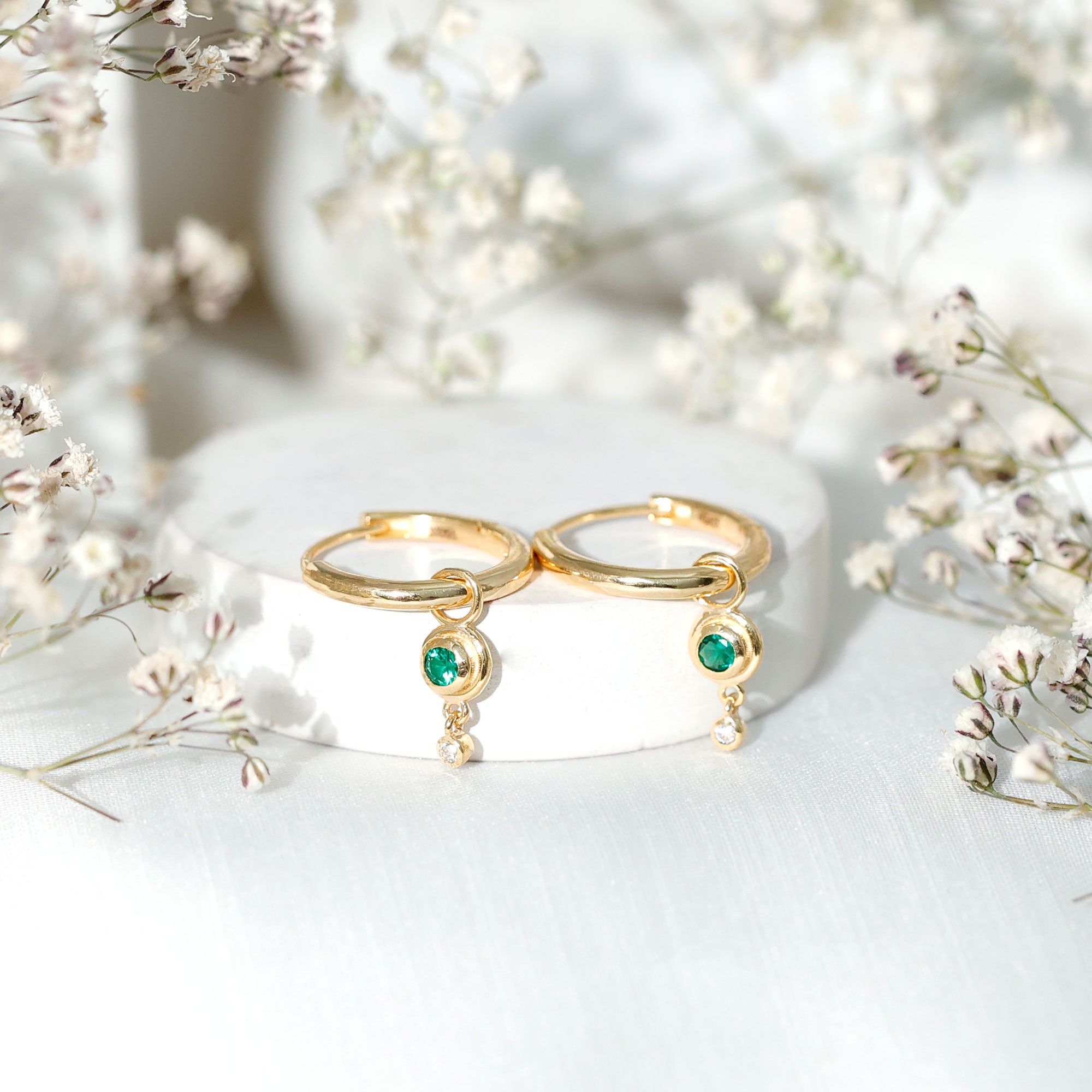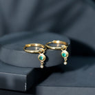 Simple Lab Grown Emerald and Diamond Drop Hoop Earrings